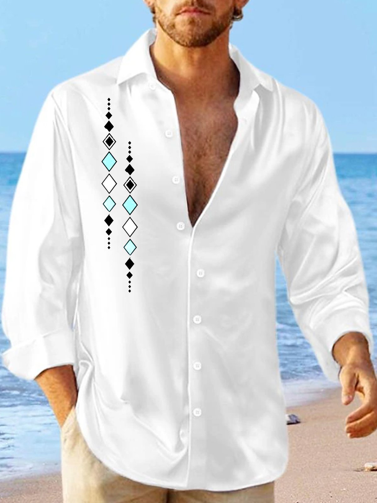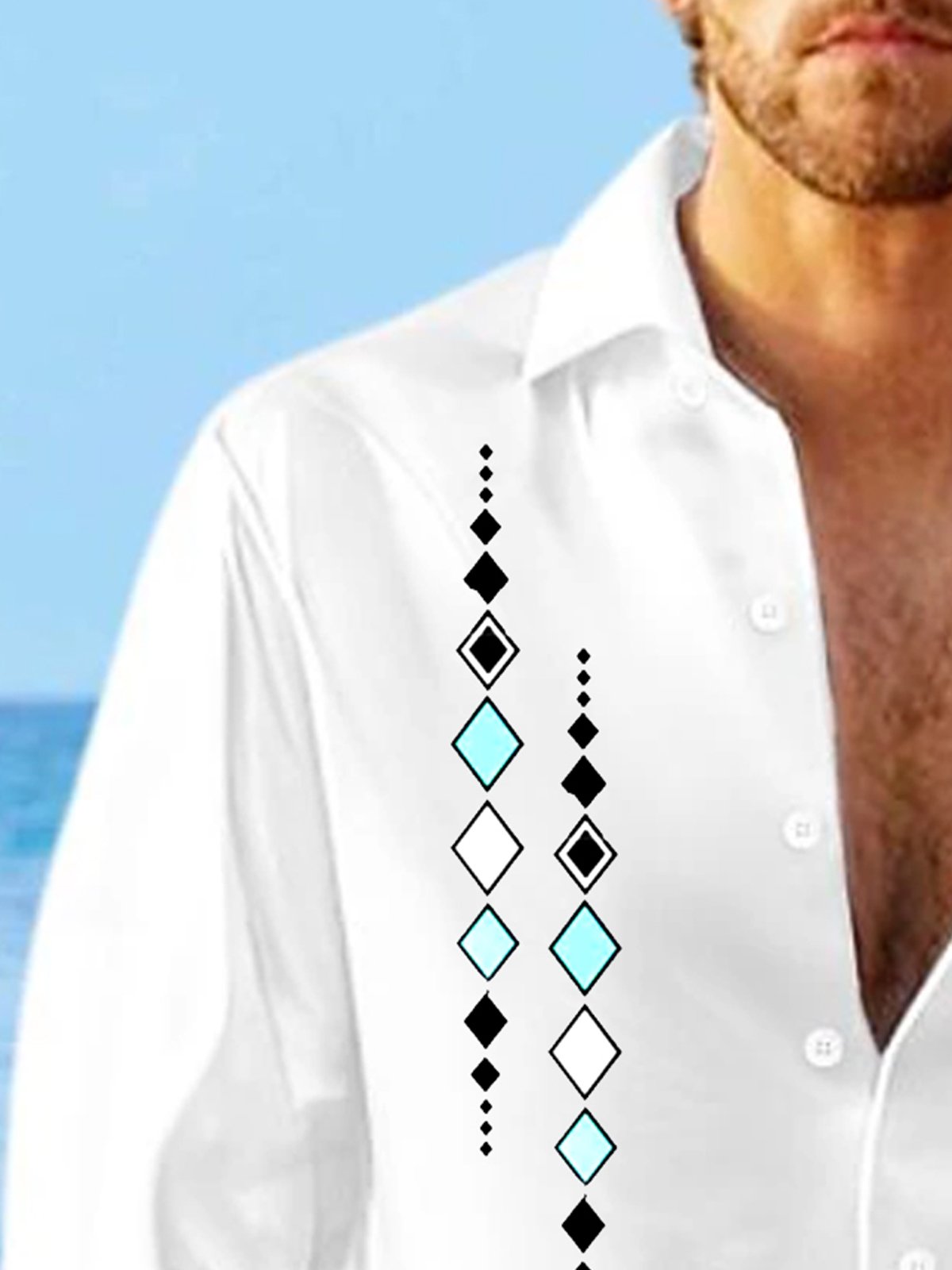 Alohadaddy Men's Geometric Print Button-Down Long Sleeve Shirt