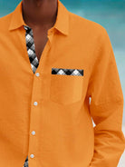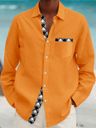 Alohadaddy Plaid Splicing 3D Digital Printing Men's Button Pocket Long Sleeve Shirt Big & Tall