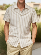 Alohadaddy Vintage Khaki Stripe Men's Shirt Easy Care Camp Shirt Big Tall