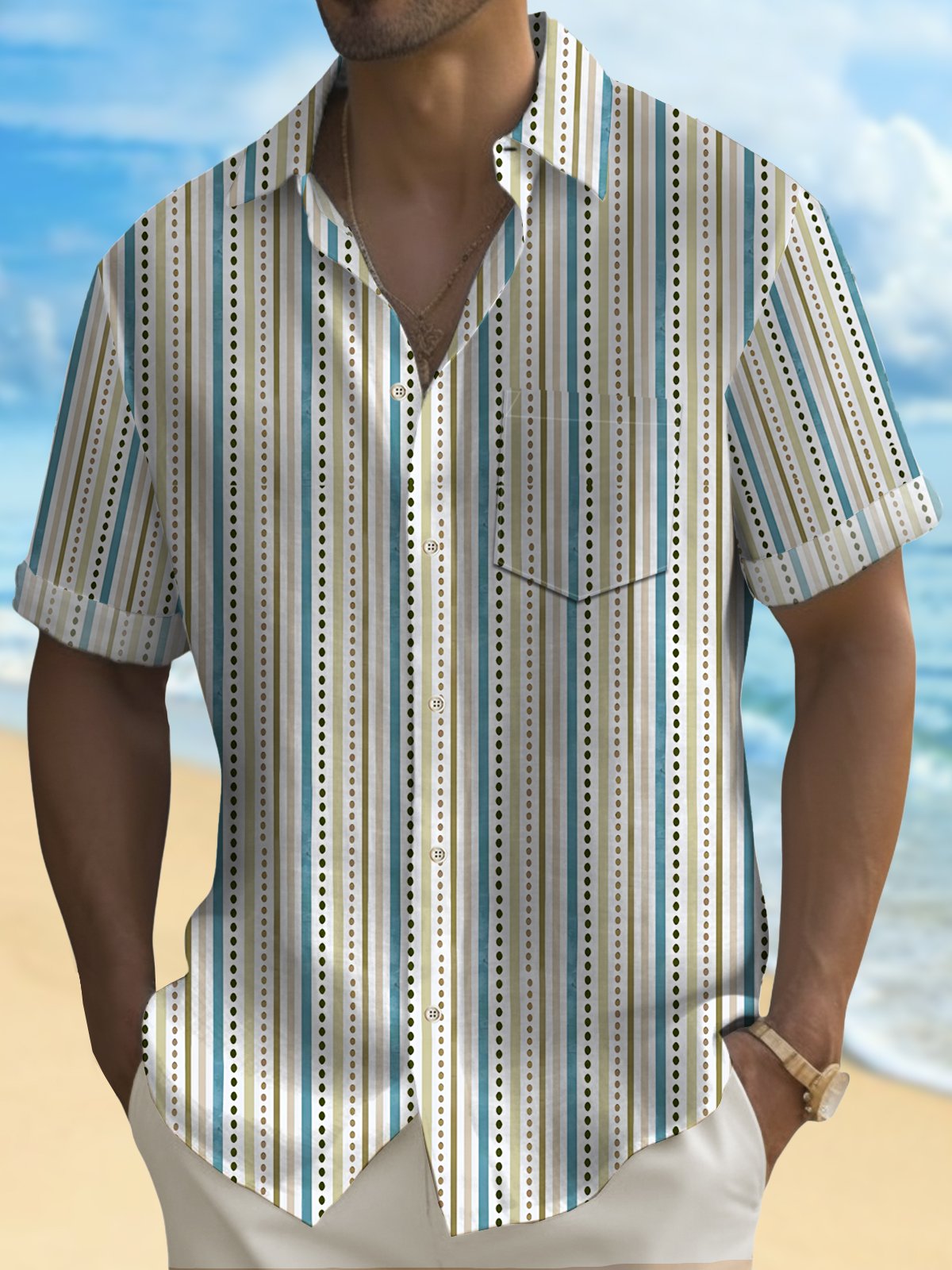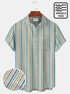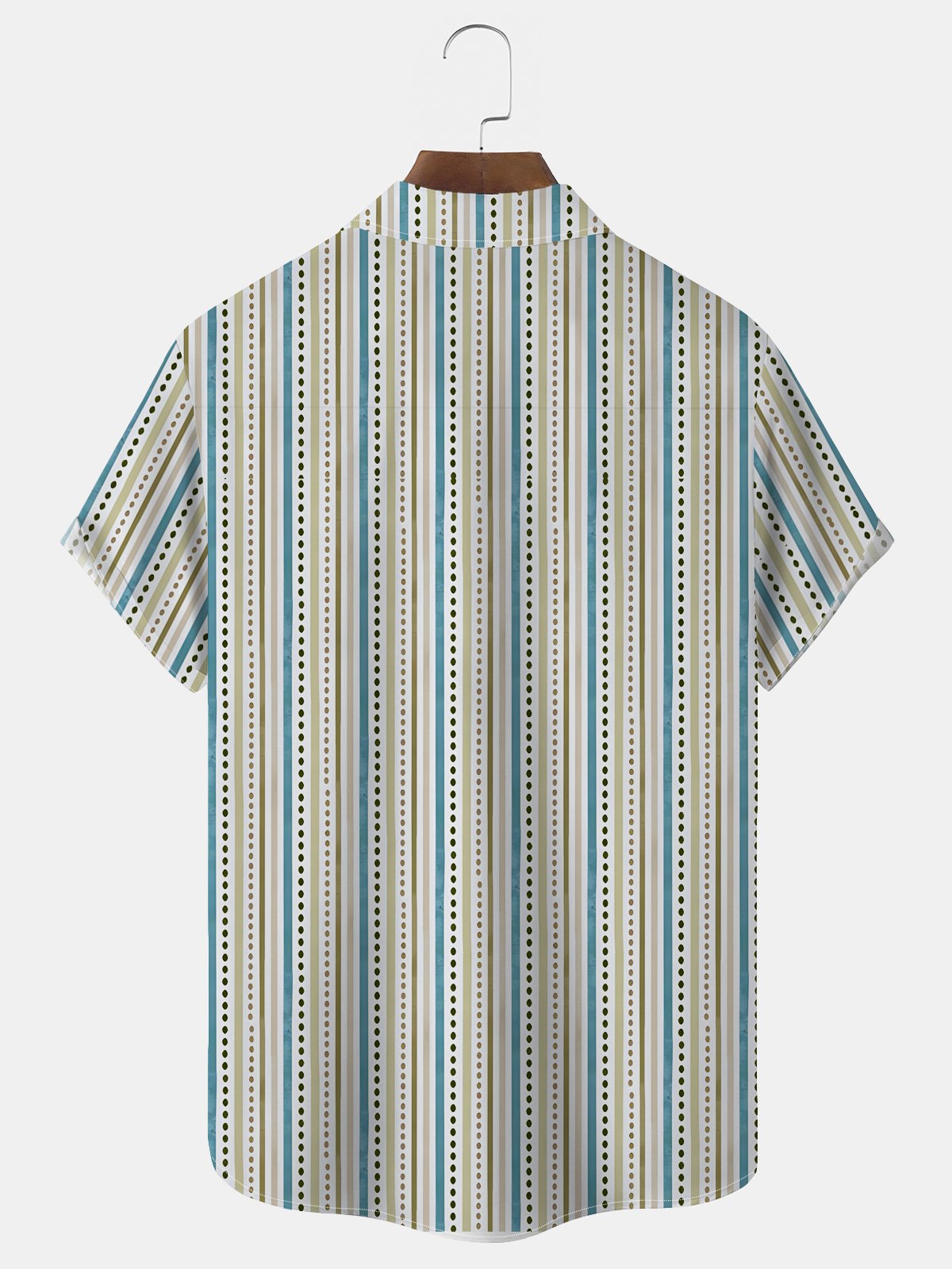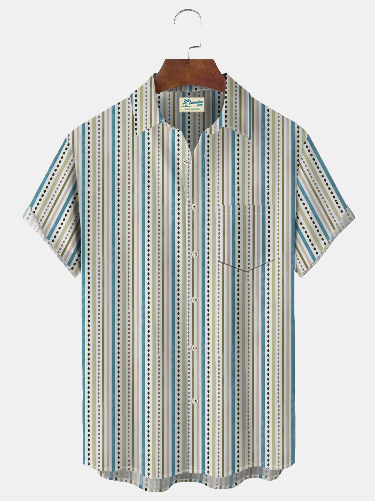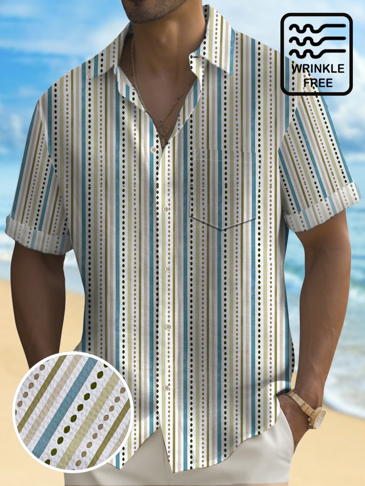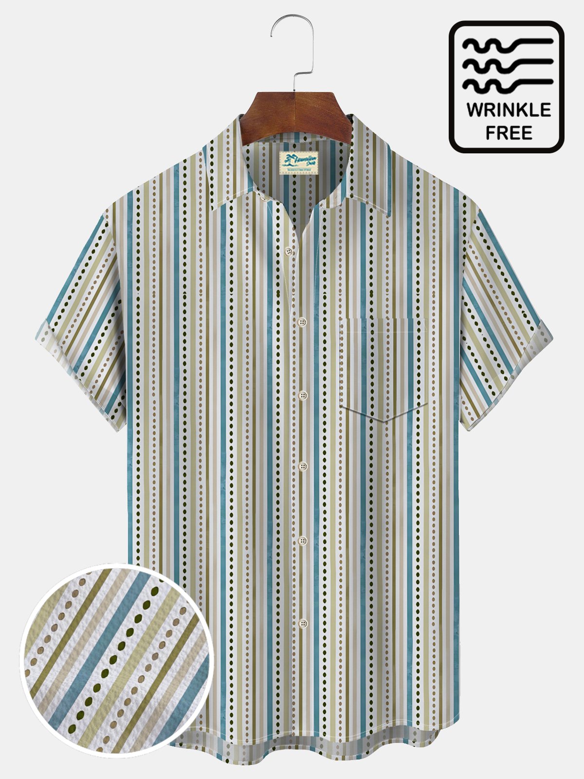 Alohadaddy Vintage Men's Striped Shirt Artistic Wrinkle Free Seersucker Aloha Camp Pocket Shirts