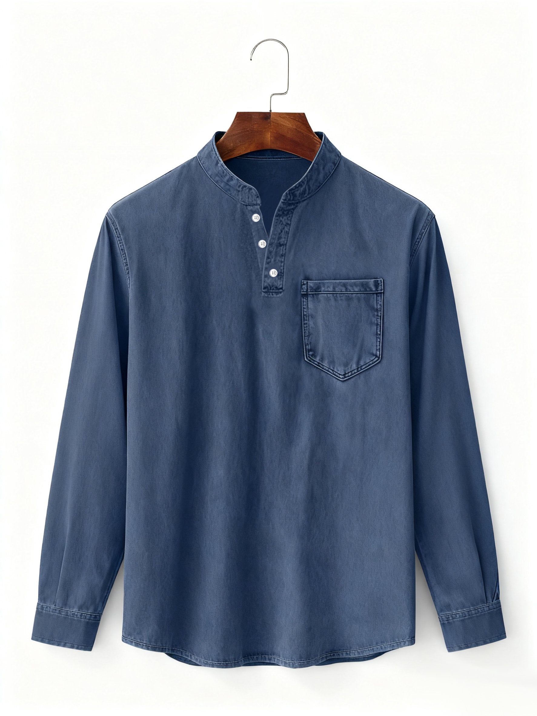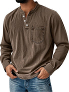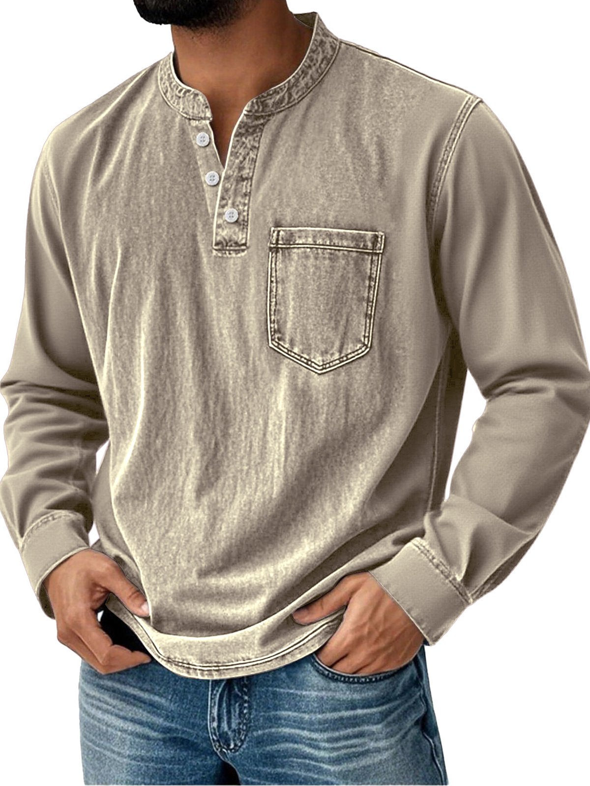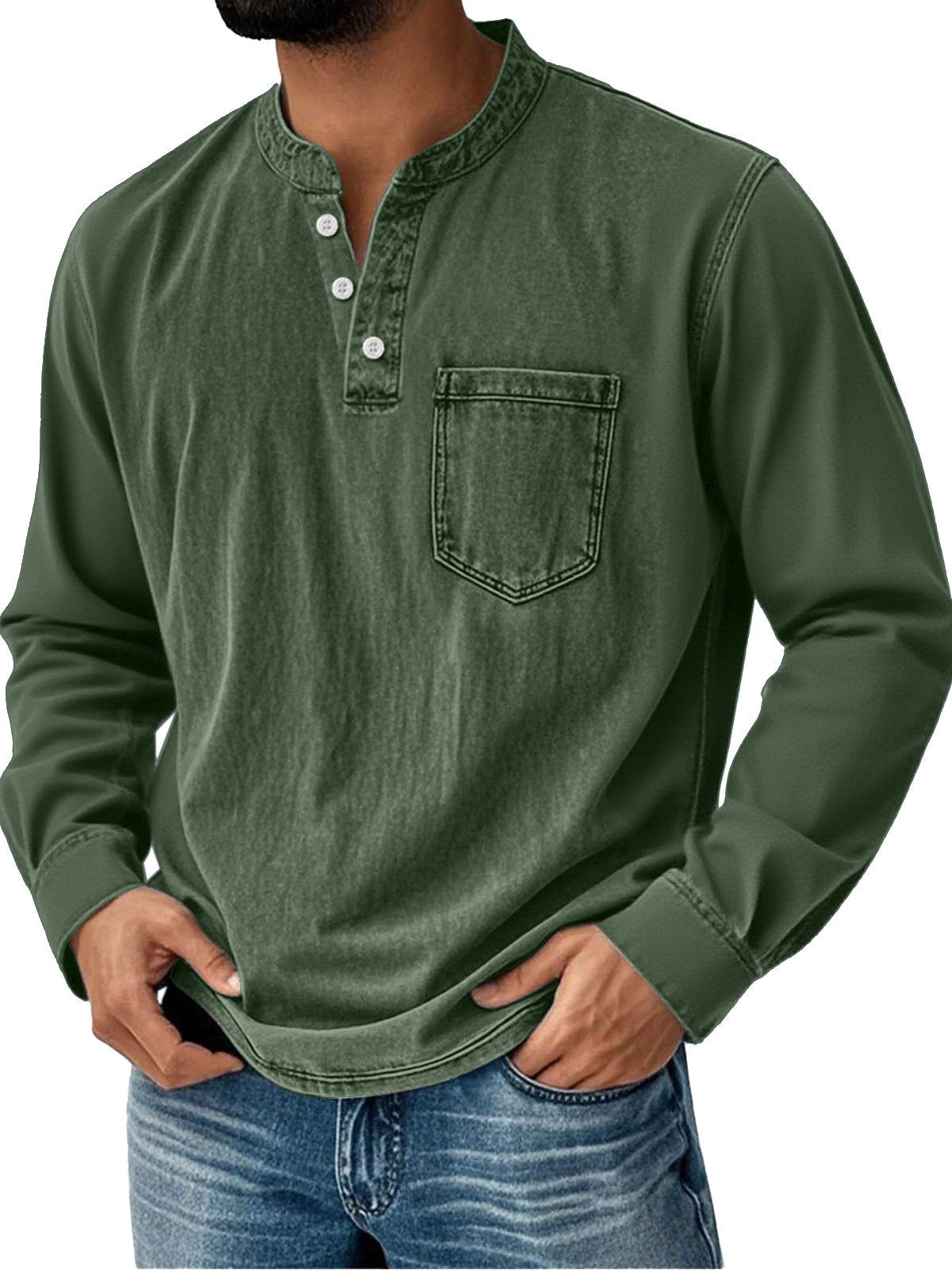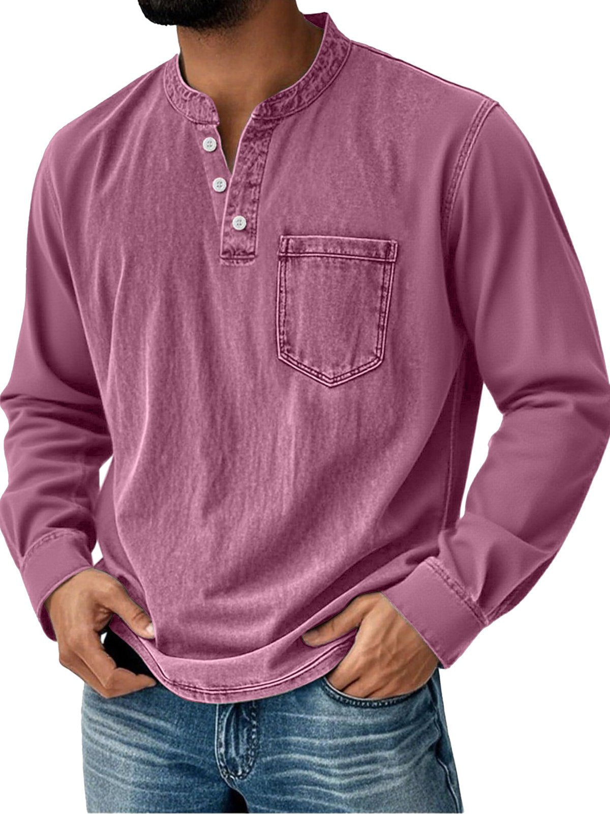 Alohadaddy® Basic Men's Casual Fashion Elastic Button Open Collar Long Sleeve Pocket T-Shirt Big Tall