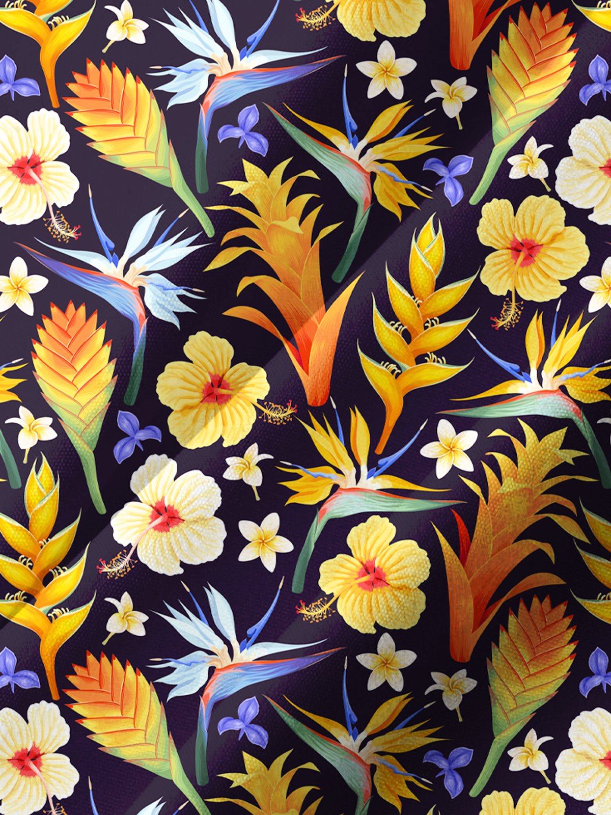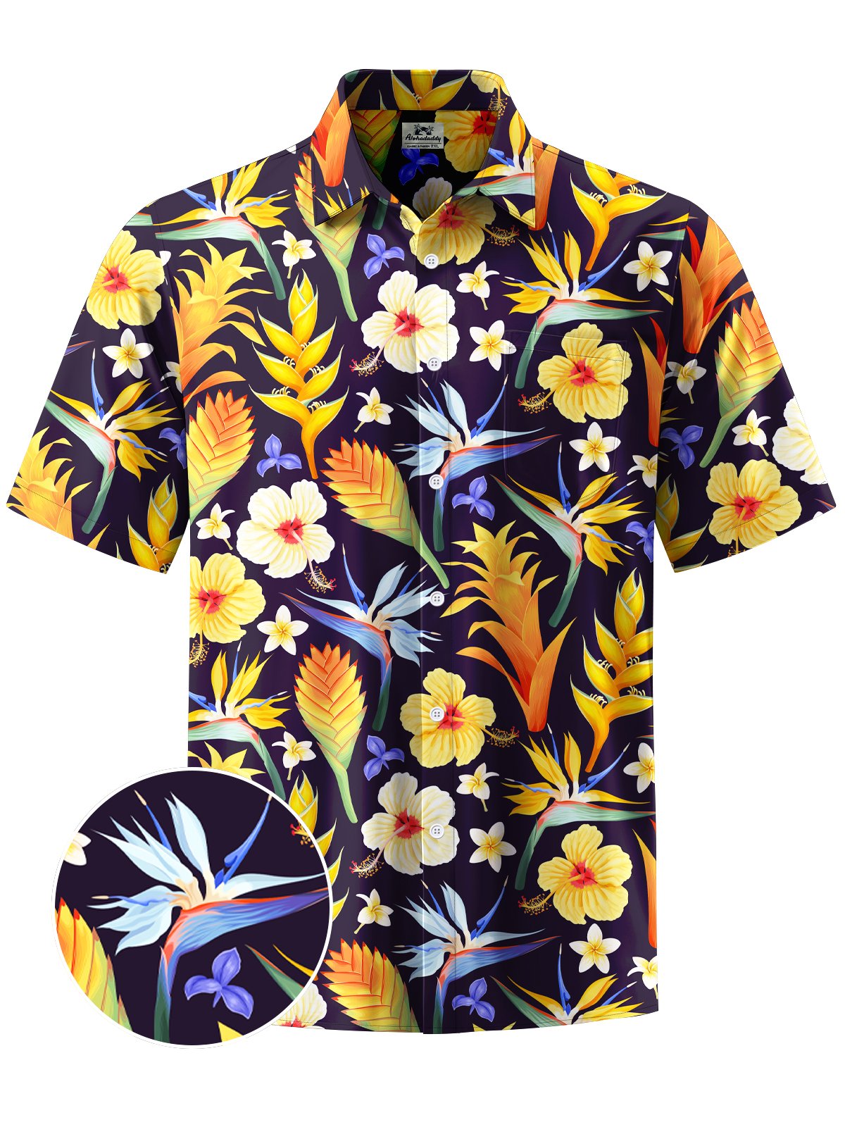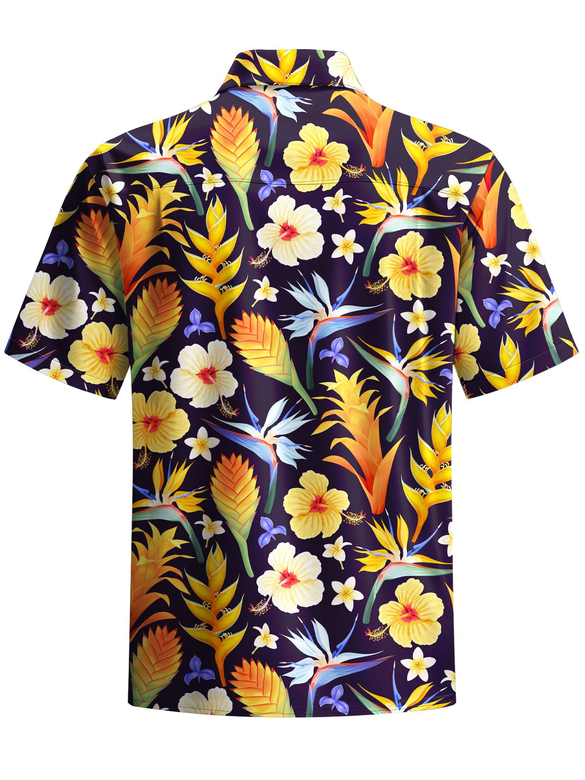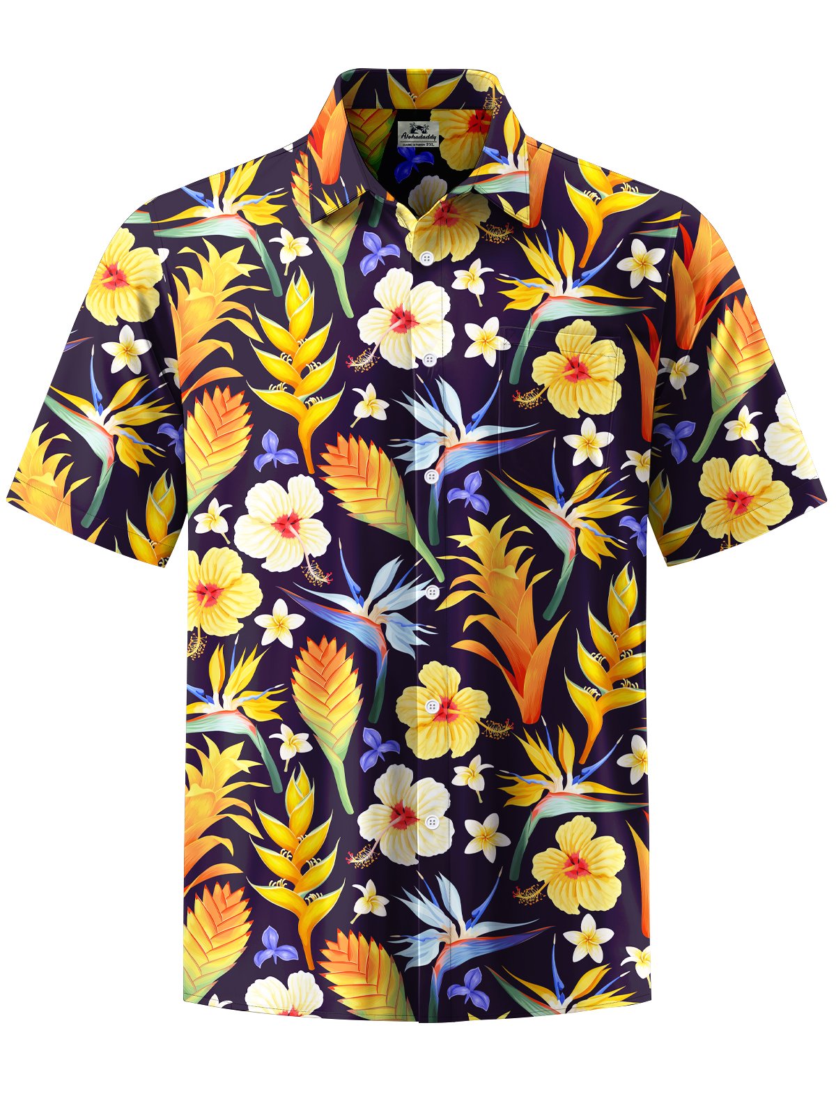 Alohadaddy® Hawaiian Floral Tropical Fruit Print Men's Button-Down Short Sleeve Shirt