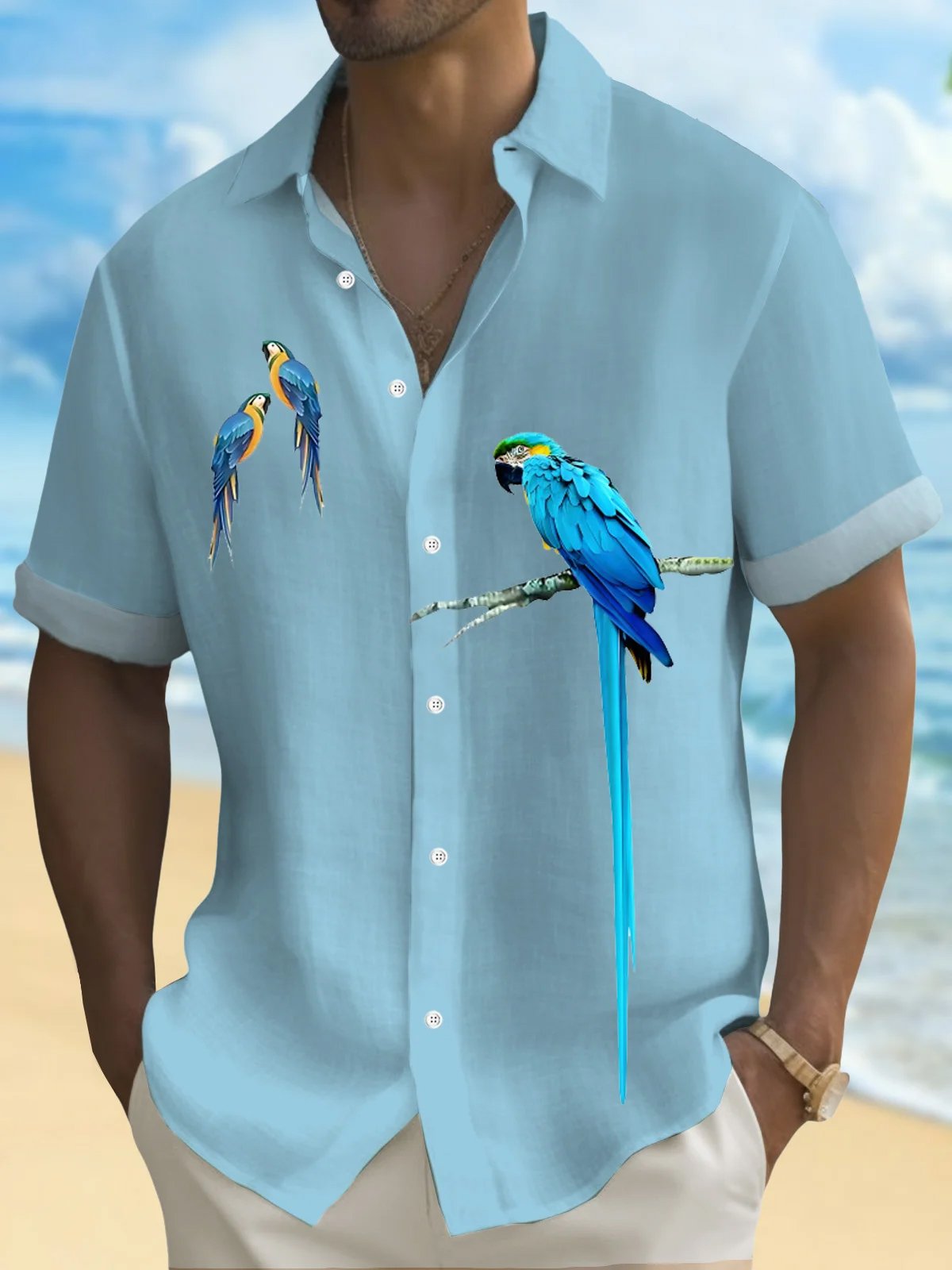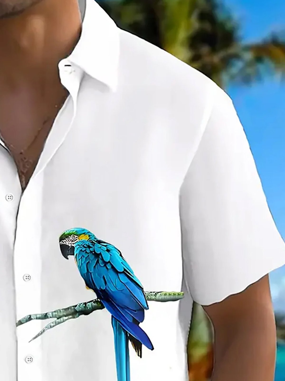 Alohadaddy® Hawaiian Parrot Print Men's Button Short Sleeve Shirt Big & Tall