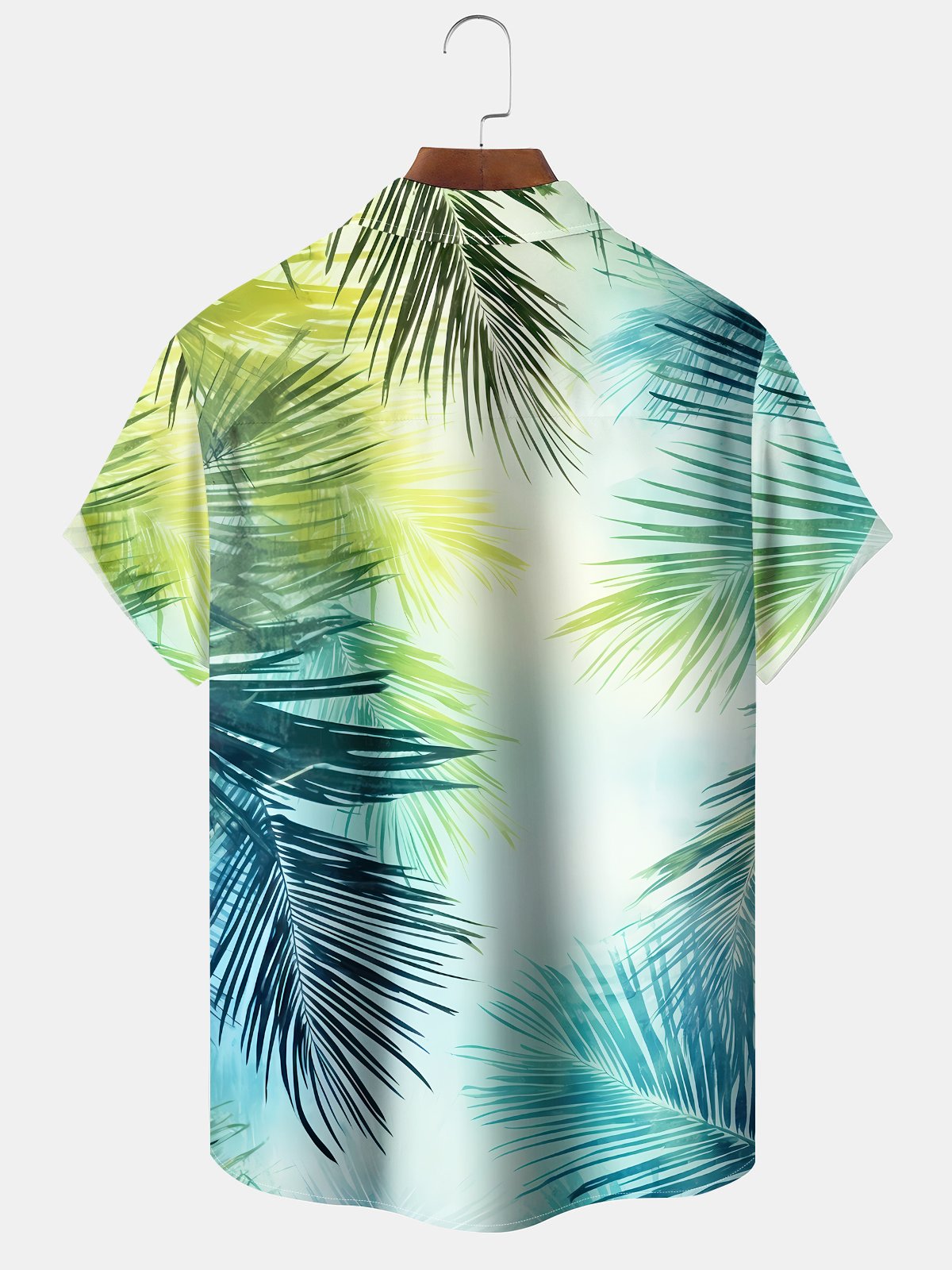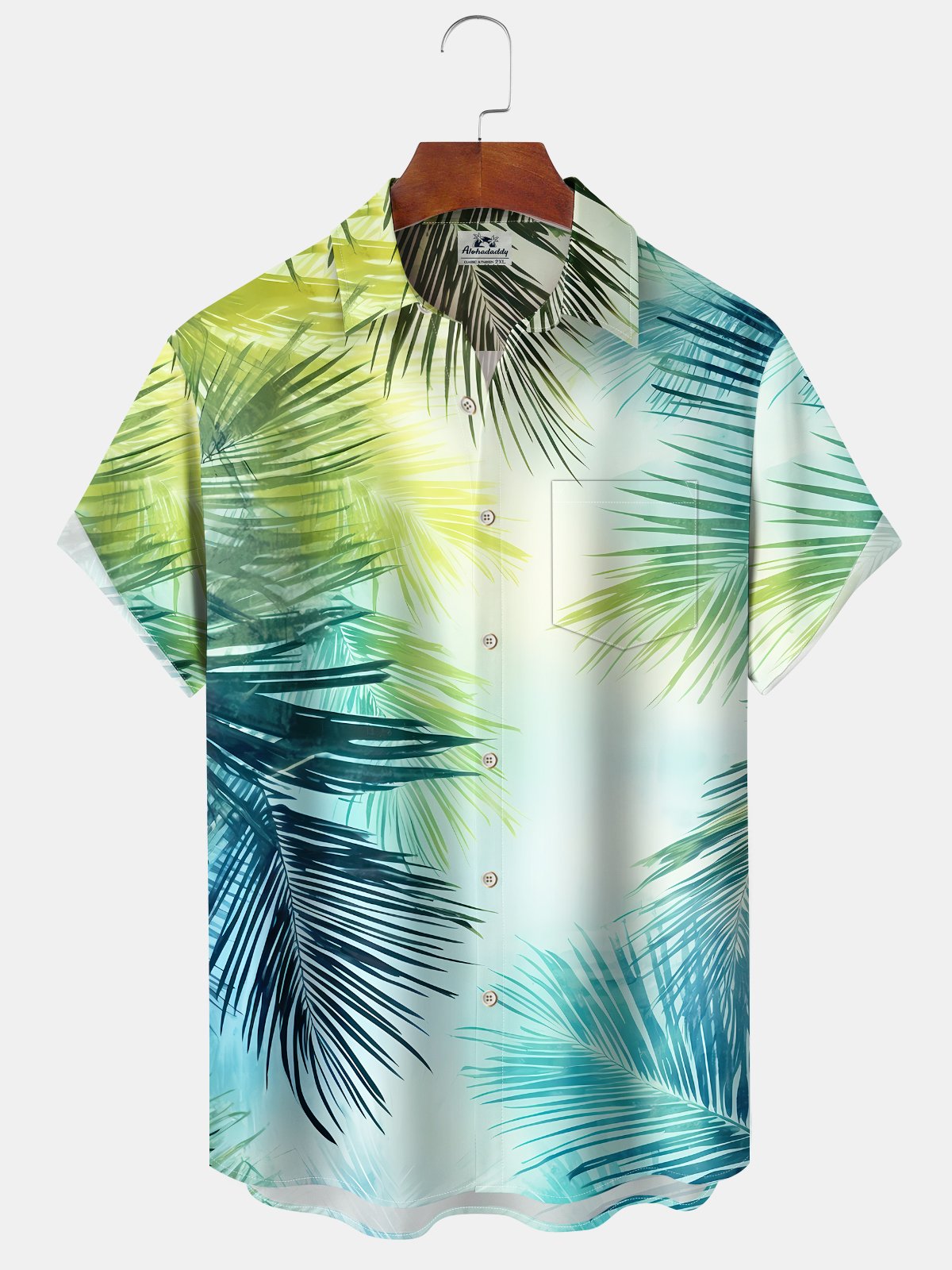 Alohadaddy® Palm Leaf Moisture Wicking Chest Pocket Hawaiian Men's Short Sleeve Shirt Big & Tall