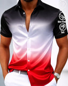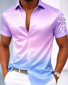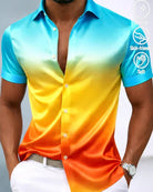 Alohadaddy® Retro Satin-Finish Printed Gradient Men's Button-Down Short-Sleeve Shirt
