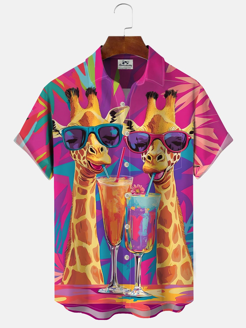 Alohadaddy Animal Hawaii Coconut Tree Animal Button Pocket Casual Vacation Shirt