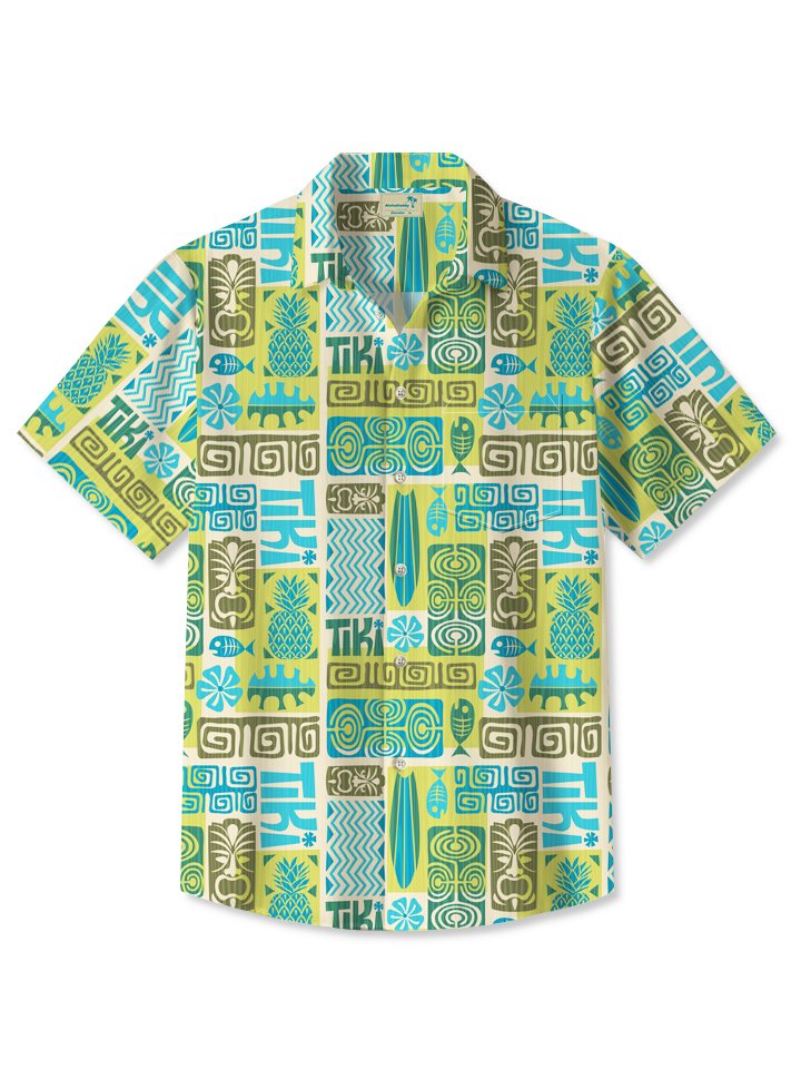 Alohadaddy Beach Hawaii Vintage Tiki Coconut Tree Vacation Aloha Shirt