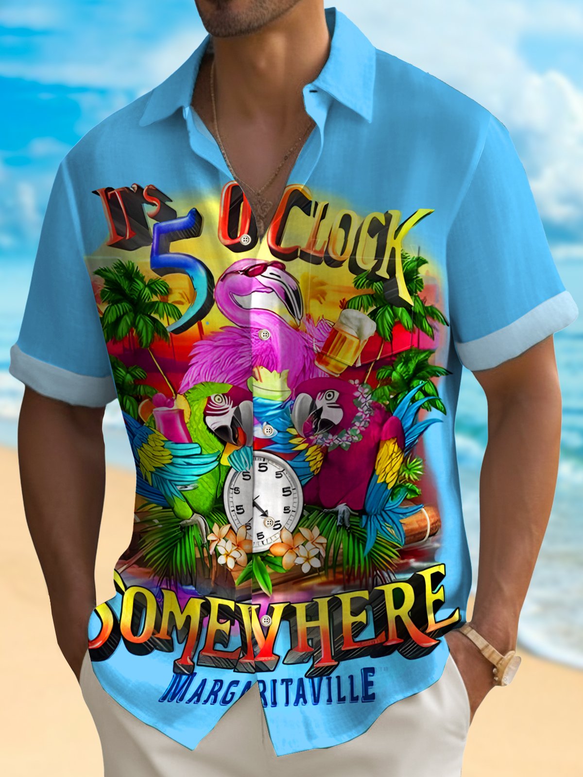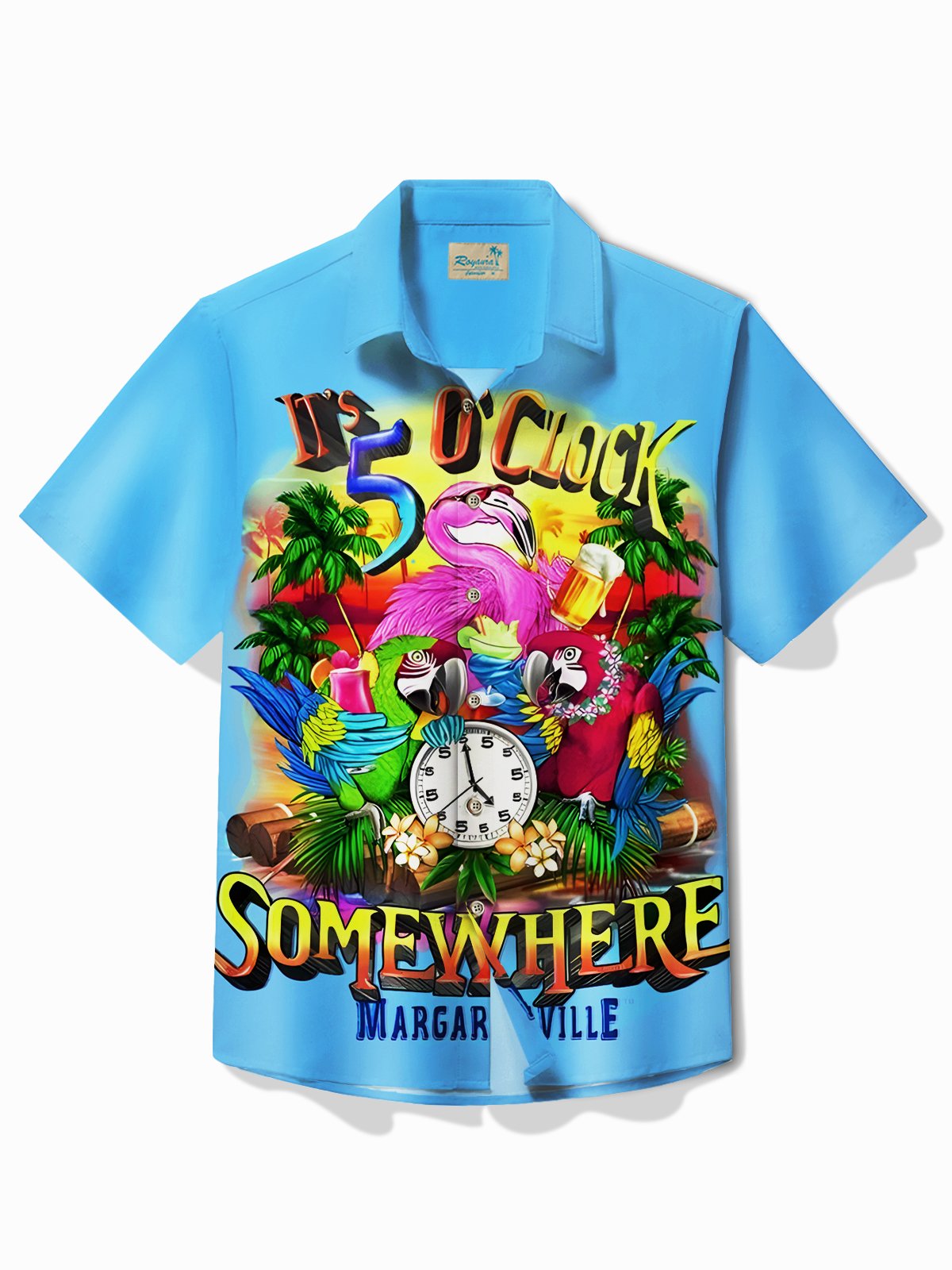 Alohadaddy Beach Vacation Hawaiian Men's Shirt 5 O'Clock Parrot Aloha Pocket Shirt Big Tall
