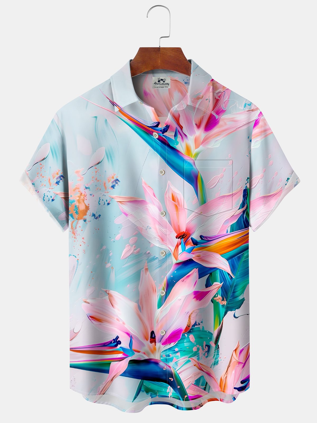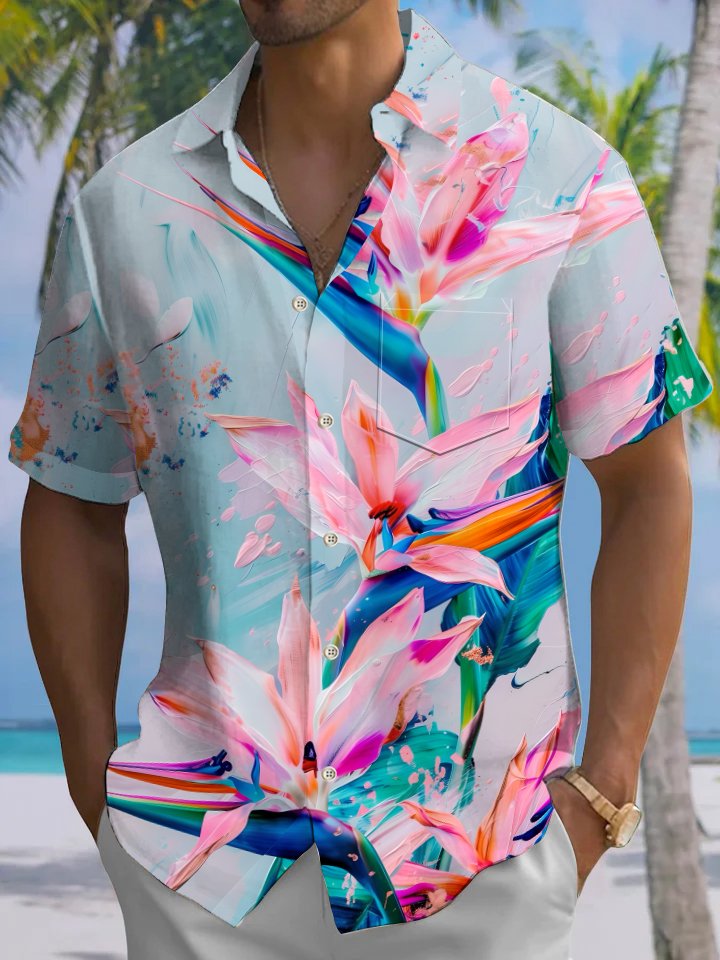 Alohadaddy Casual Everyday Flowers Print Art Button Cardigan Pocket Polyester Stretch Large Size Long Short Sleeve Shirt