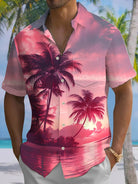 Alohadaddy Casual Everyday Palm Trees Beach Print Art Polyester Stretch Large Size Pocket Short Sleeve Shirt