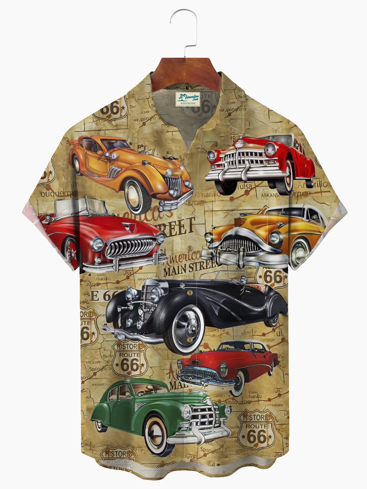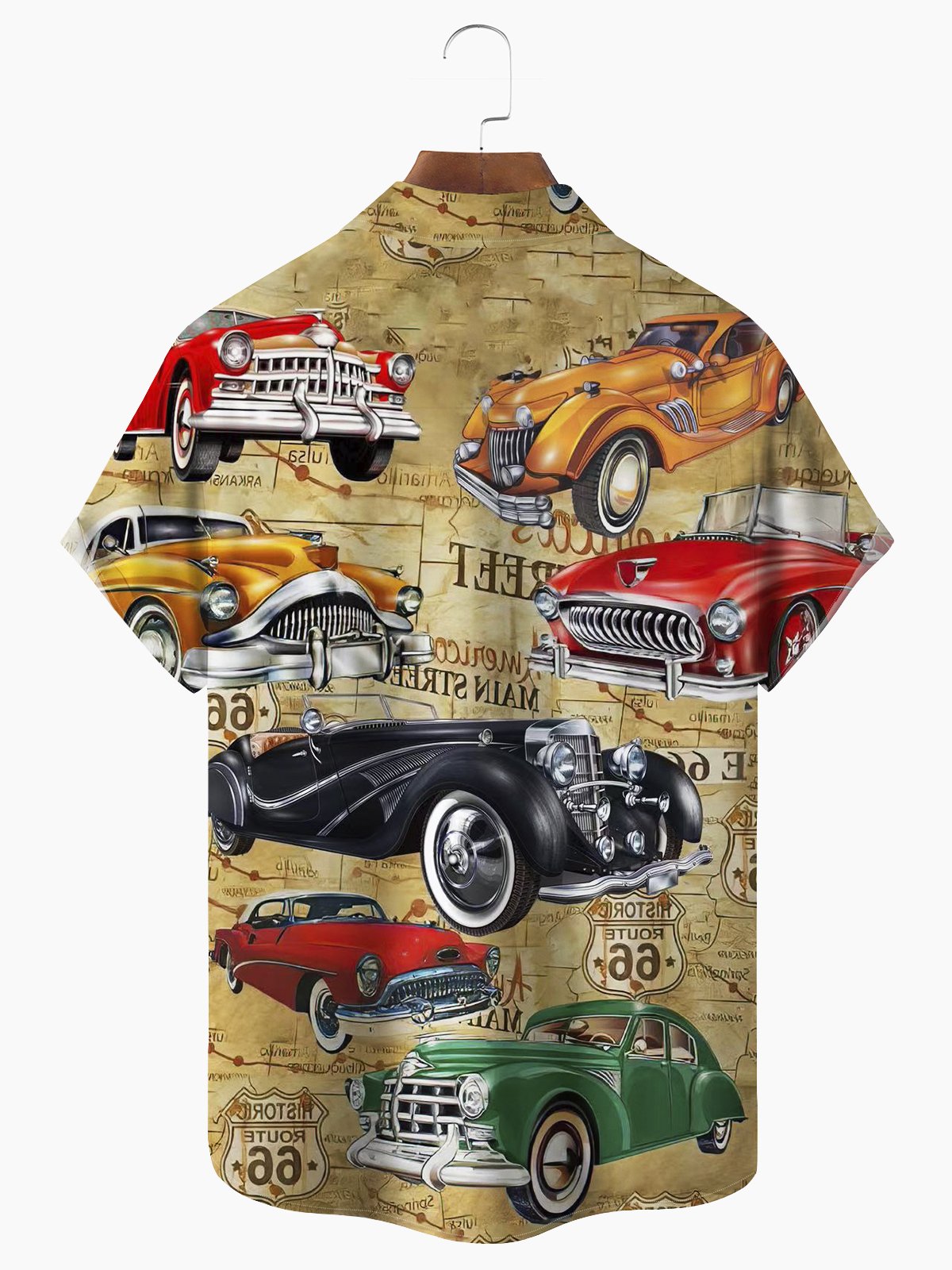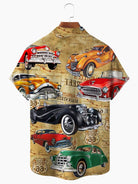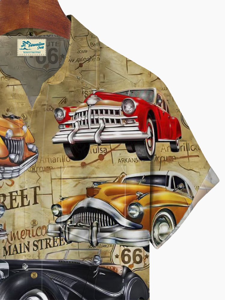 Alohadaddy Classic Cars In The City Print Men's Hawaiian Oversized Shirt with Pockets