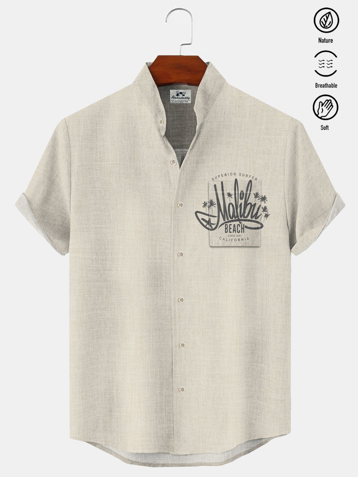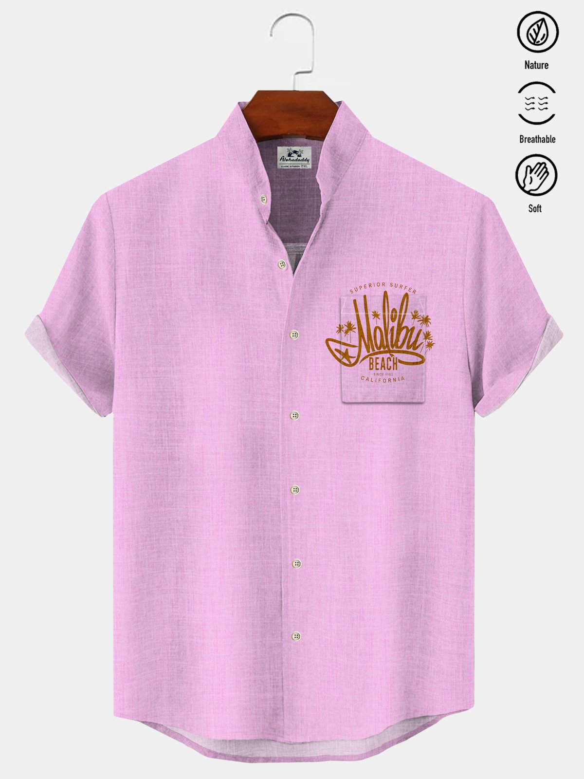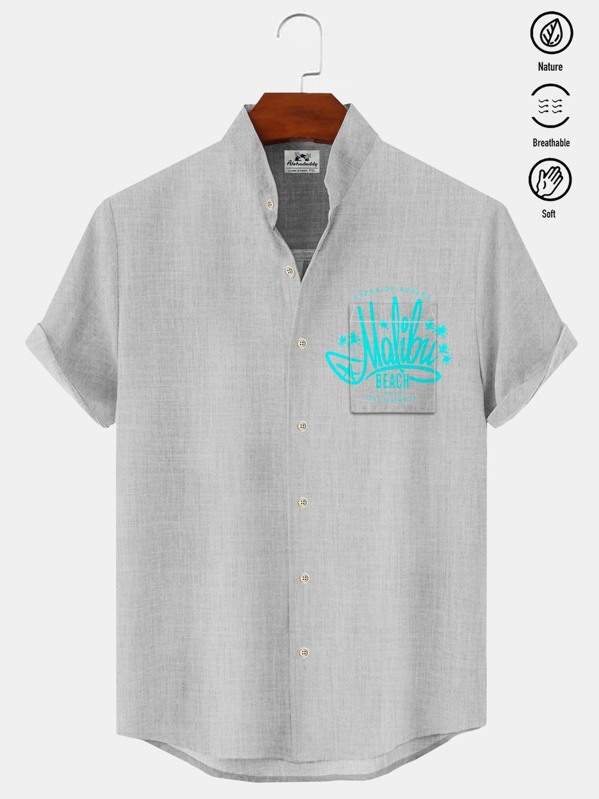 Alohadaddy Coconut Tree Pocket Casual Short Sleeve Stand Collar Shirt