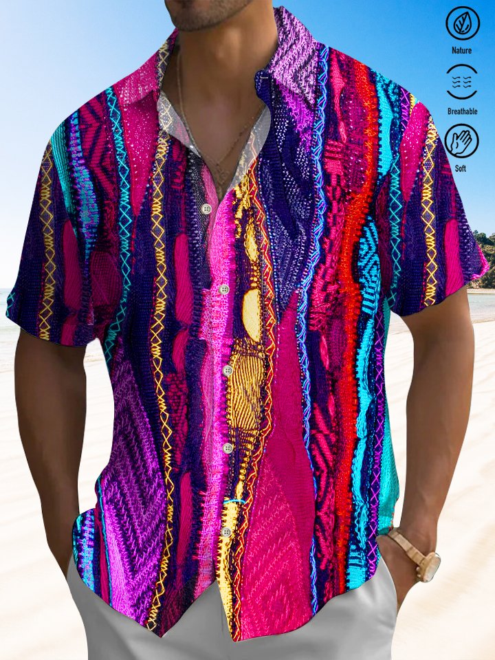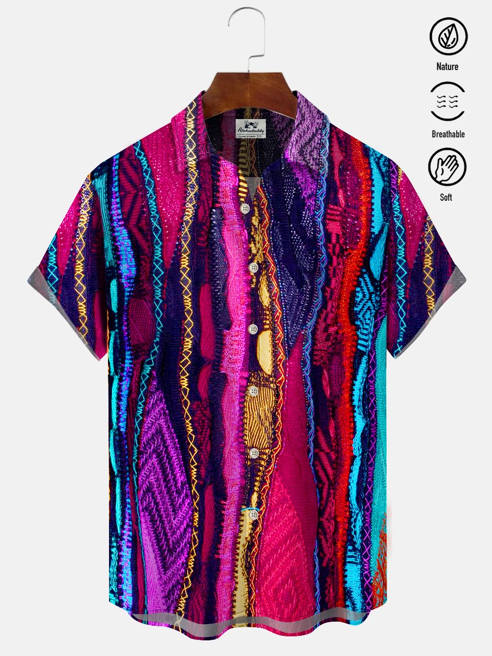 Alohadaddy Contrast Color Cotton And Linen Fabric Texture Buttons Pockets Casual Short Sleeves Holiday Shirt