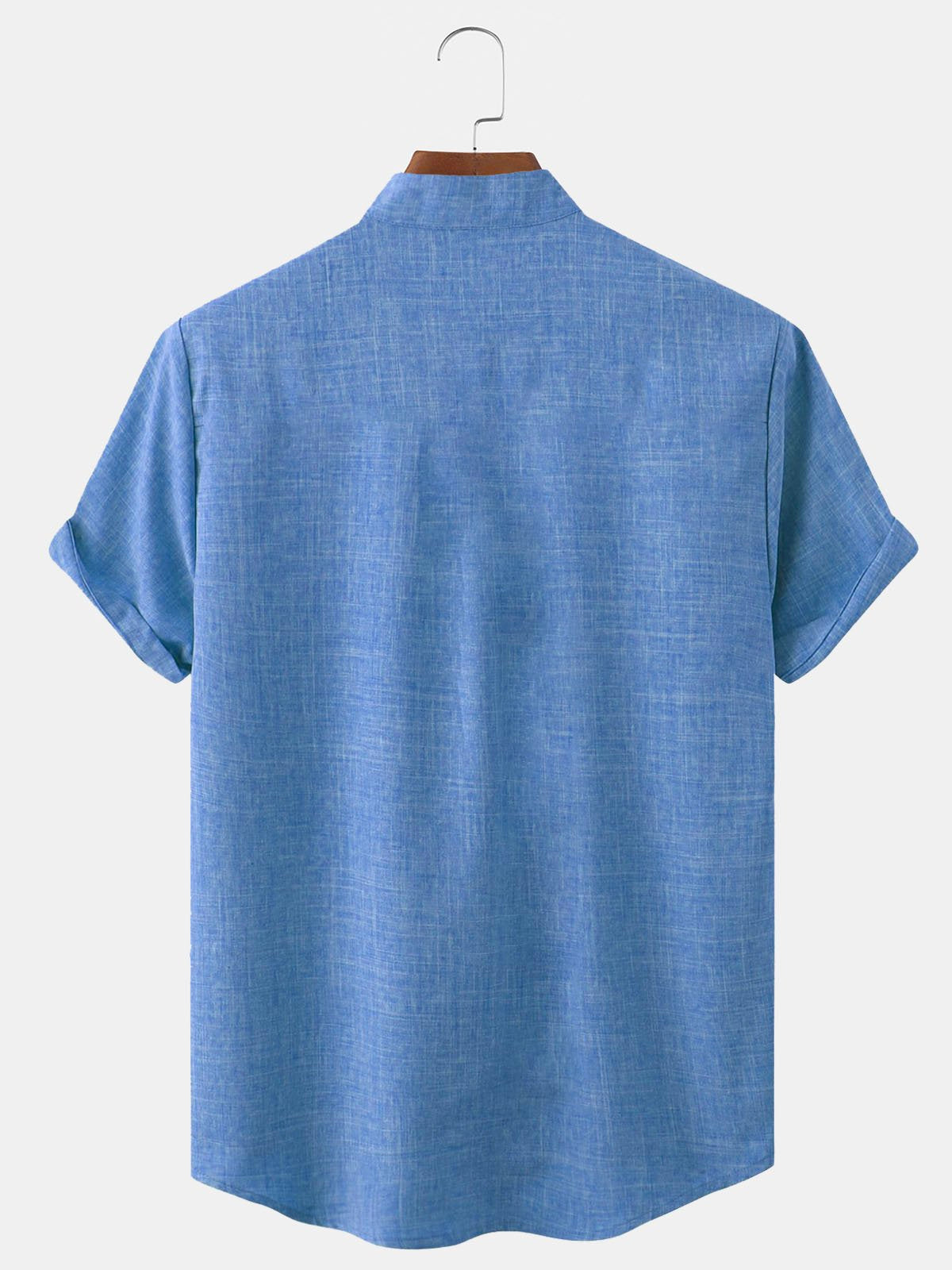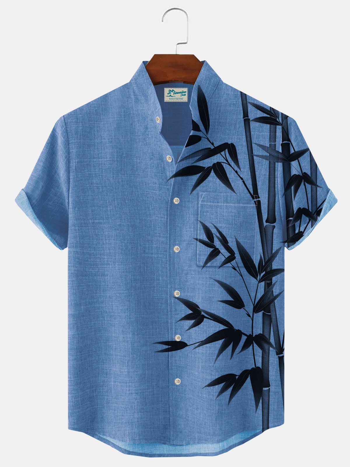 Alohadaddy Cotton Linen Vintage Bamboo Men's Button Pocket Shirt