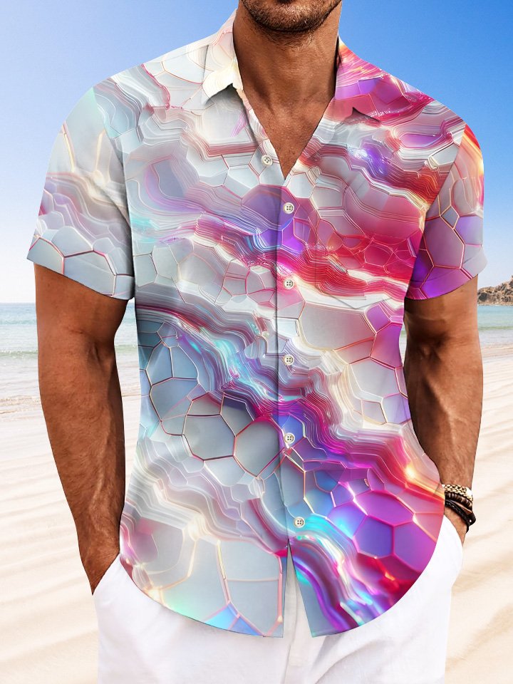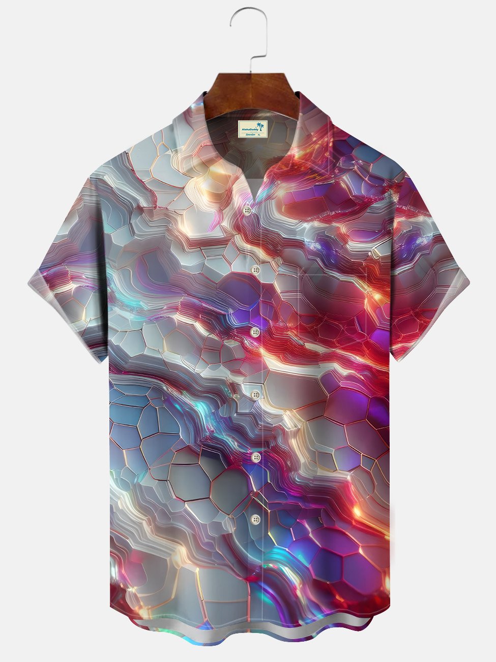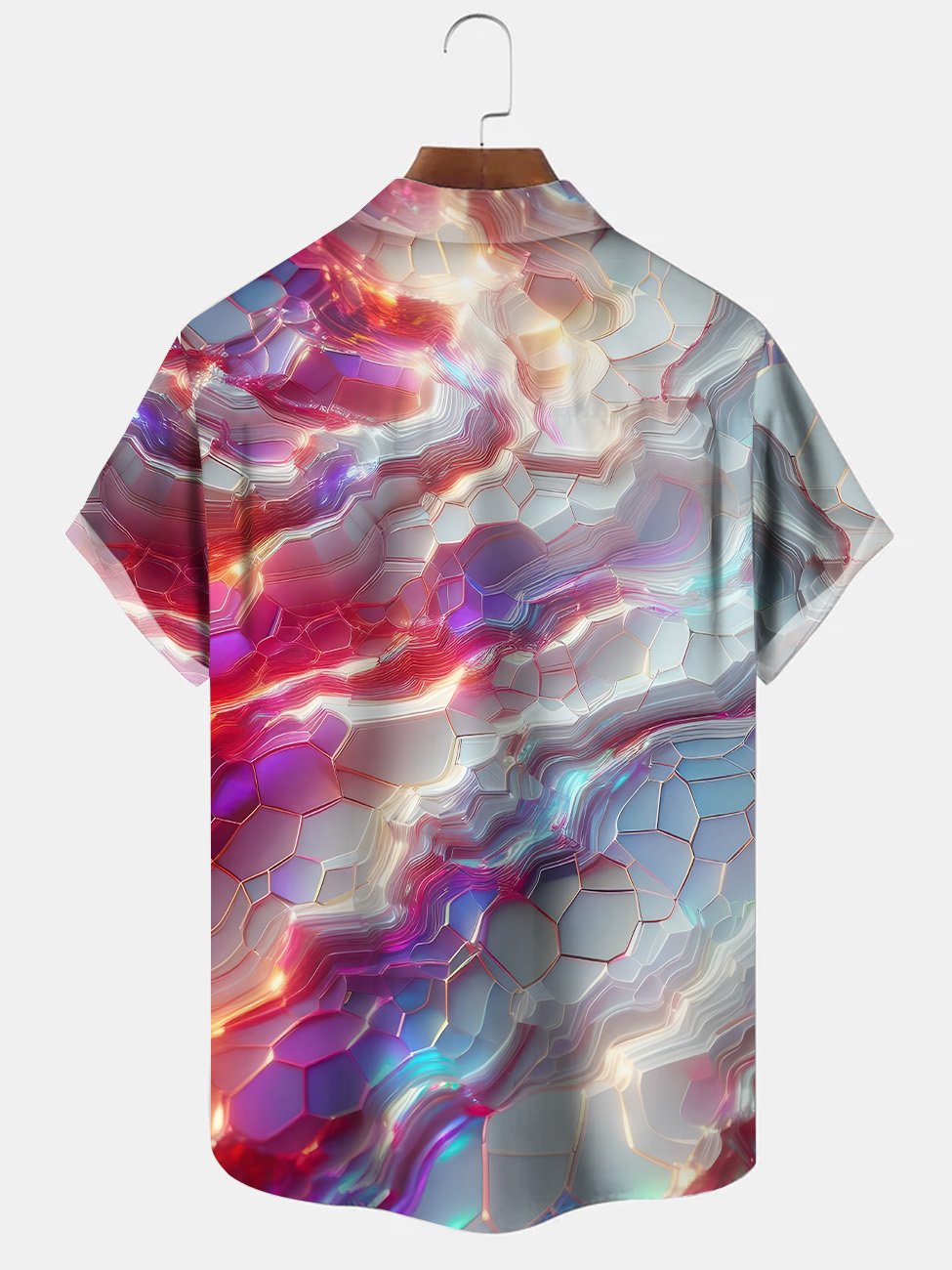 Alohadaddy Gradient Geometric Pattern Button Pocket Casual Short Sleeve Shirt