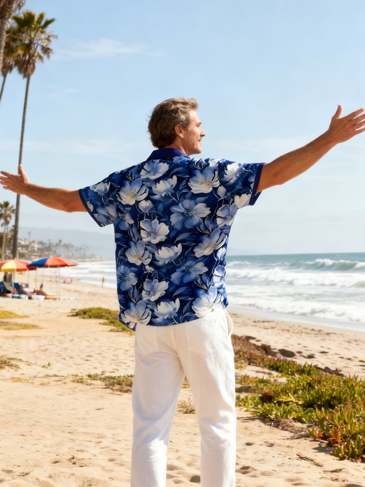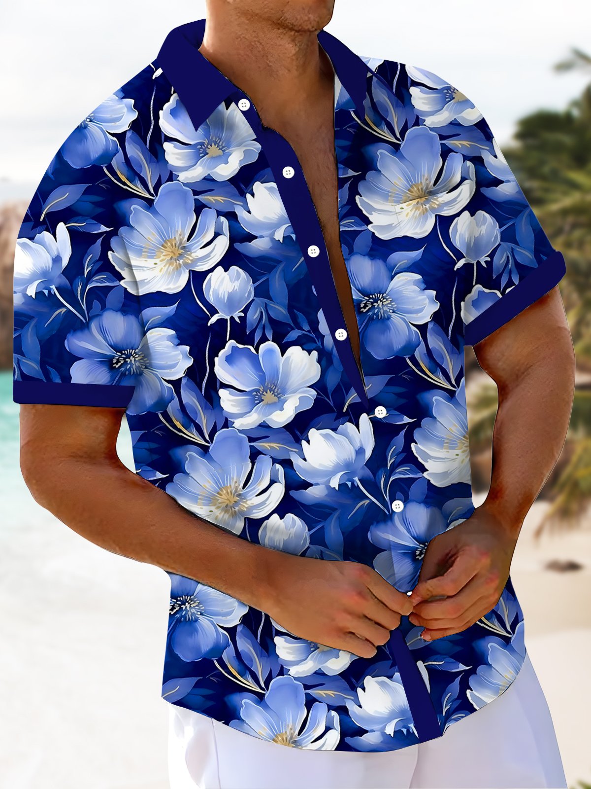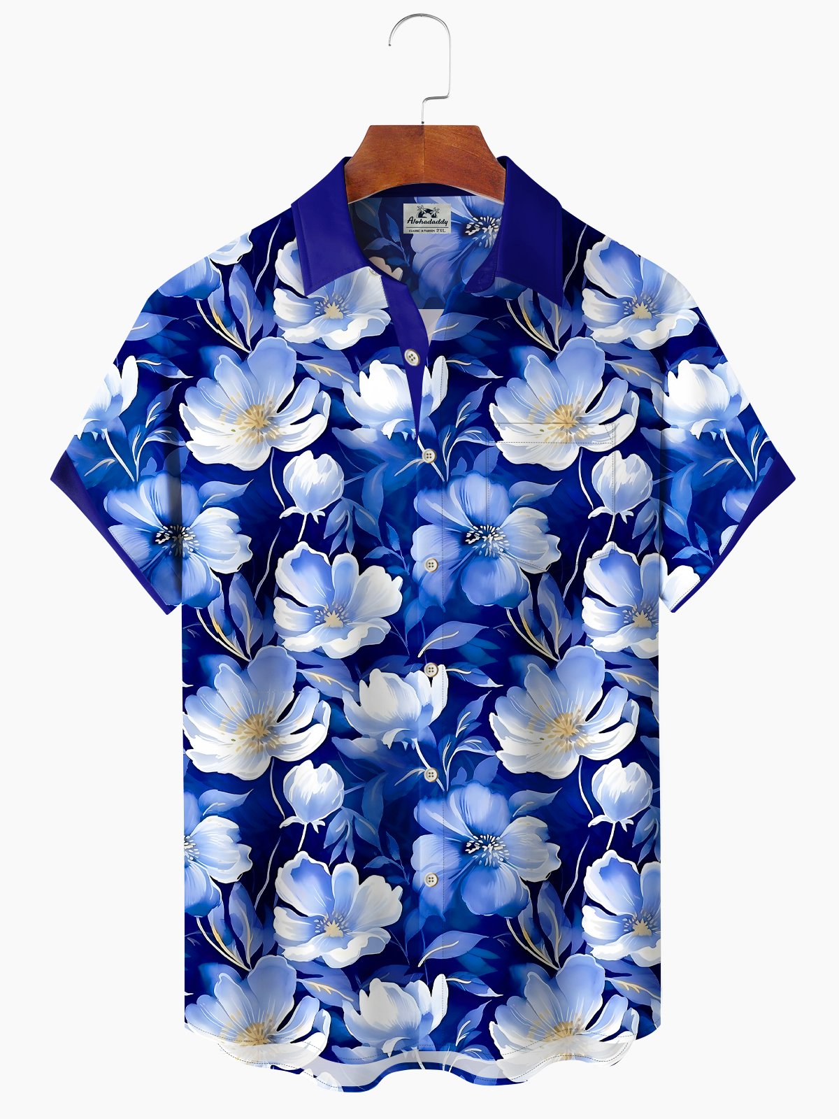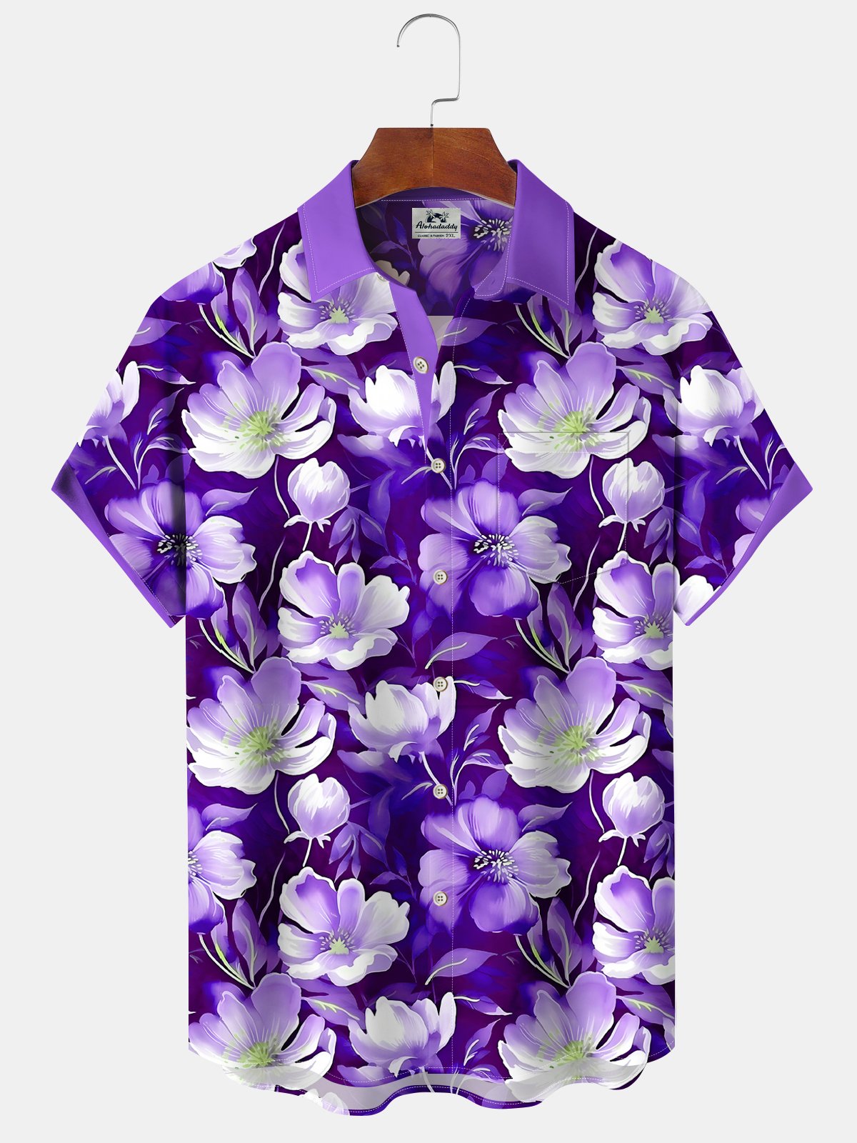 Alohadaddy Hawaiian Floral Print Men's Button Pocket Short Sleeve Shirt