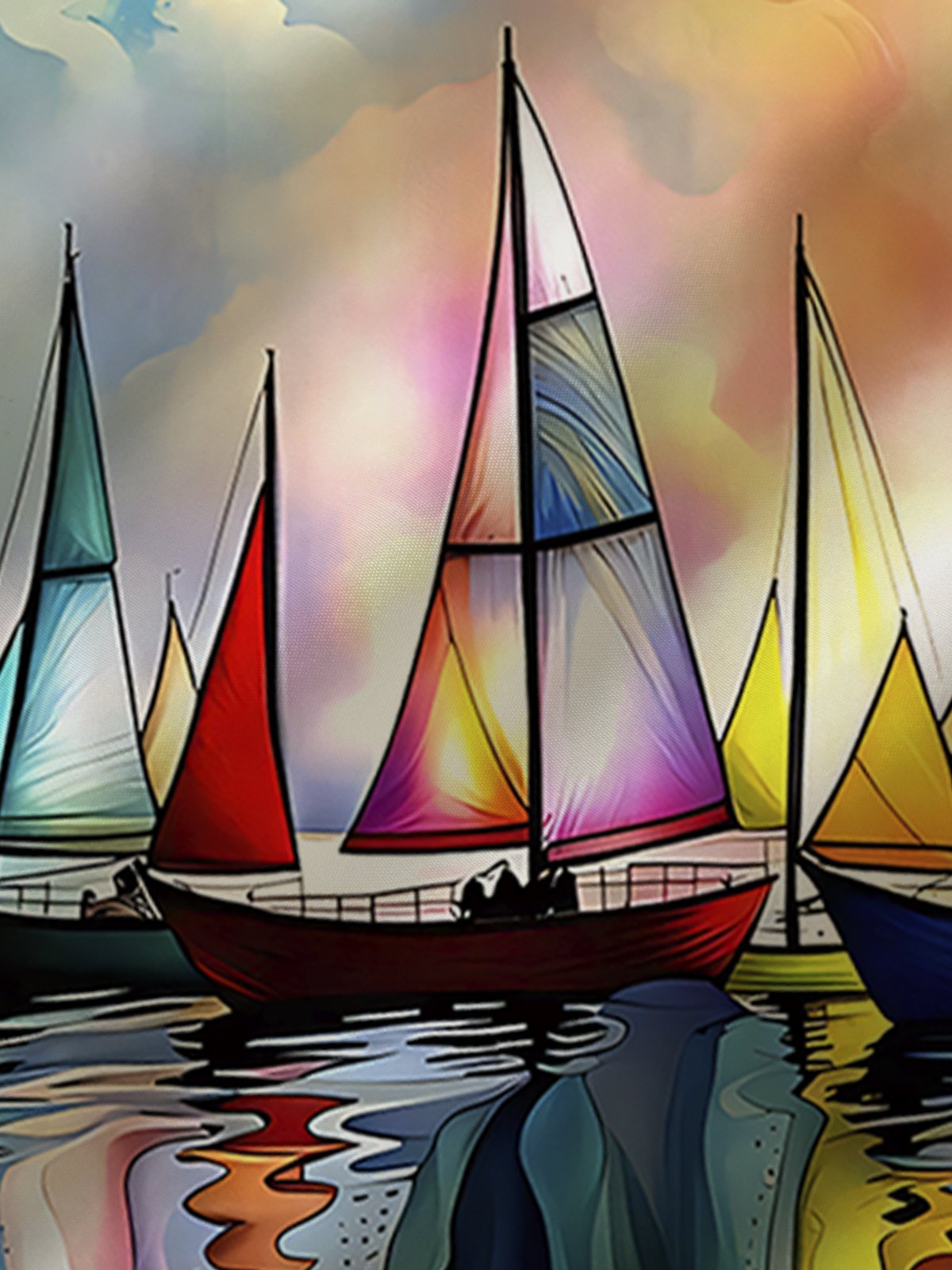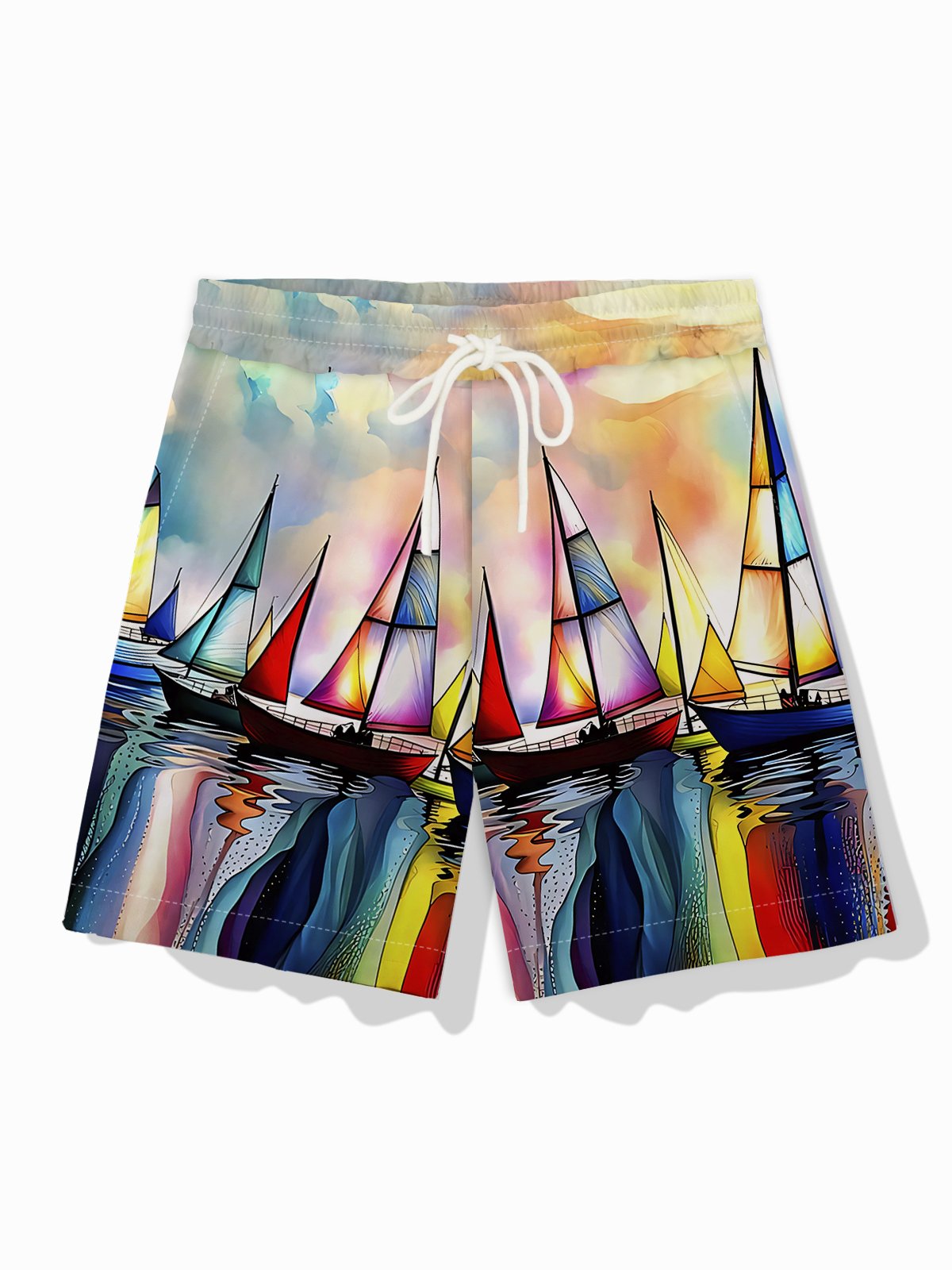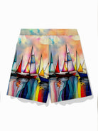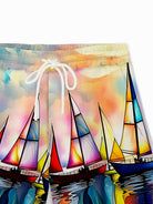 Alohadaddy Hawaiian Sailing Art Oil Painting Print Men's Drawstring Shorts Board Shorts