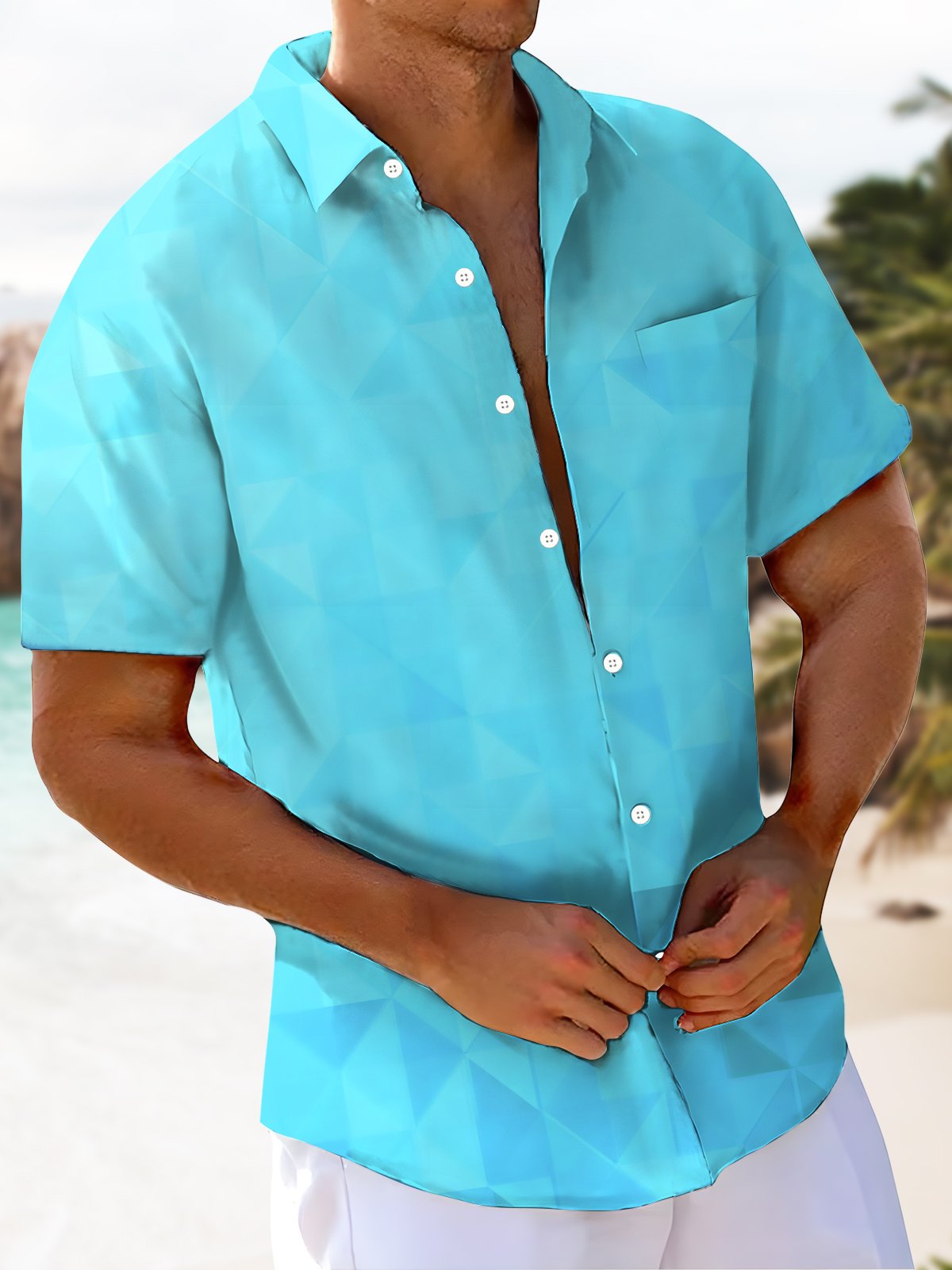 Alohadaddy Leisure Collection Geometric Triangle Gradient Color Print Art Pocket Cardigan Button Polyester Stretch Short Sleeve Shirt