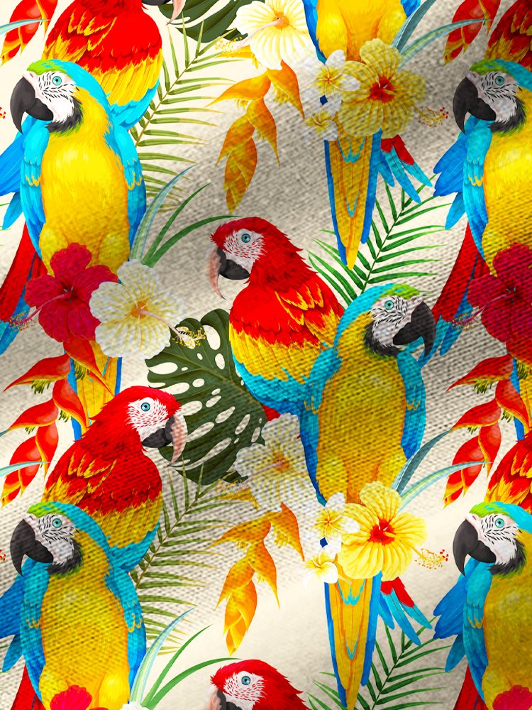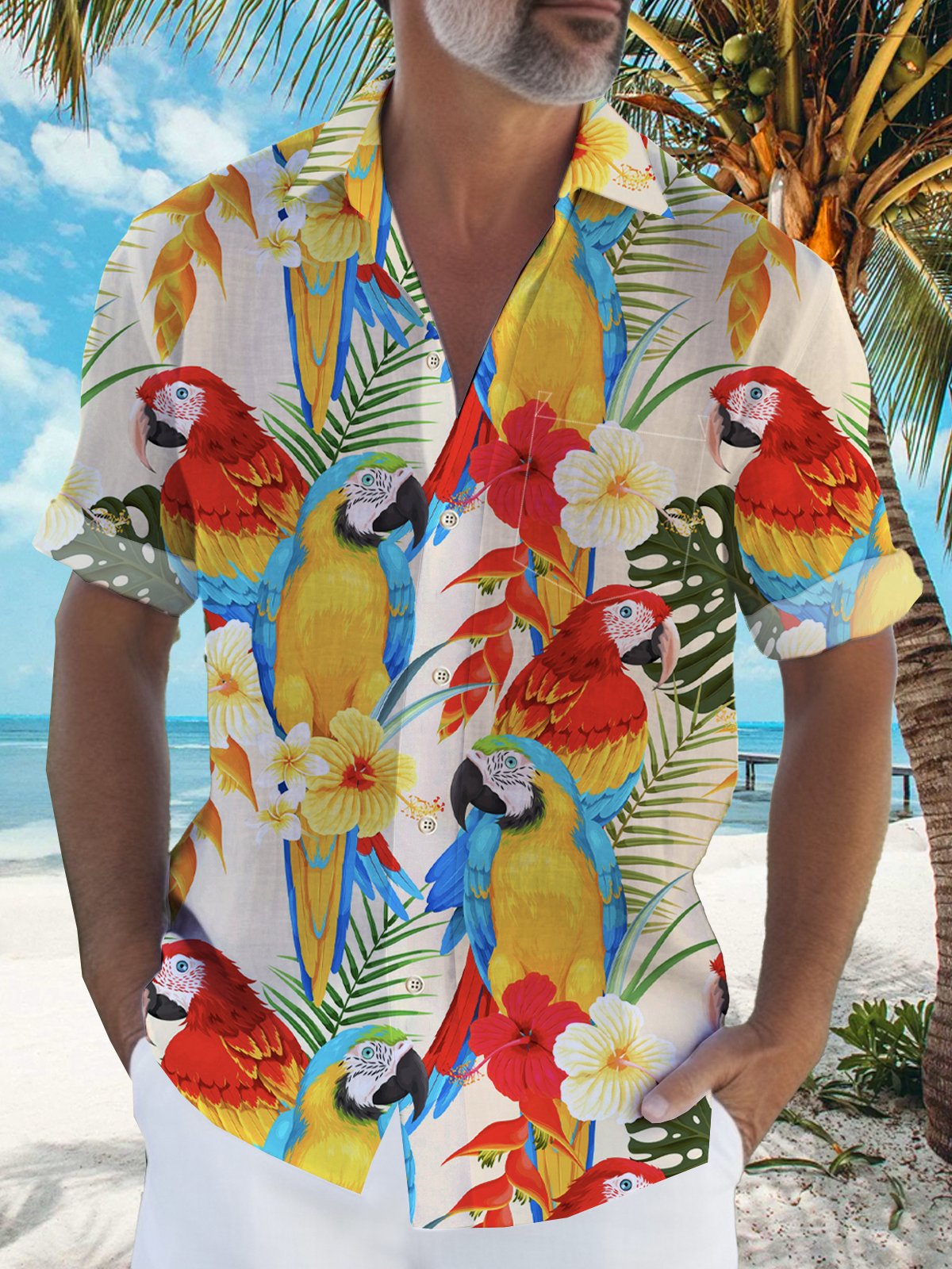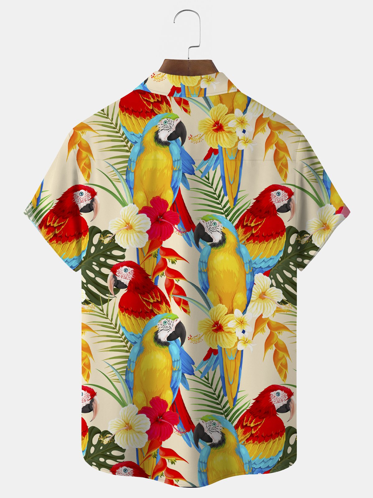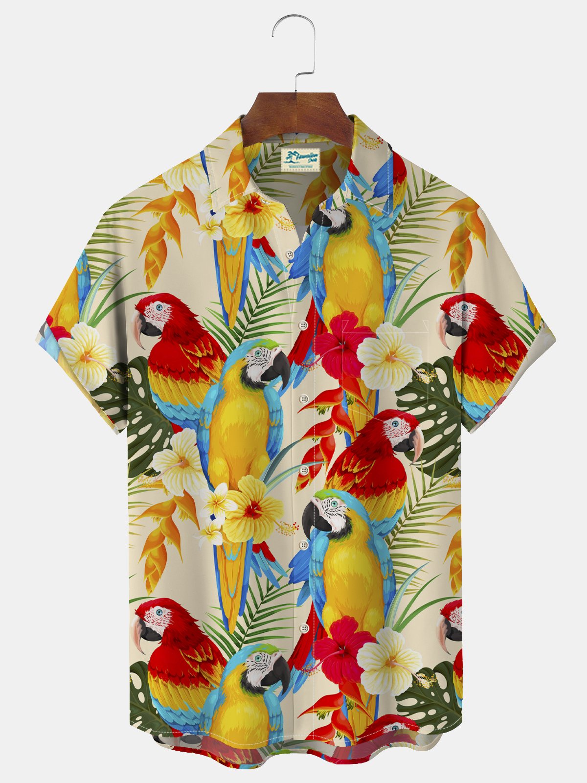 Alohadaddy Parrot Plant Print Men's Vacation Hawaii Big And Tall Aloha Shirt