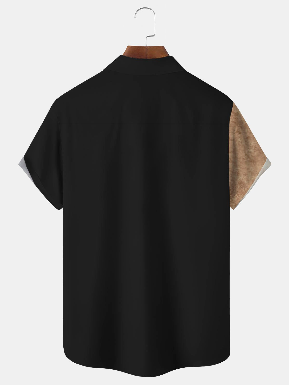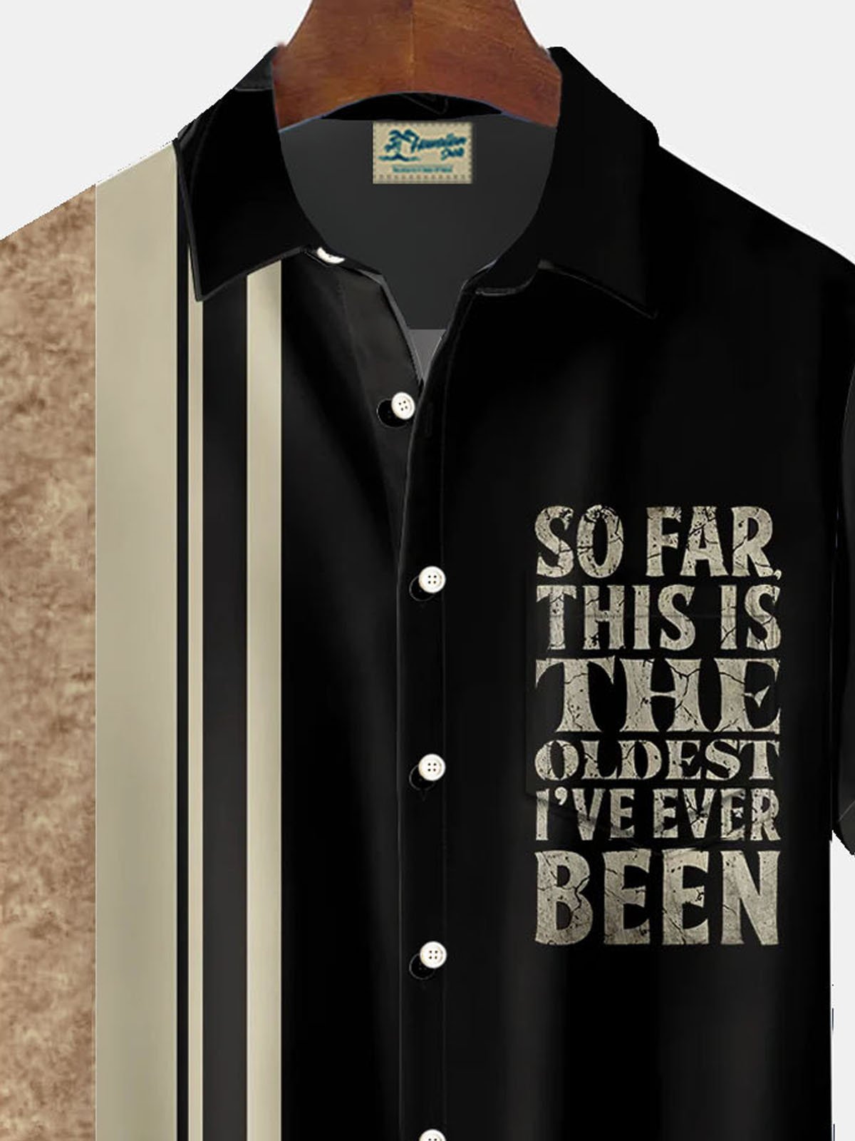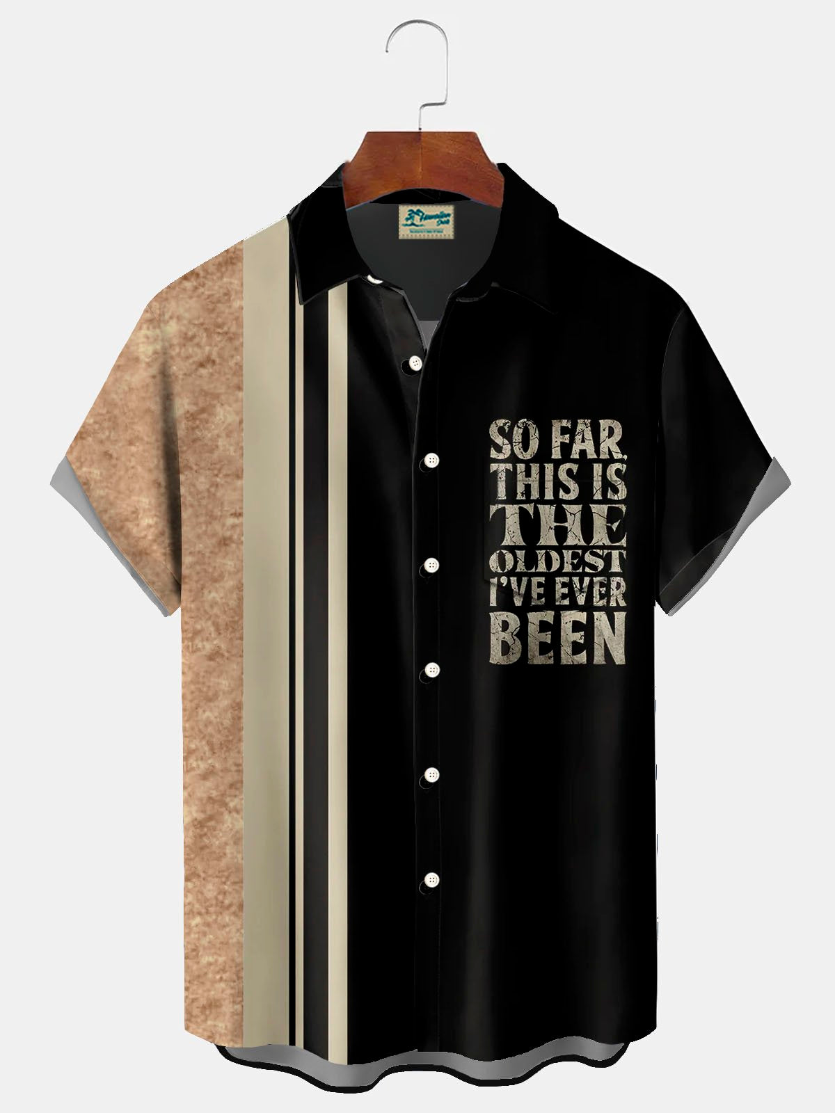 Alohadaddy Retro Letter Stripe Contrast Color 3D Print Men's Button Pocket Short Sleeve Shirt Big & Tall