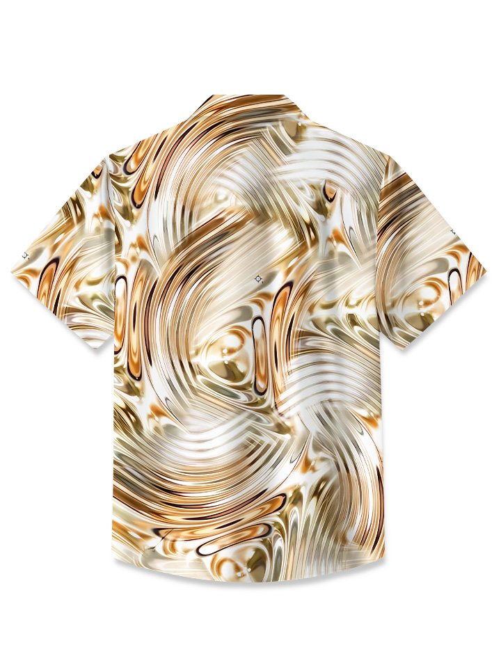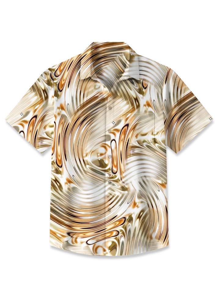 Alohadaddy Summer Ripple 3D Pattern Pocket Button Casual Vacation Men's Short Sleeve Shirt