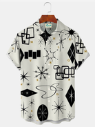 Royaura® Retro 1950s Mid-century Atomic Age Geometric Graphic Print Men's Button Pocket Short Sleeve Shirt Big & Tall