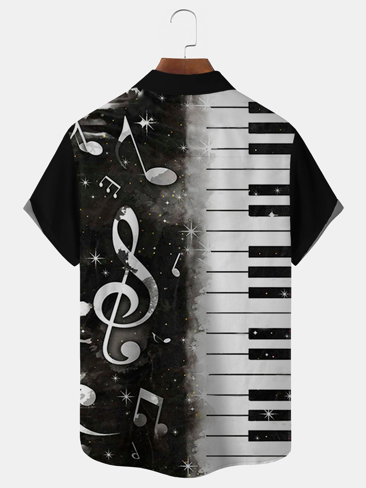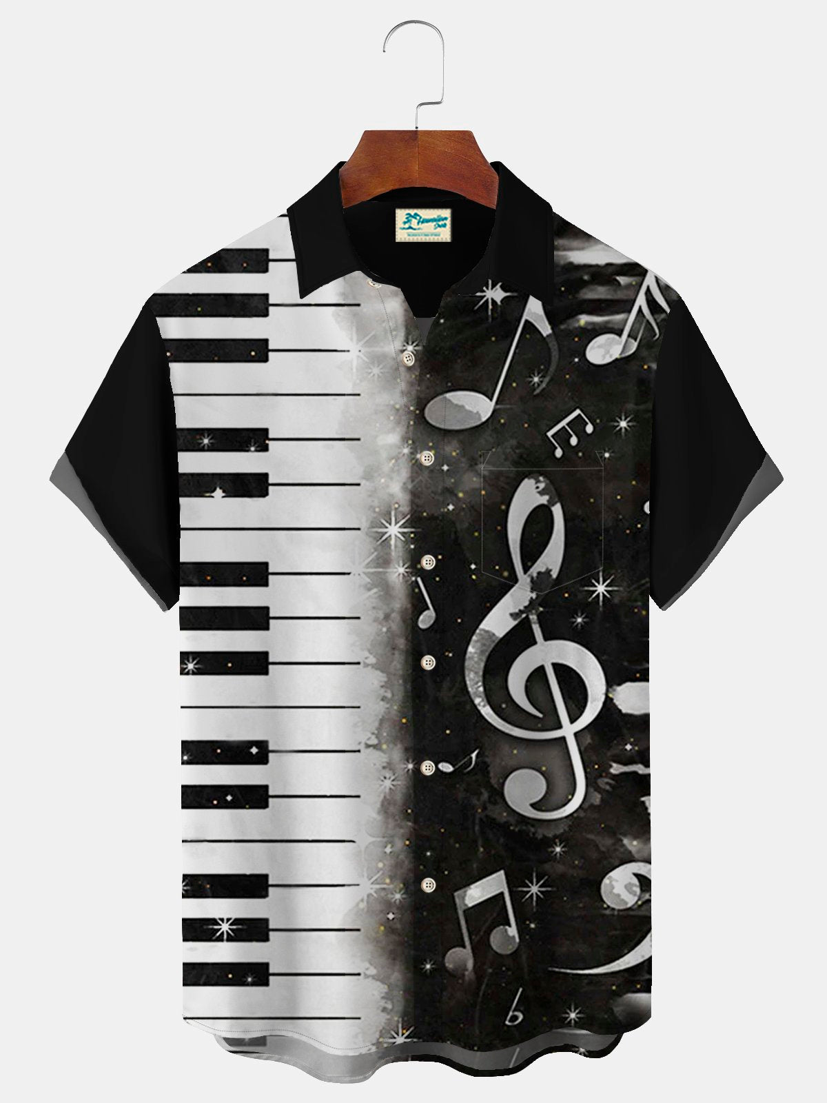 Alohadaddy Vintage Bowling Piano Note Print Men's Vacation Hawaiian Big and Tall Aloha Shirt