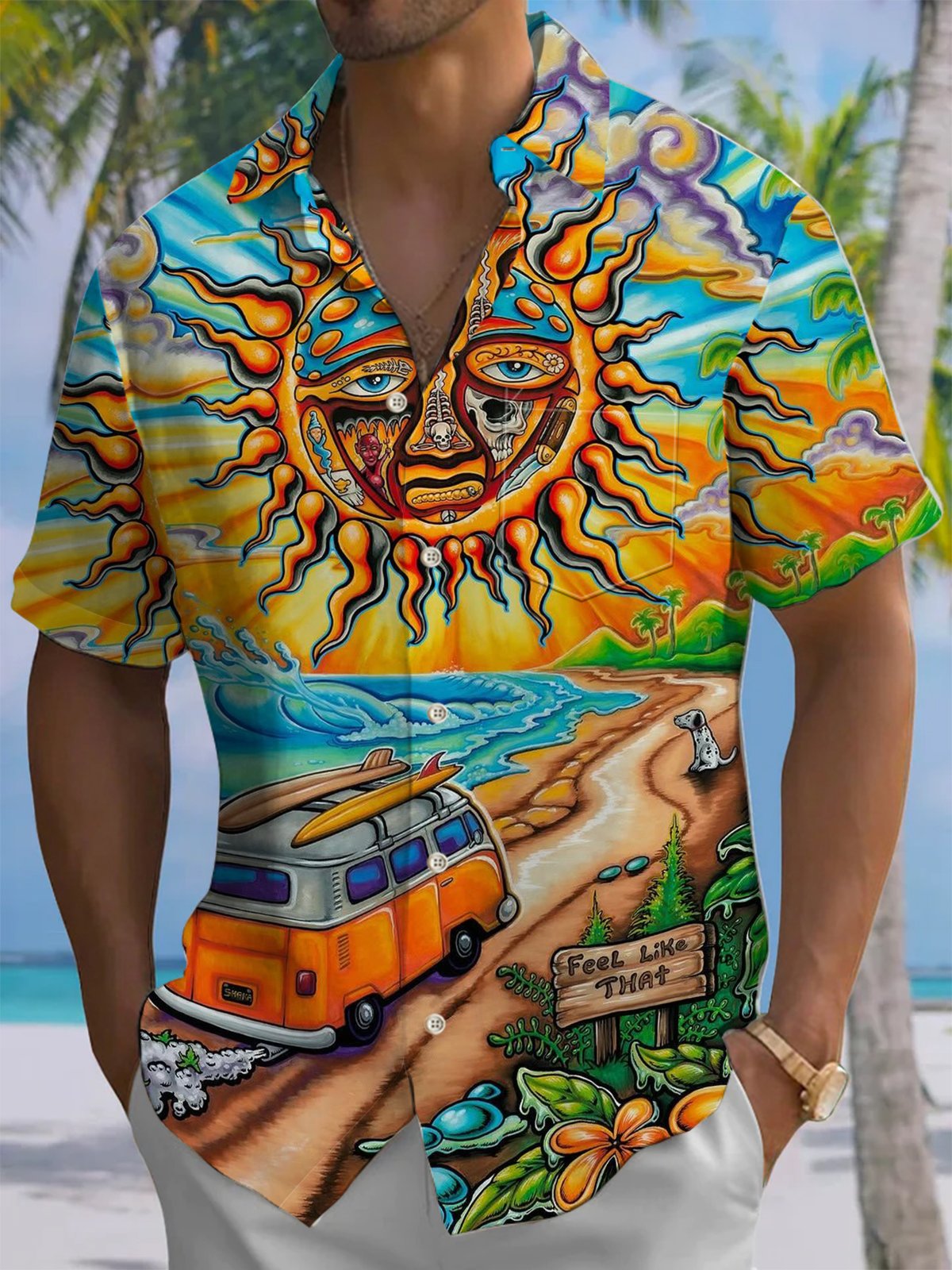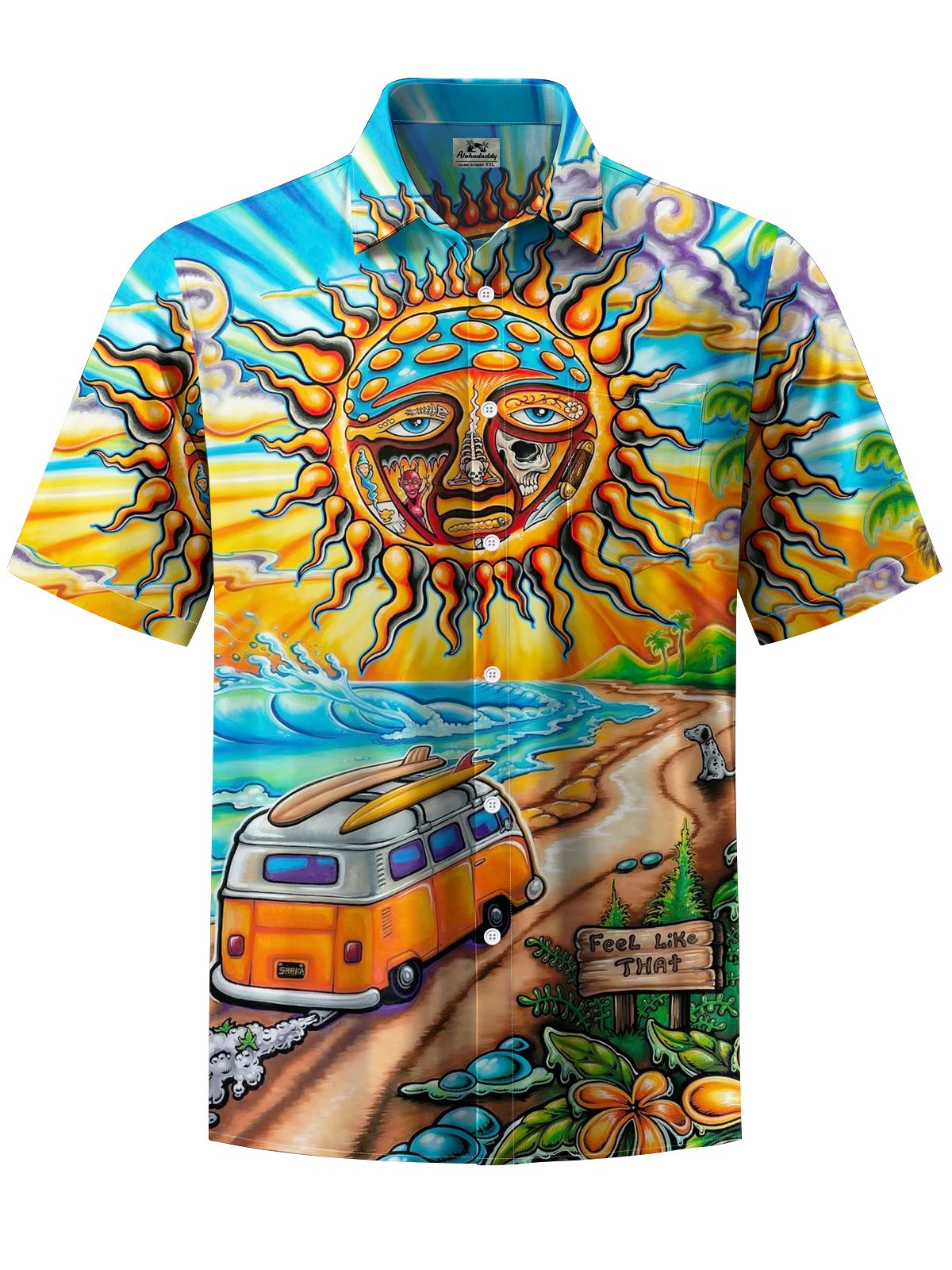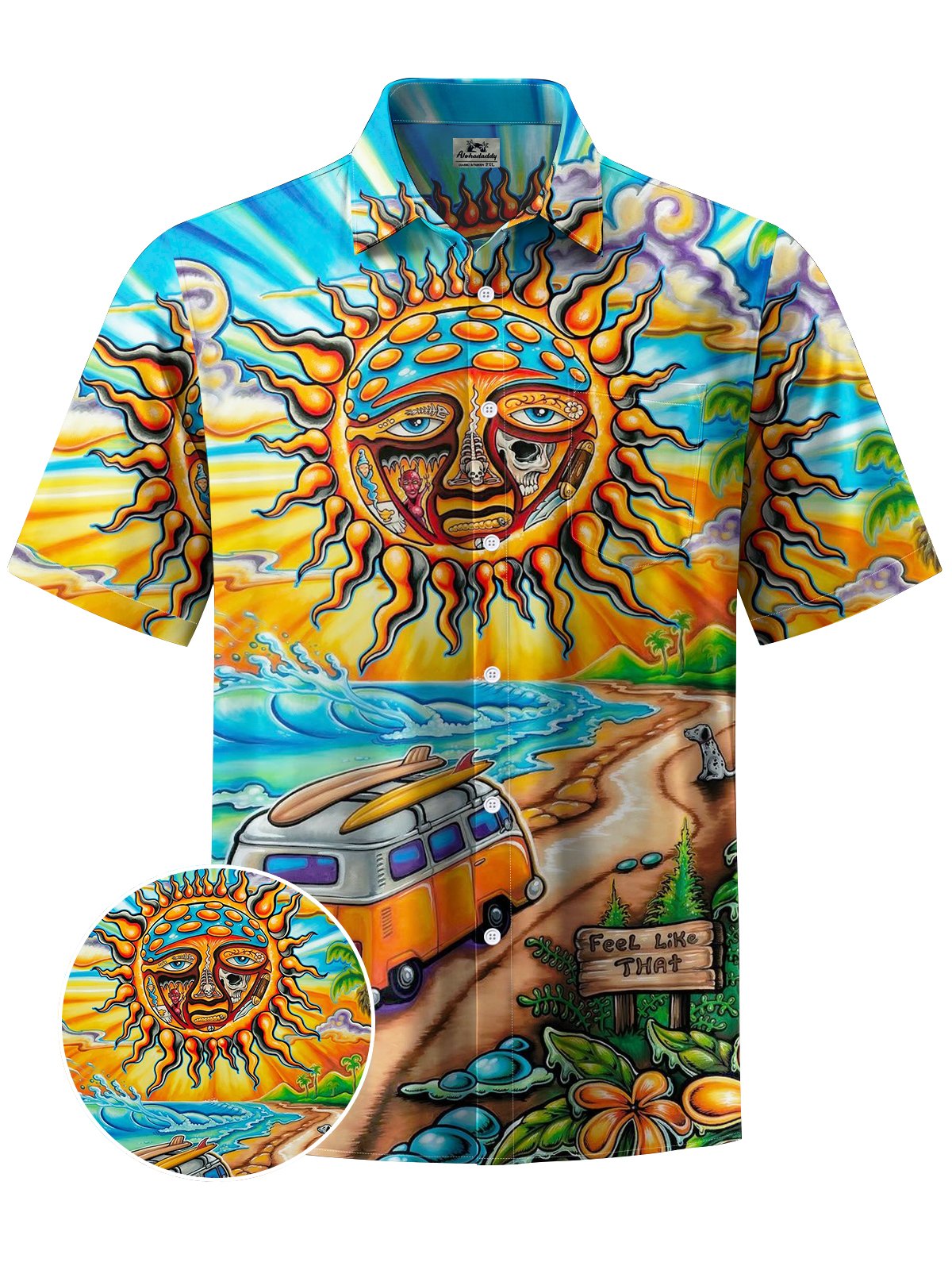Alohadaddy® Casual Graffiti Sun Vacation Print Art Chest Pocket Men's Short Sleeve Shirt Big & Tall