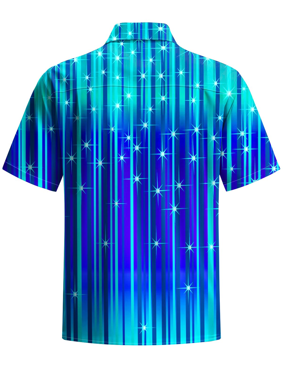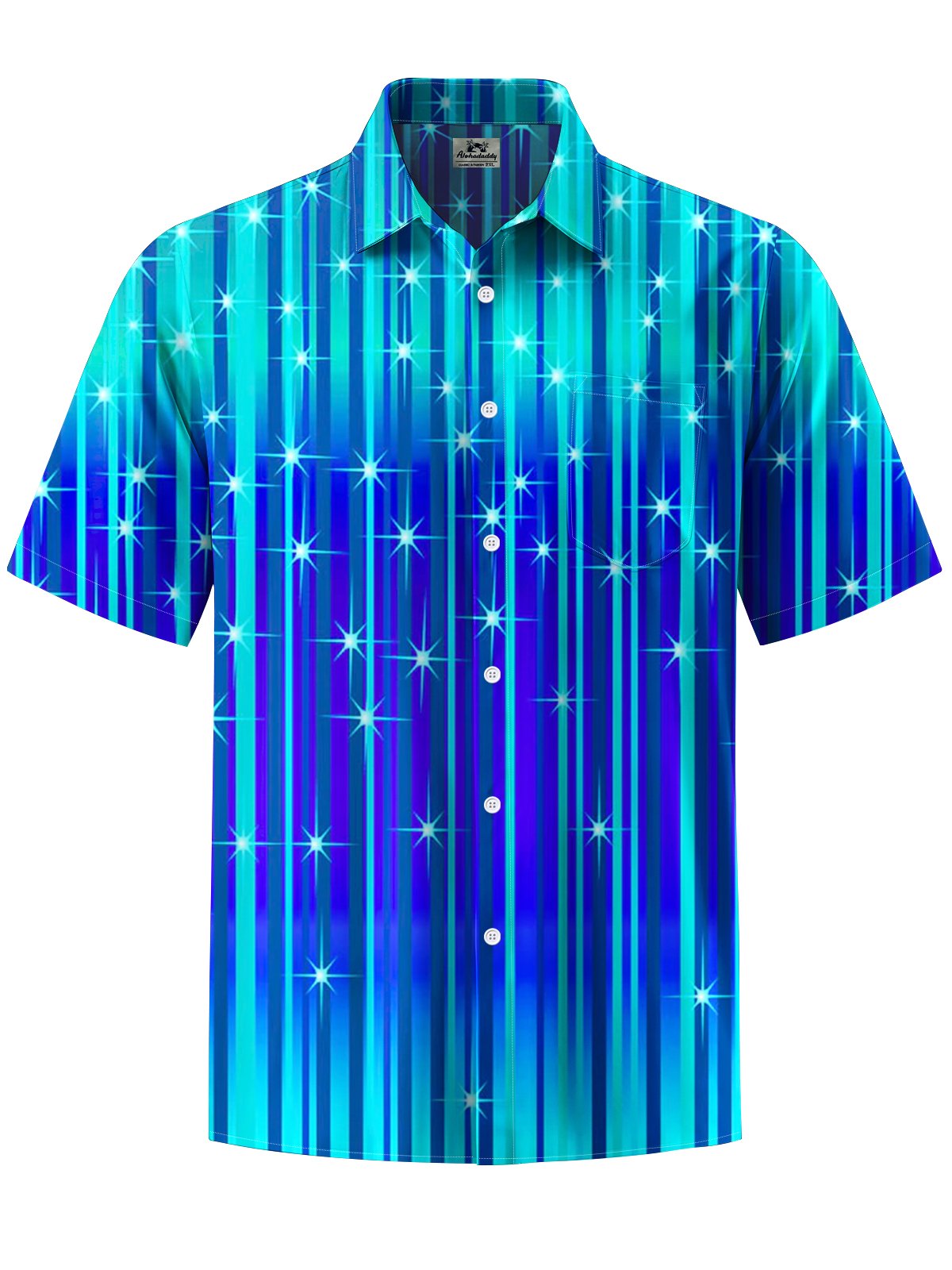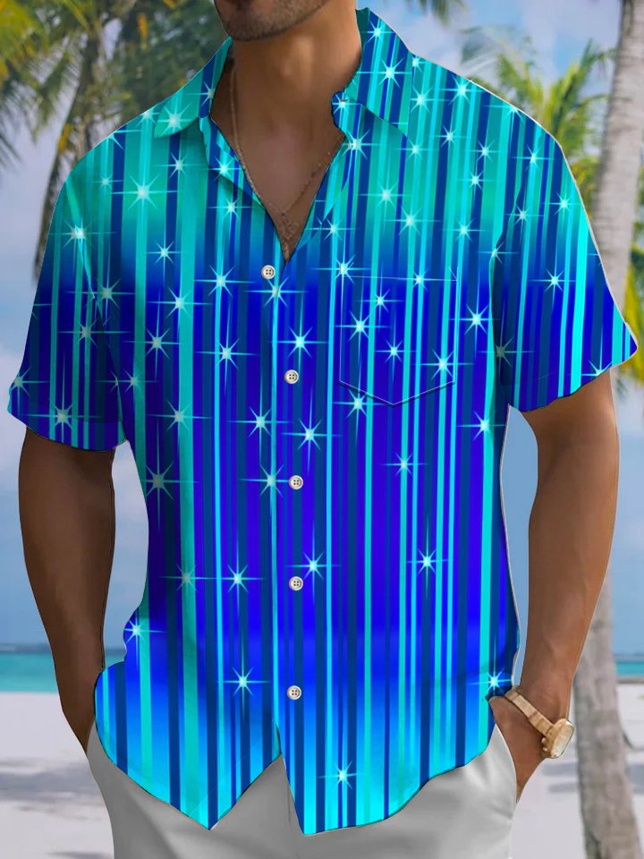 Alohadaddy® Casual Stripe Abstract Art Print Chest Pocket Men's Stretch Short Sleeve Shirt Big & Tall