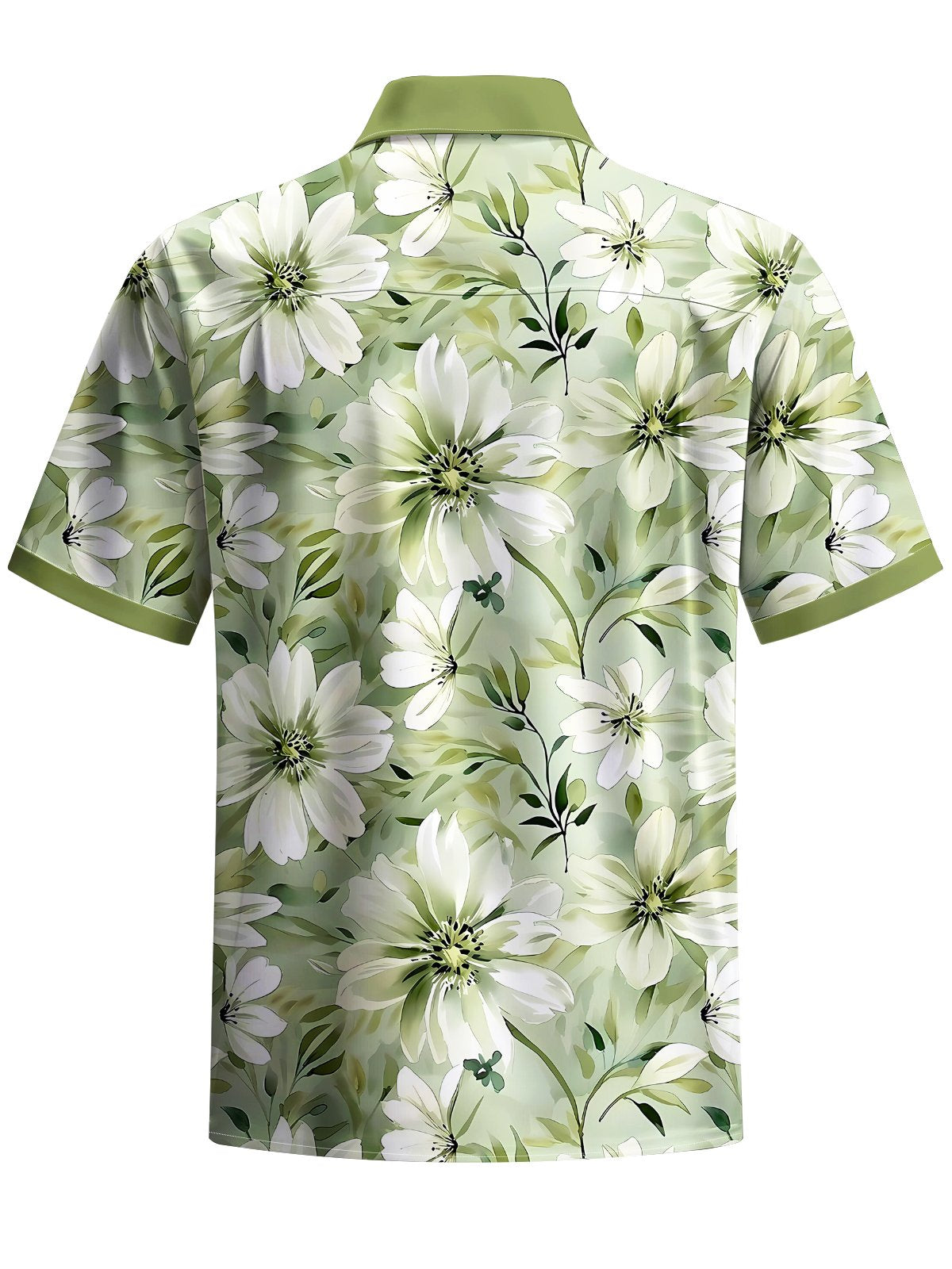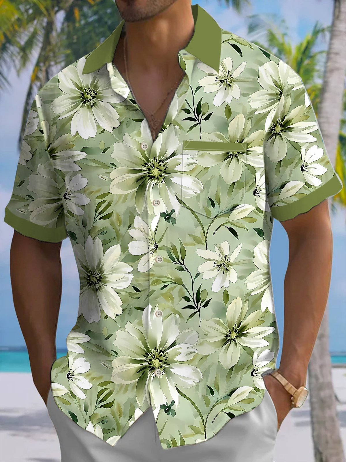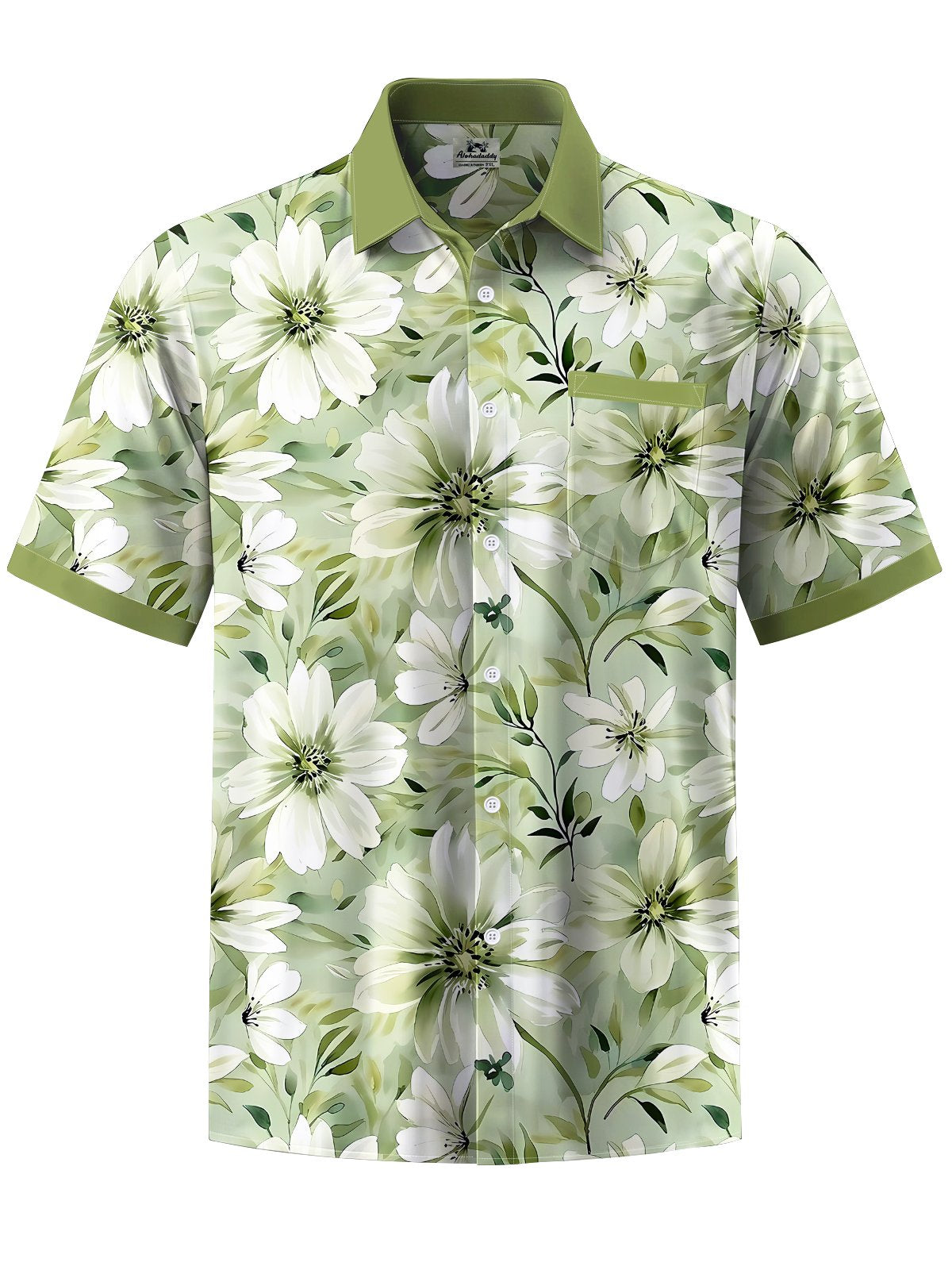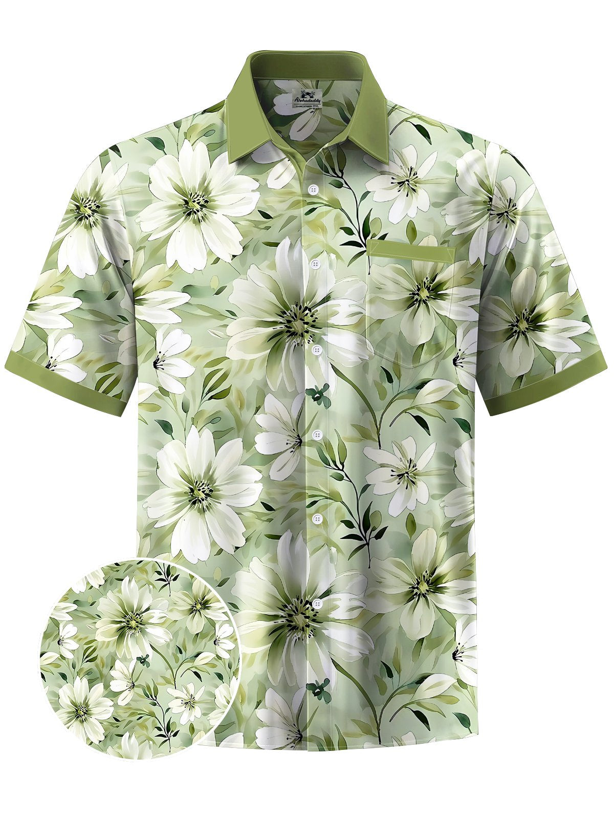 Alohadaddy® Hawaiian Floral Contrast Art Print Chest Pocket Men's Short Sleeve Shirt Big & Tall