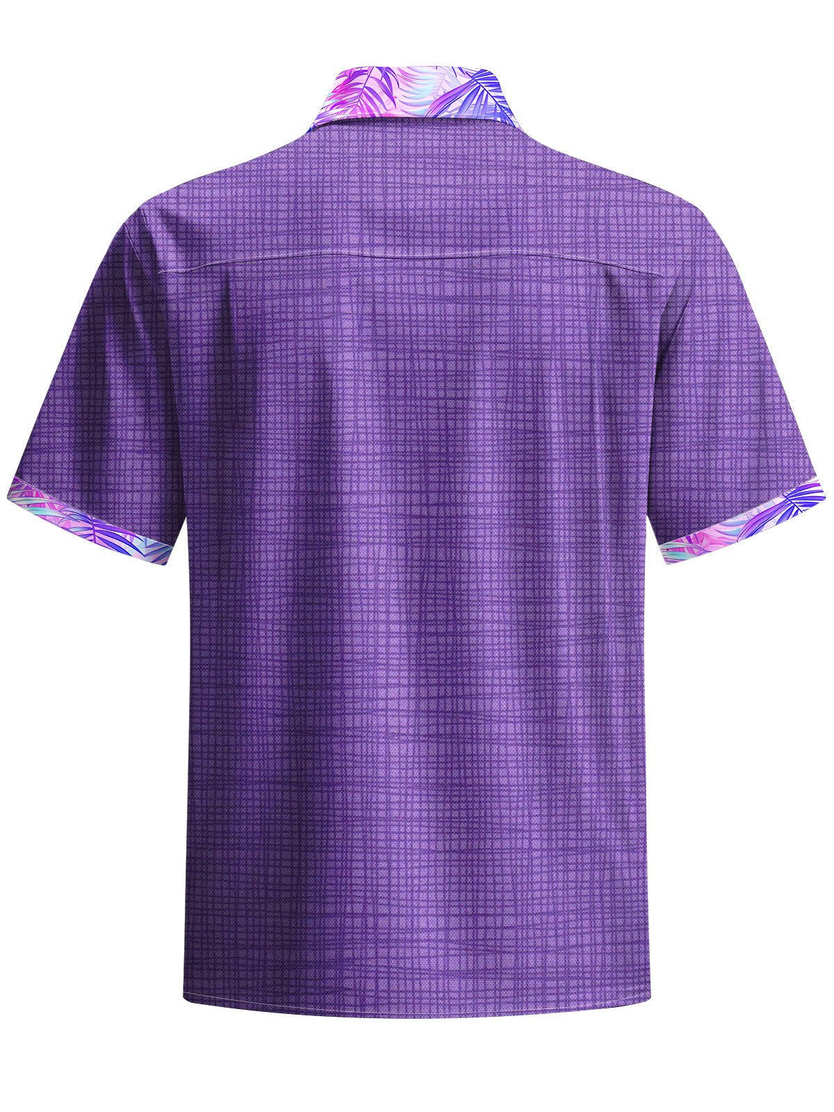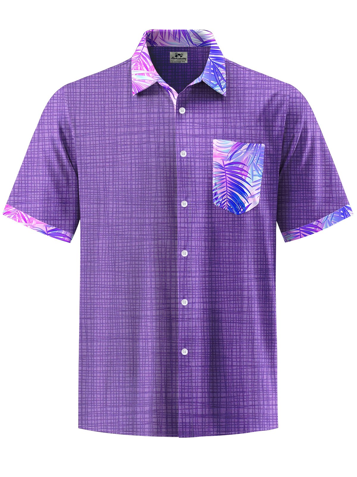 Alohadaddy® Hawaiian Palm Leaf Contrast Art Print Chest Pocket Men's Short Sleeve Shirt Big & Tall