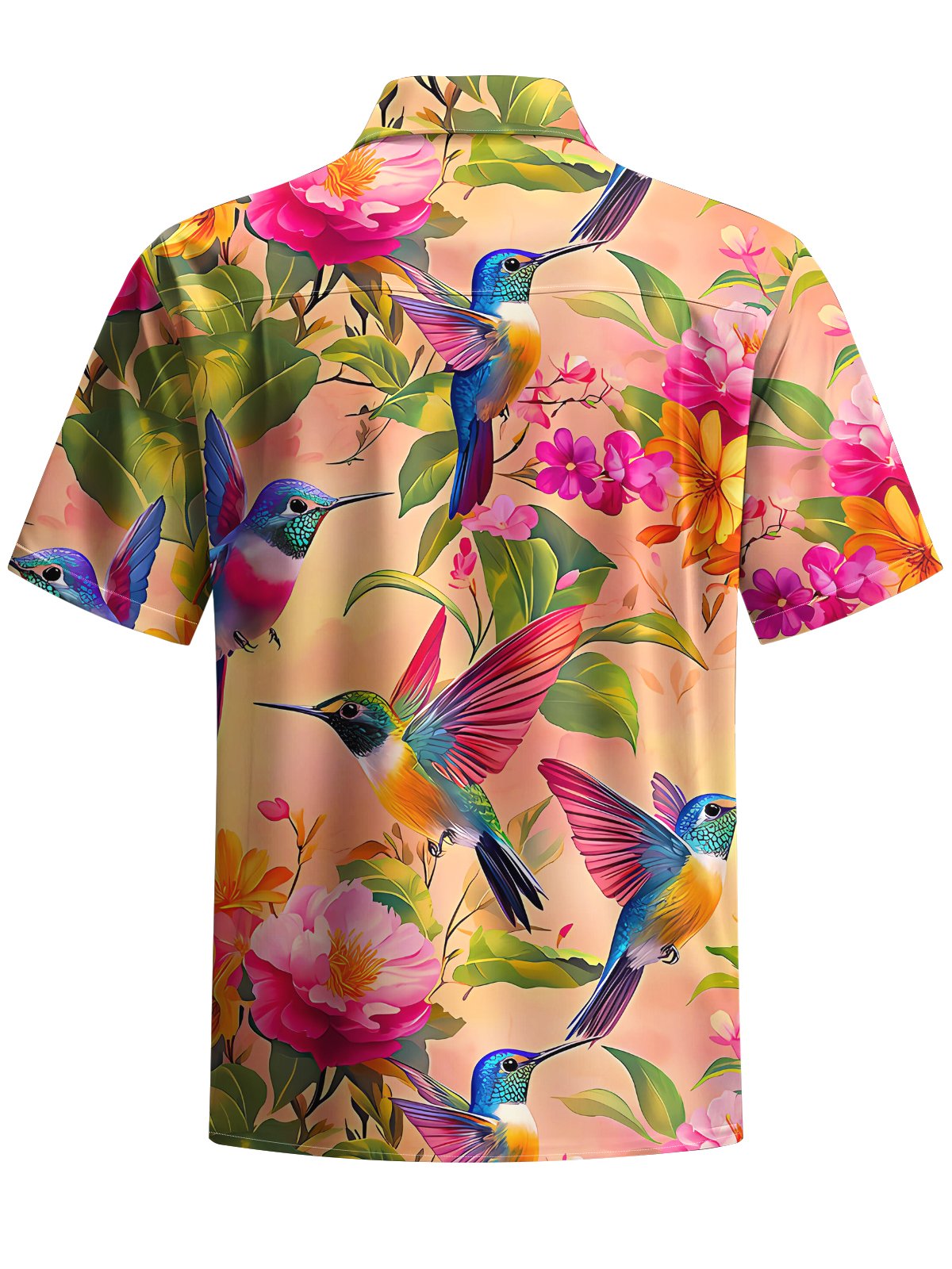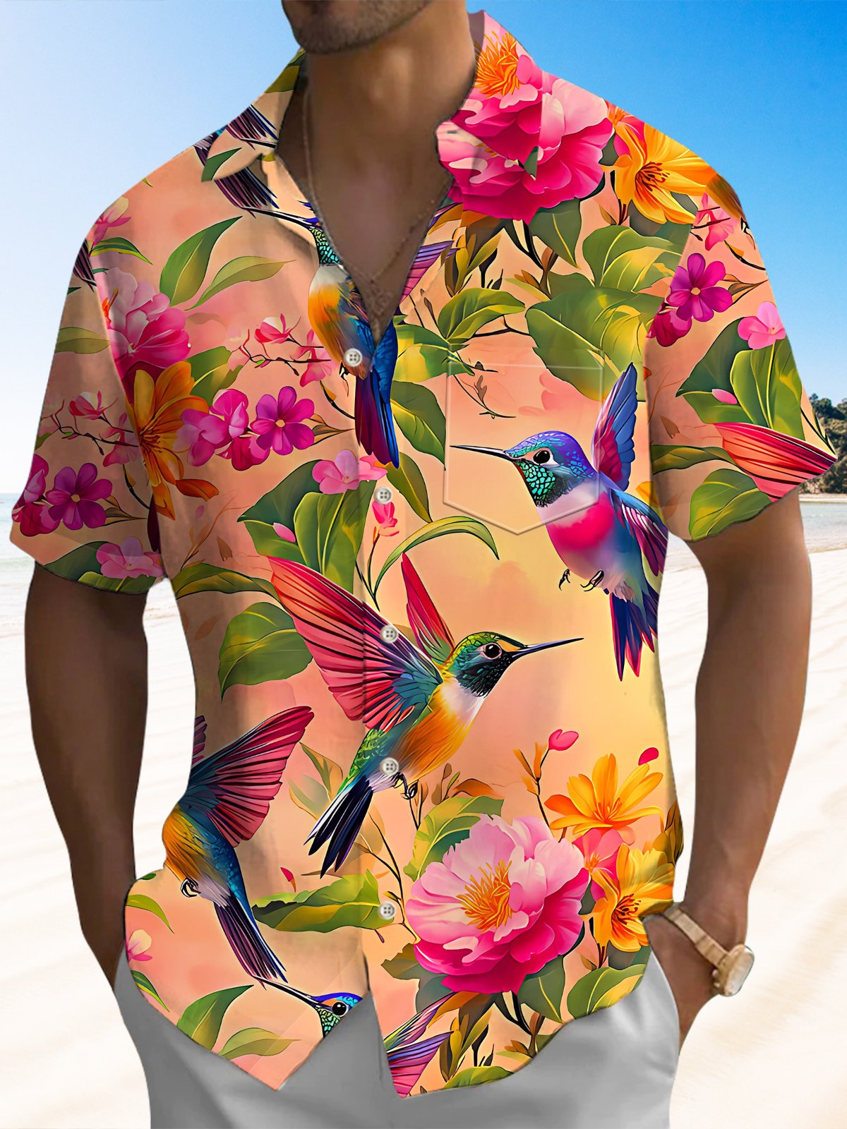 Alohadaddy® Hawaiian Bird Art Print Chest Pocket Men's Short Sleeve Shirt Big & Tall