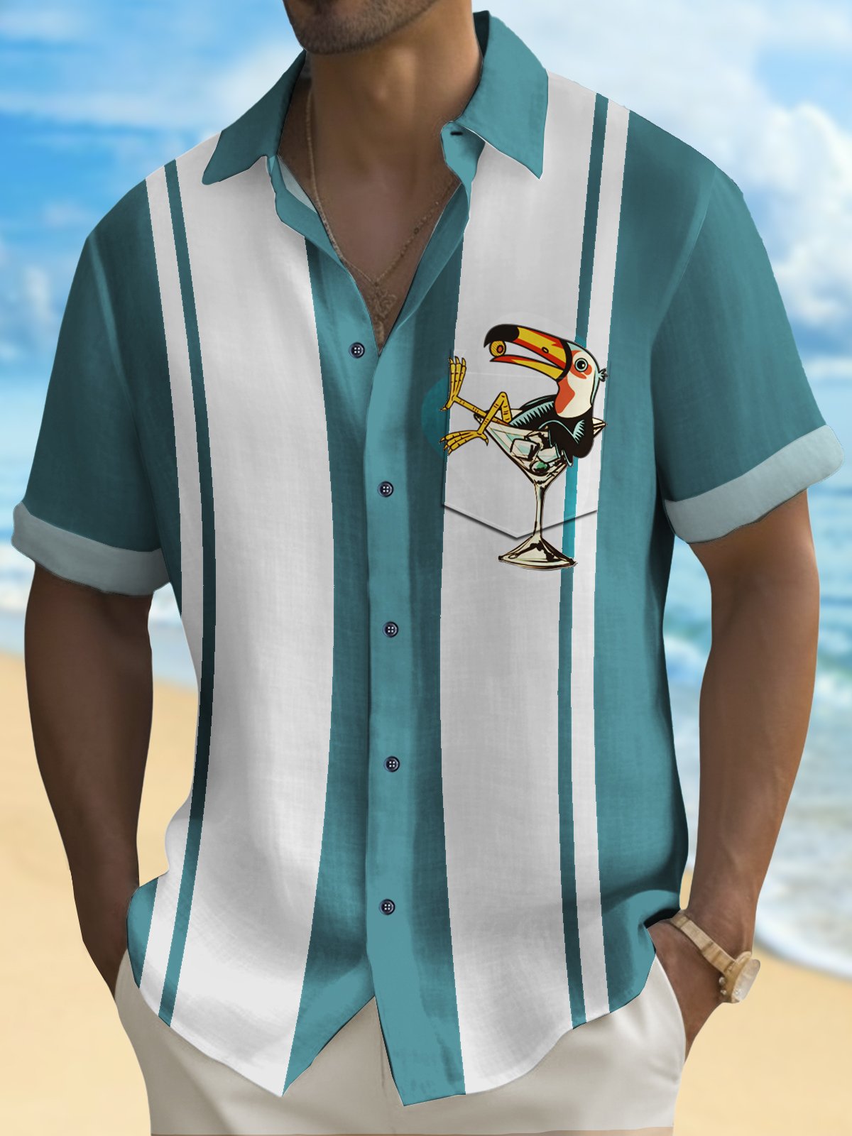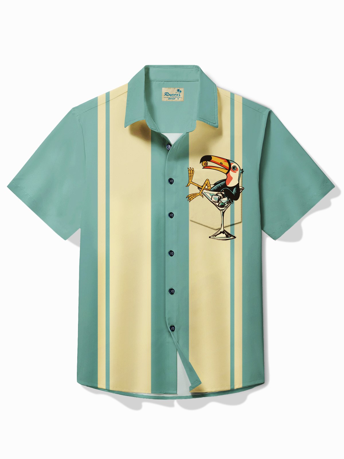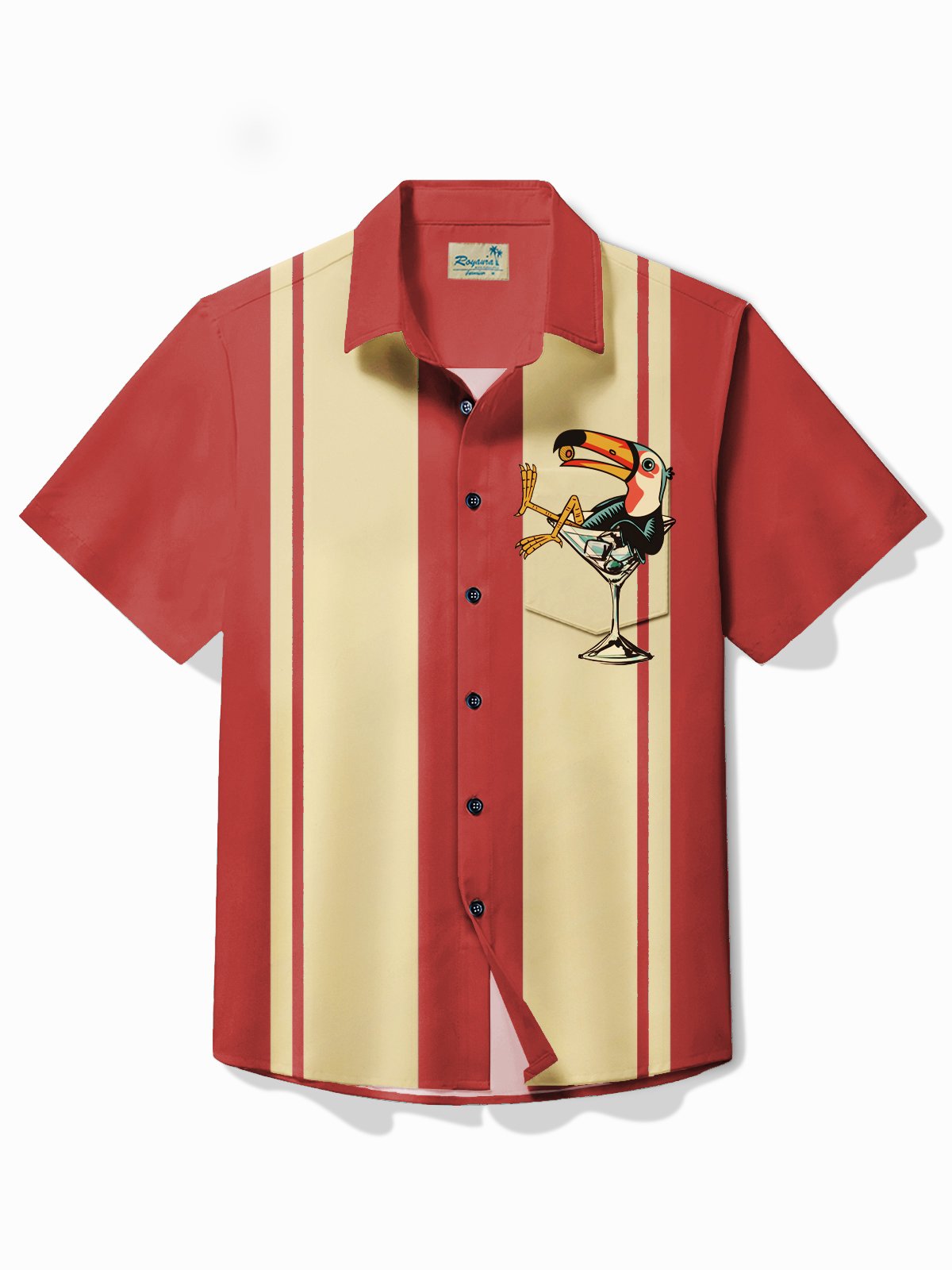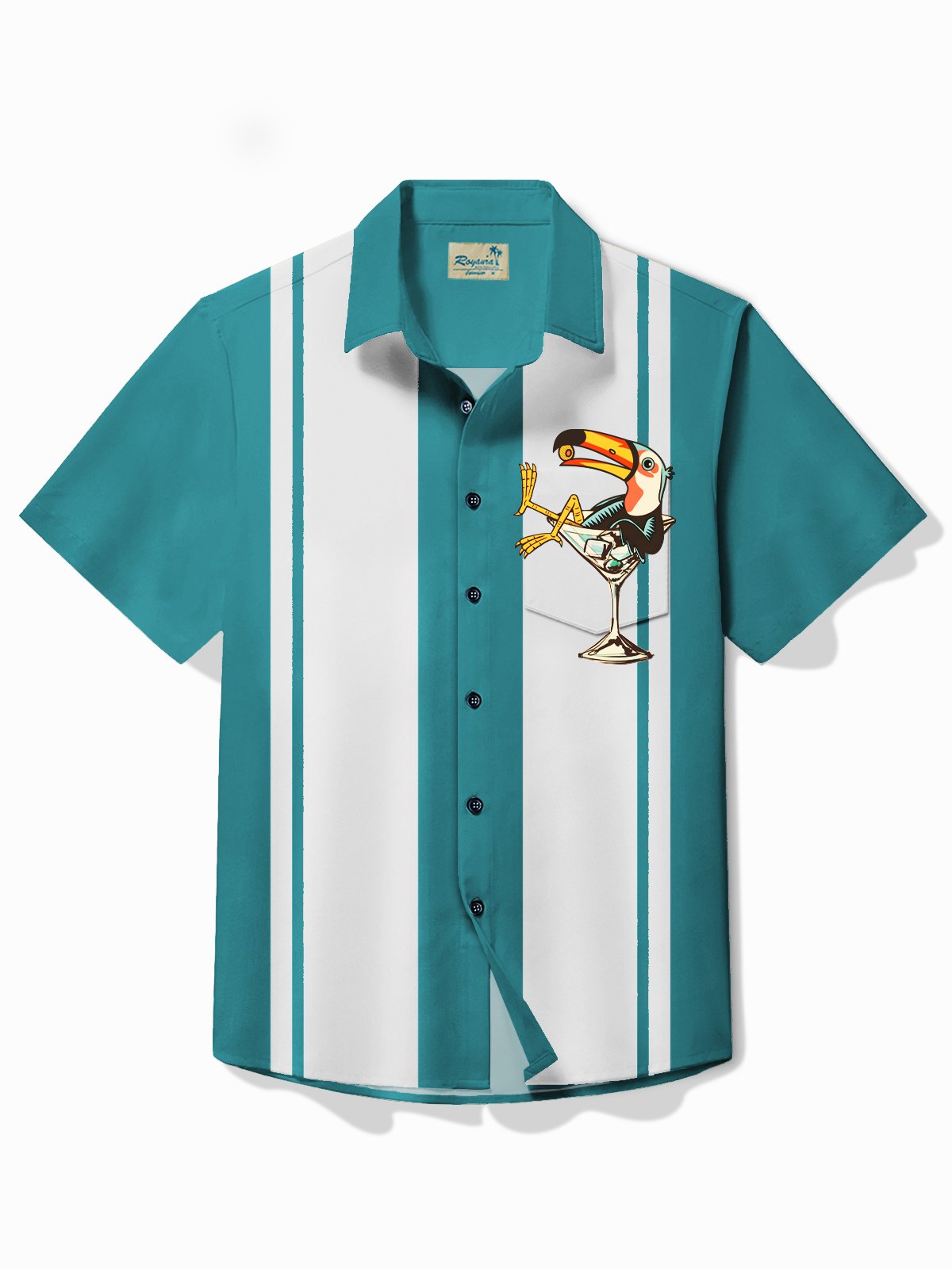 Alohadaddy Retro Bowling Cartoon Bird Print Hawaiian Shirt Plus Size Holiday Shirt