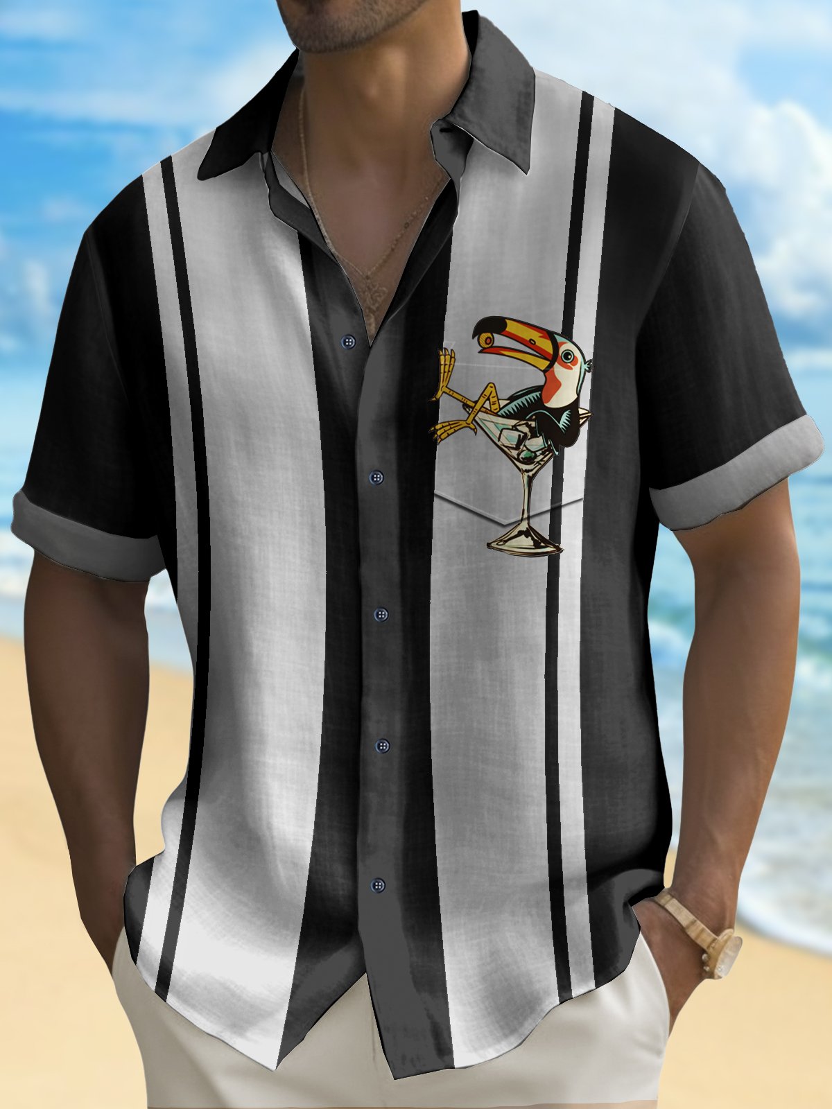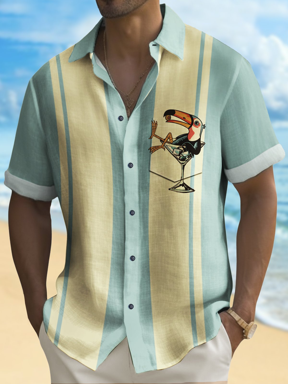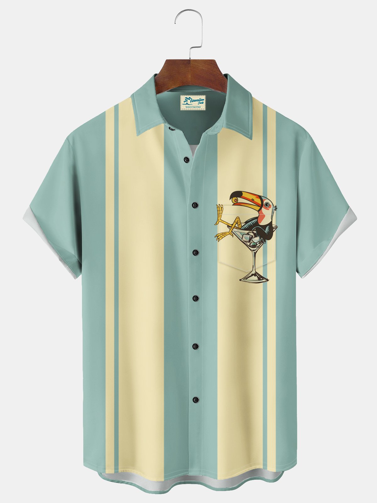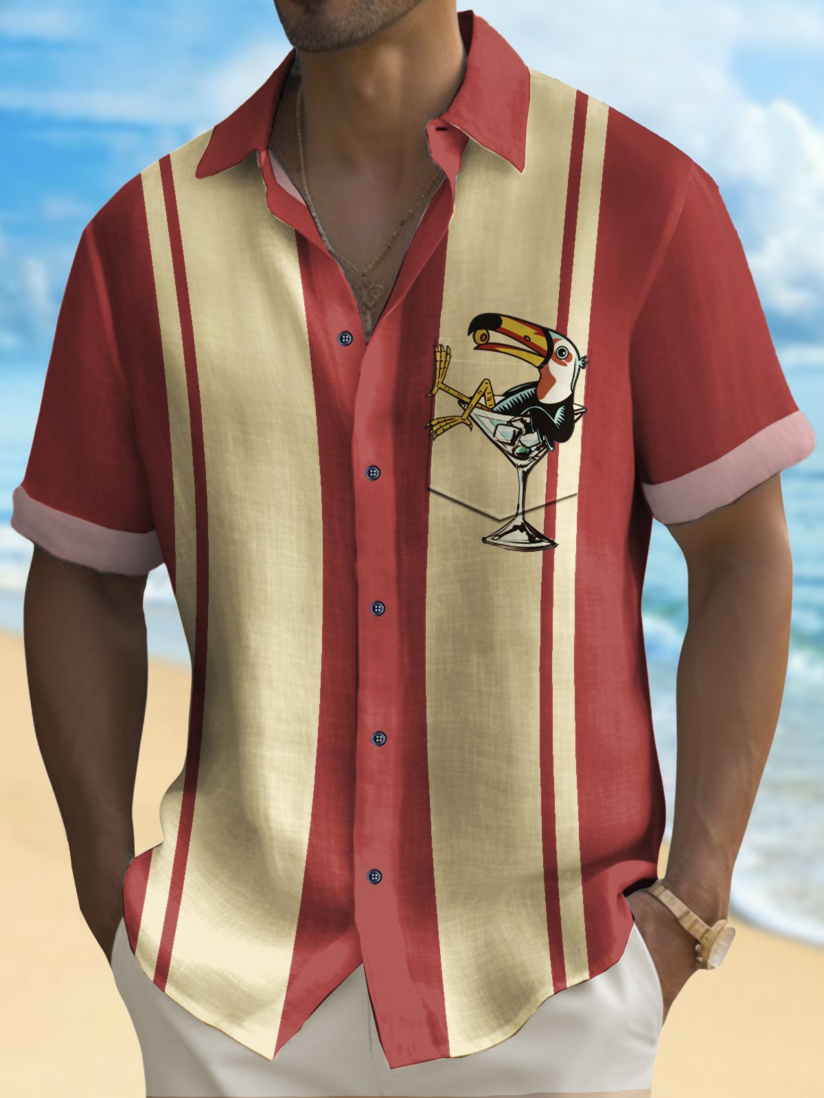 Alohadaddy Retro Bowling Cartoon Bird Print Hawaiian Shirt Plus Size Holiday Shirt
