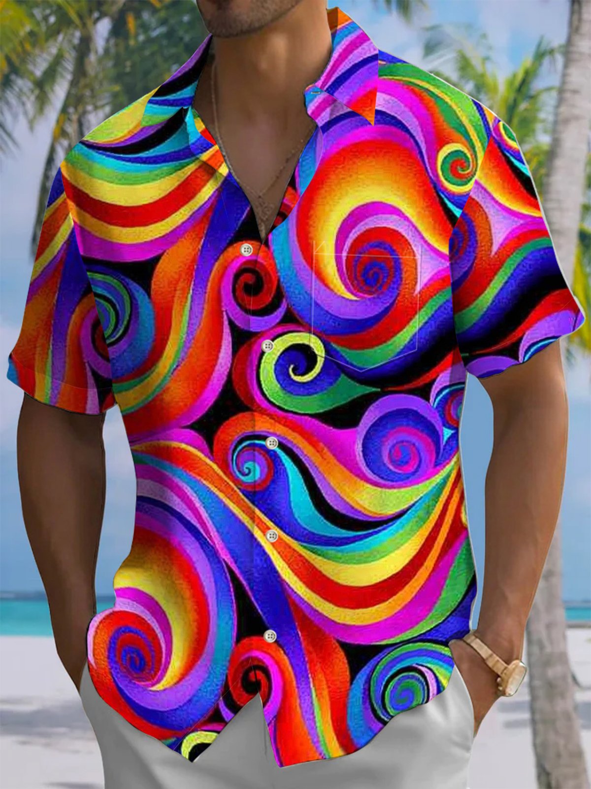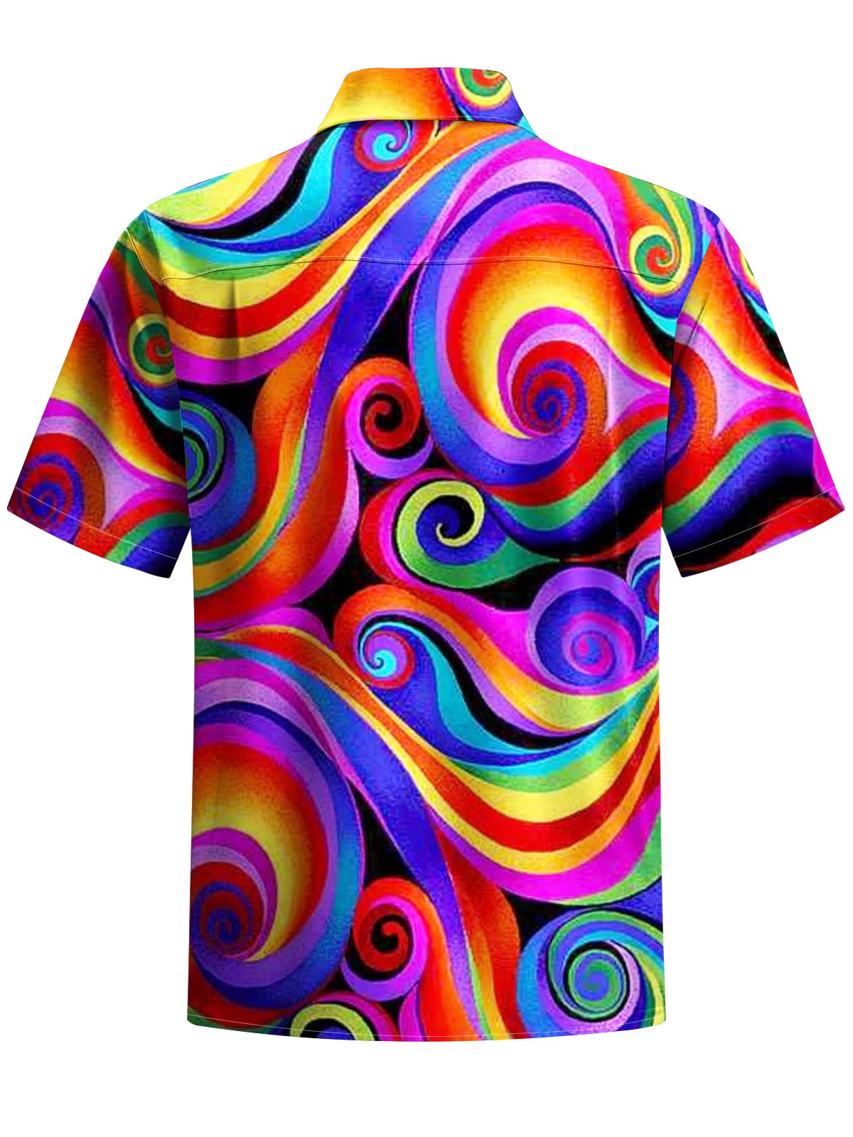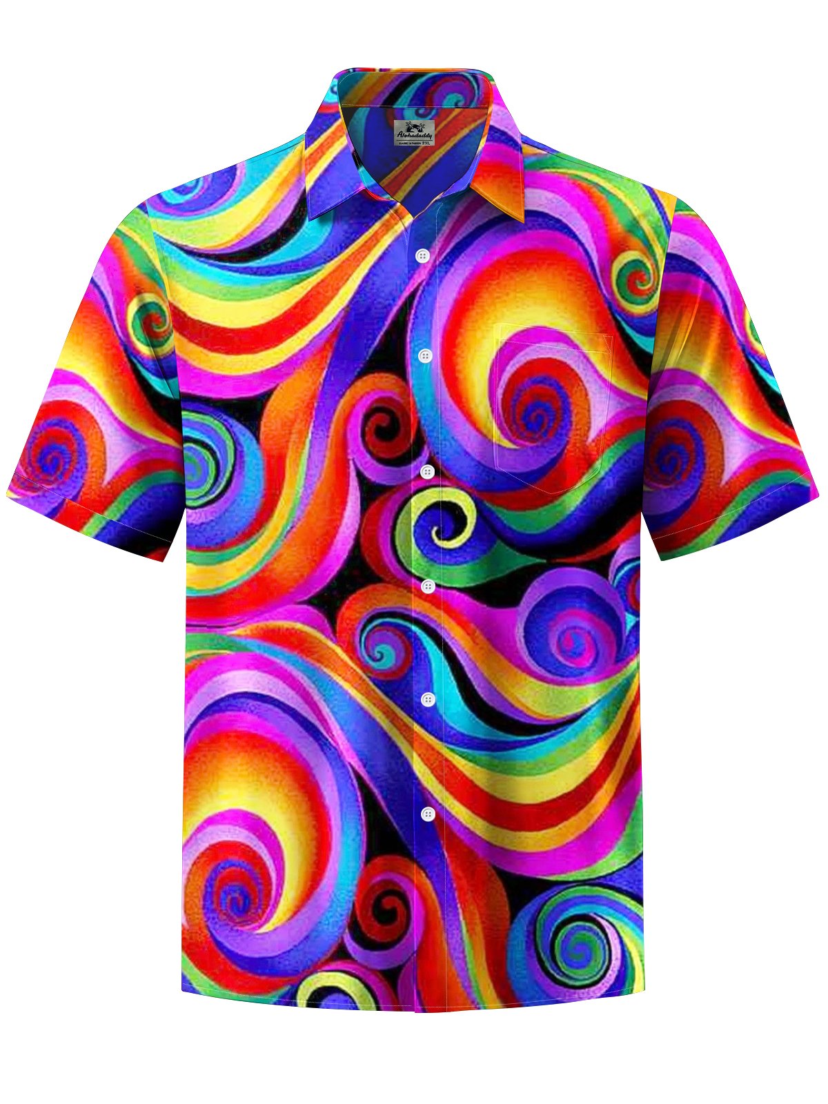 Alohadaddy® Casual Abstract Art Print Chest Pocket Men Short Sleeve Shirt Big & Tall