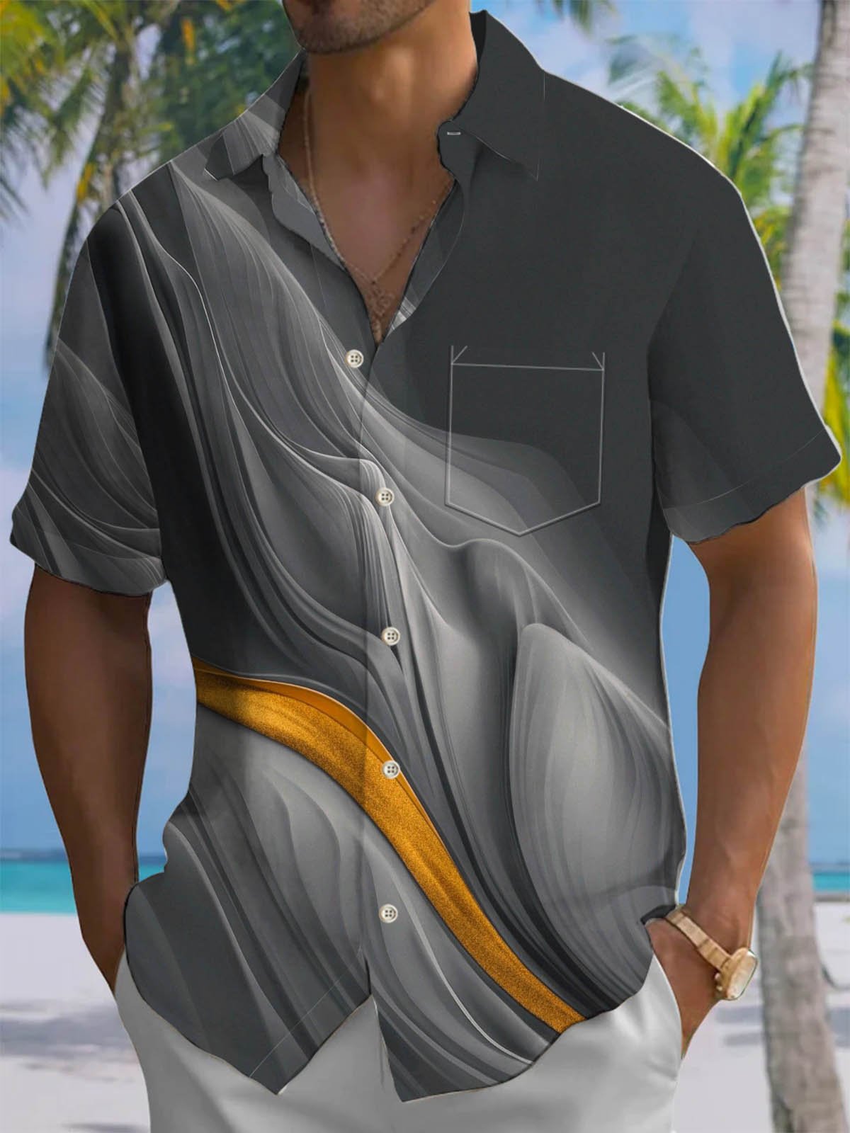 Alohadaddy® Casual Abstract Art Print Pocket Men's Short Sleeve Shirt Big & Tall