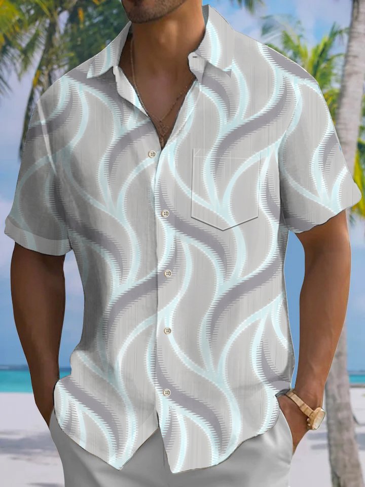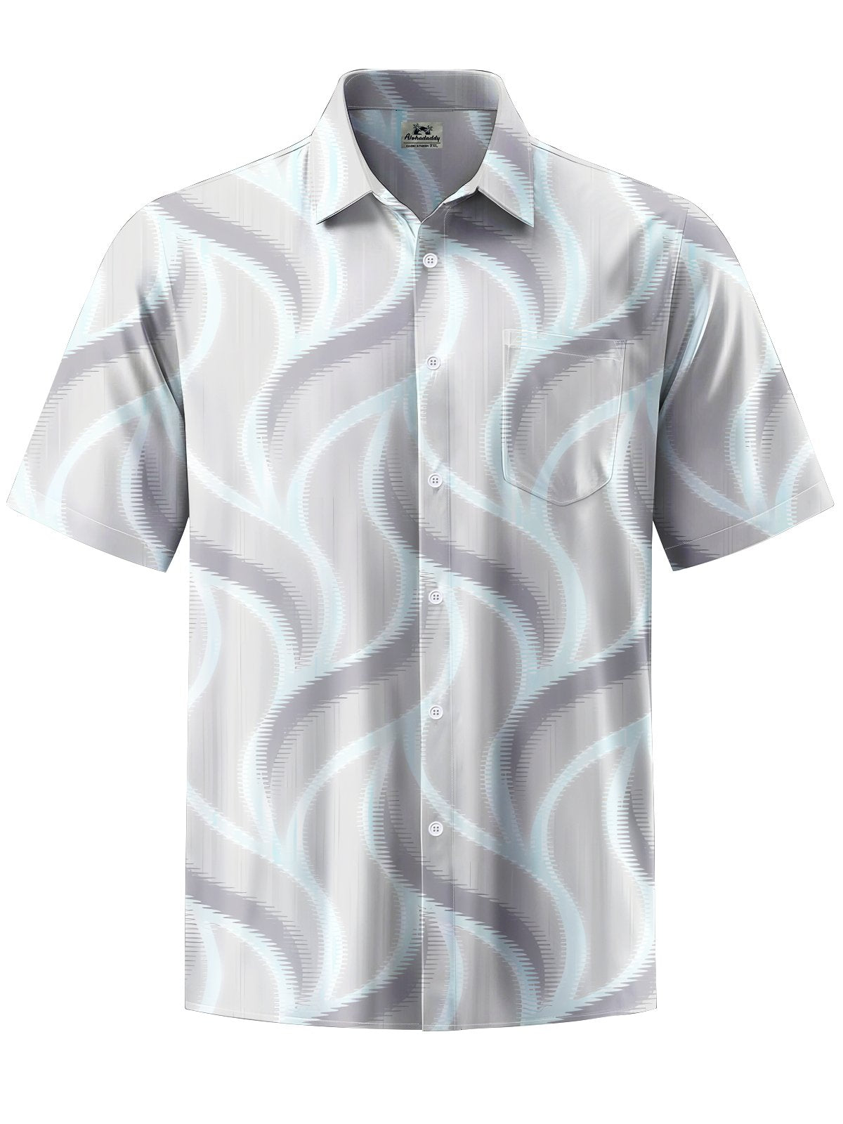 Alohadaddy® Casual Abstract Geometric Art Print Chest Pocket Men Short Sleeve Shirt Big & Tall