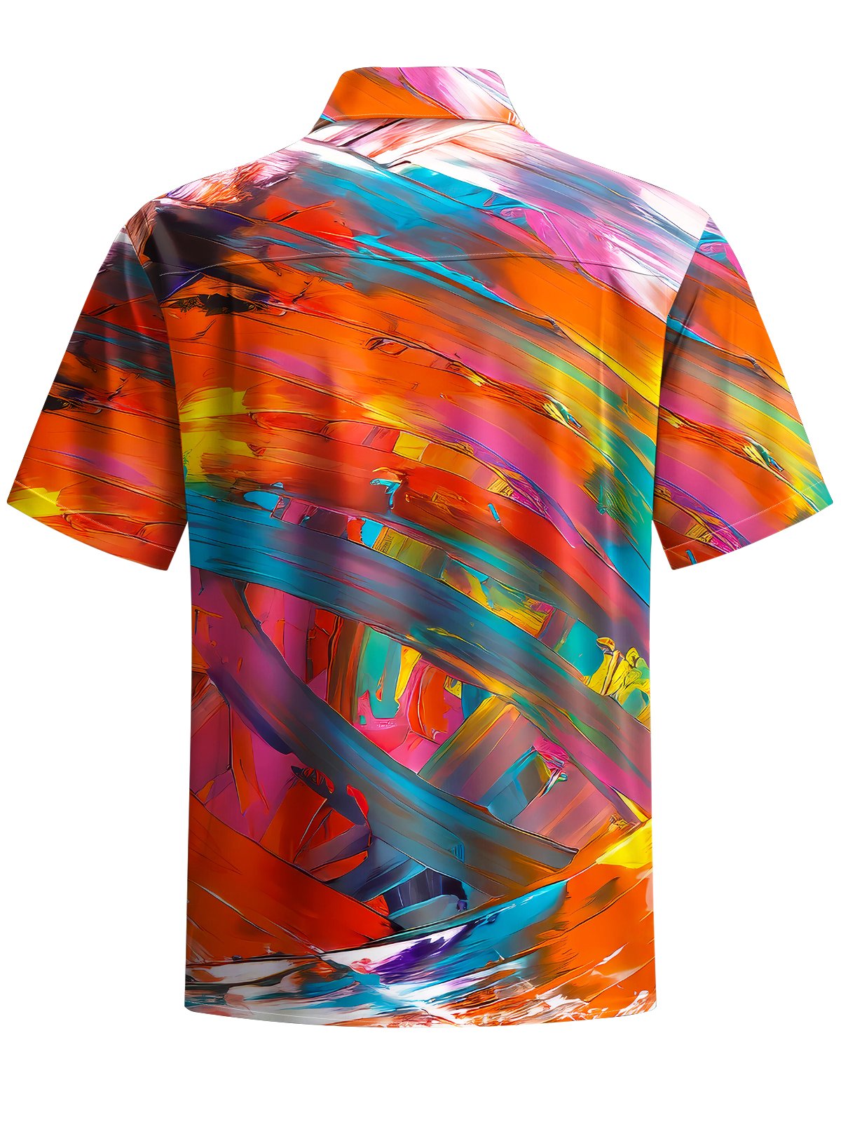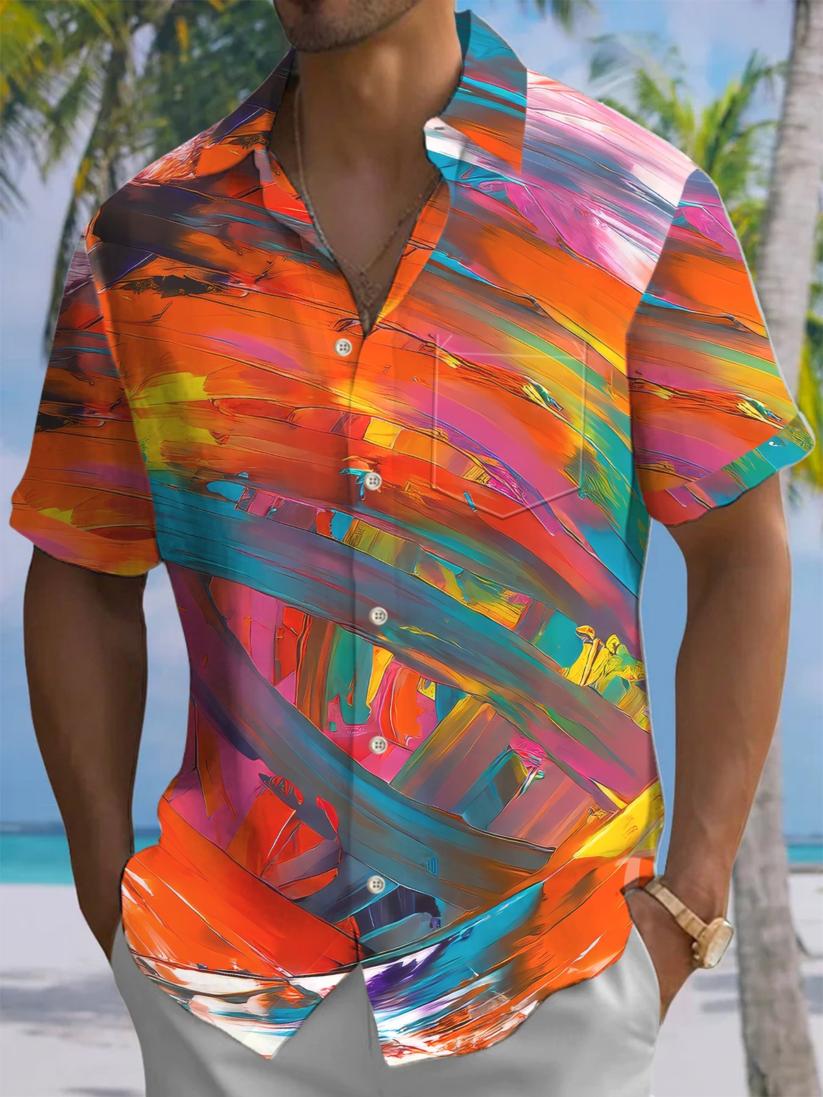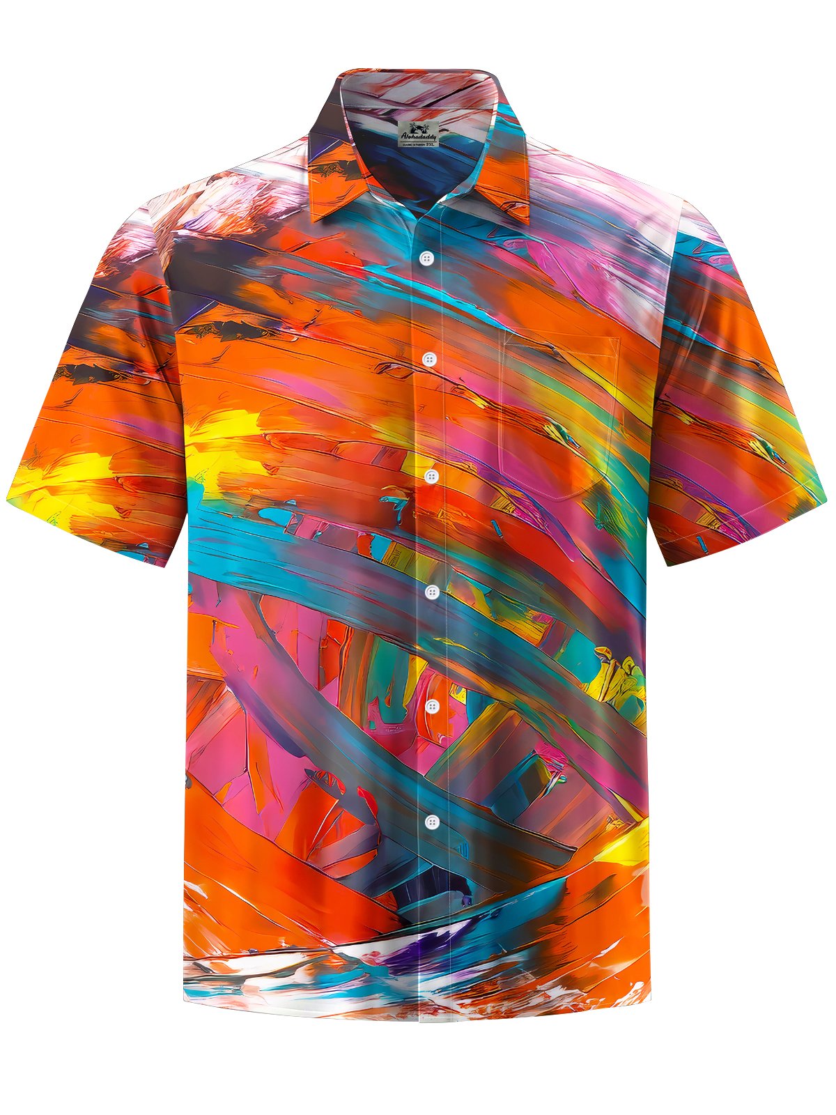 Alohadaddy® Casual Abstract Texture Art Print Chest Pocket Men Short Sleeve Shirt Big & Tall