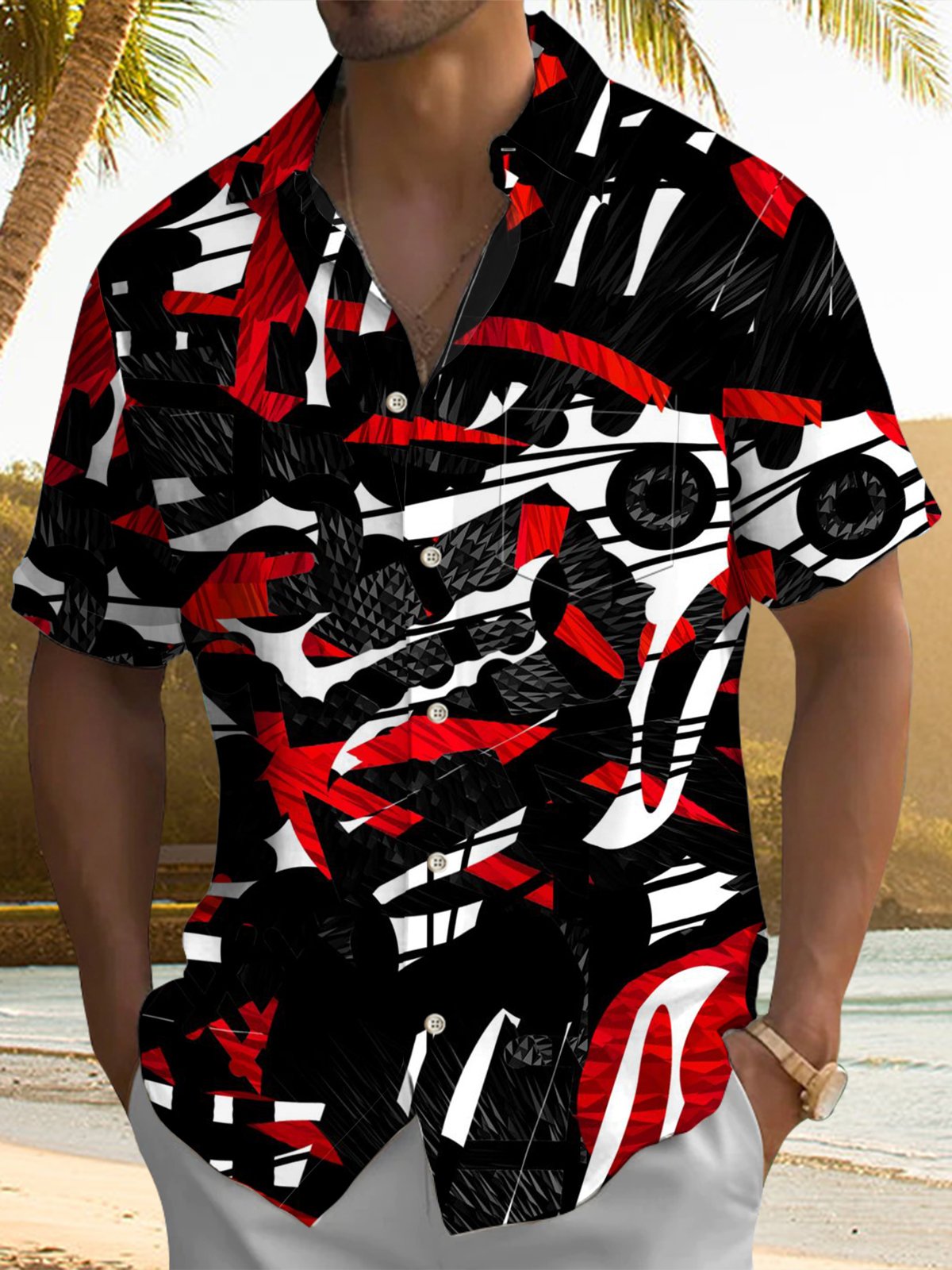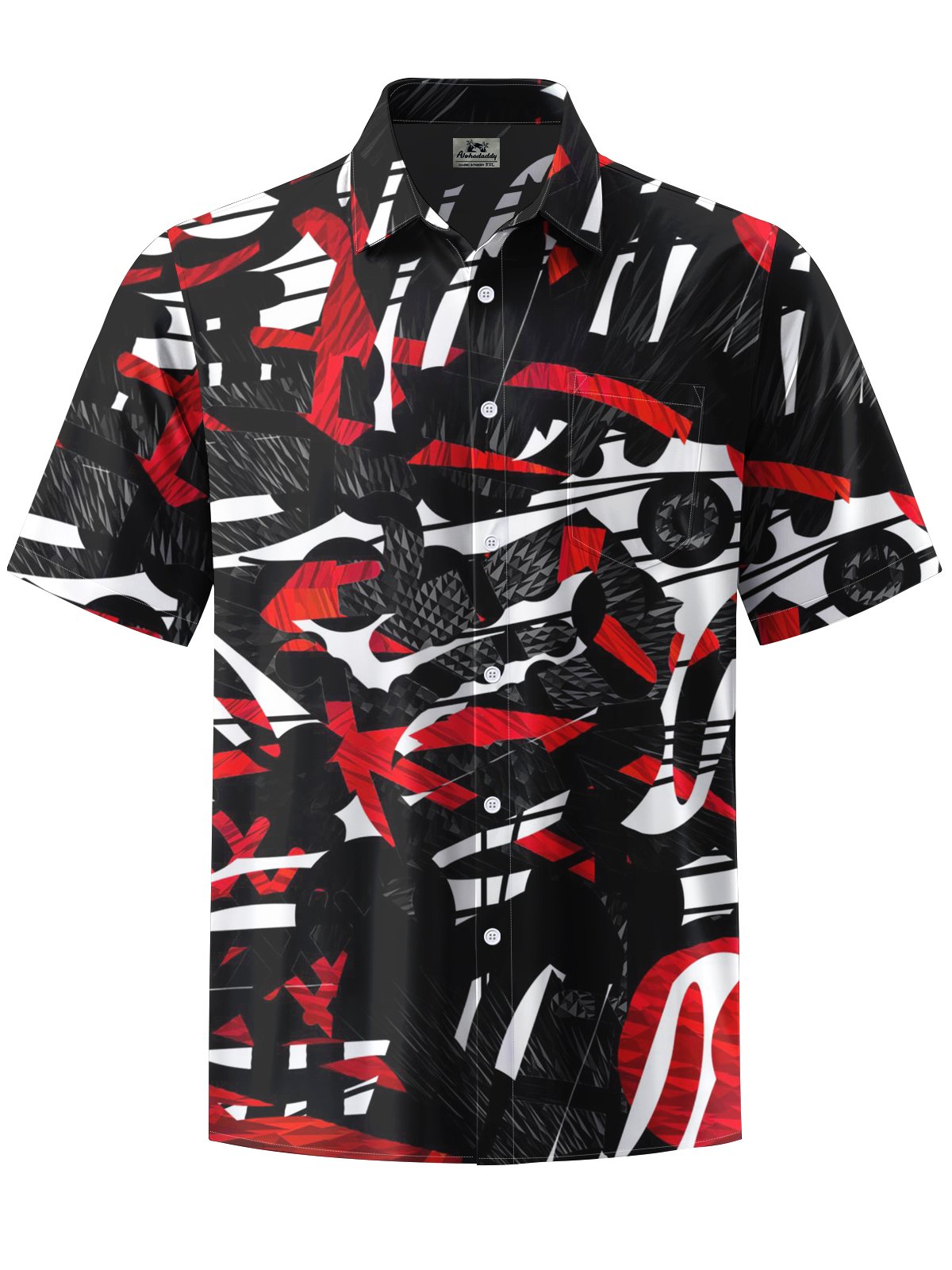 Alohadaddy® Casual Abstract Texture Print Art Men's Short Sleeve Stretch Shirt Big & Tall