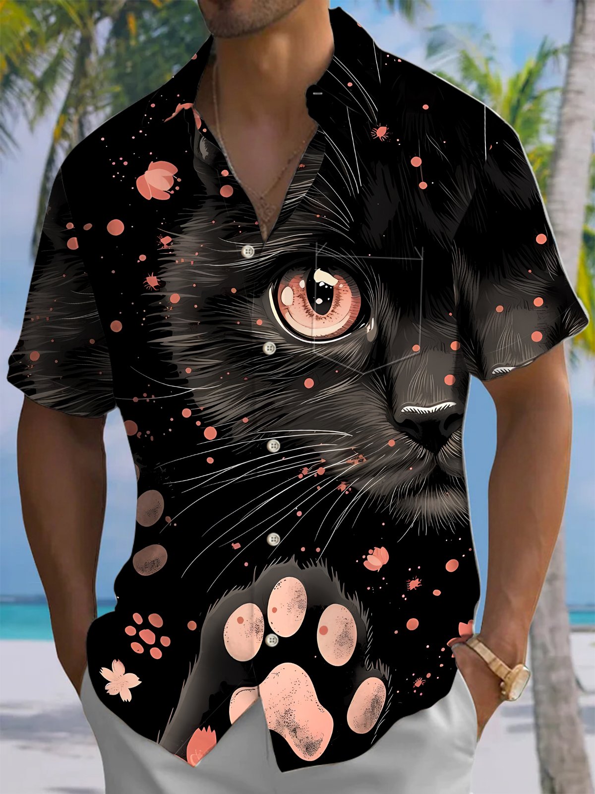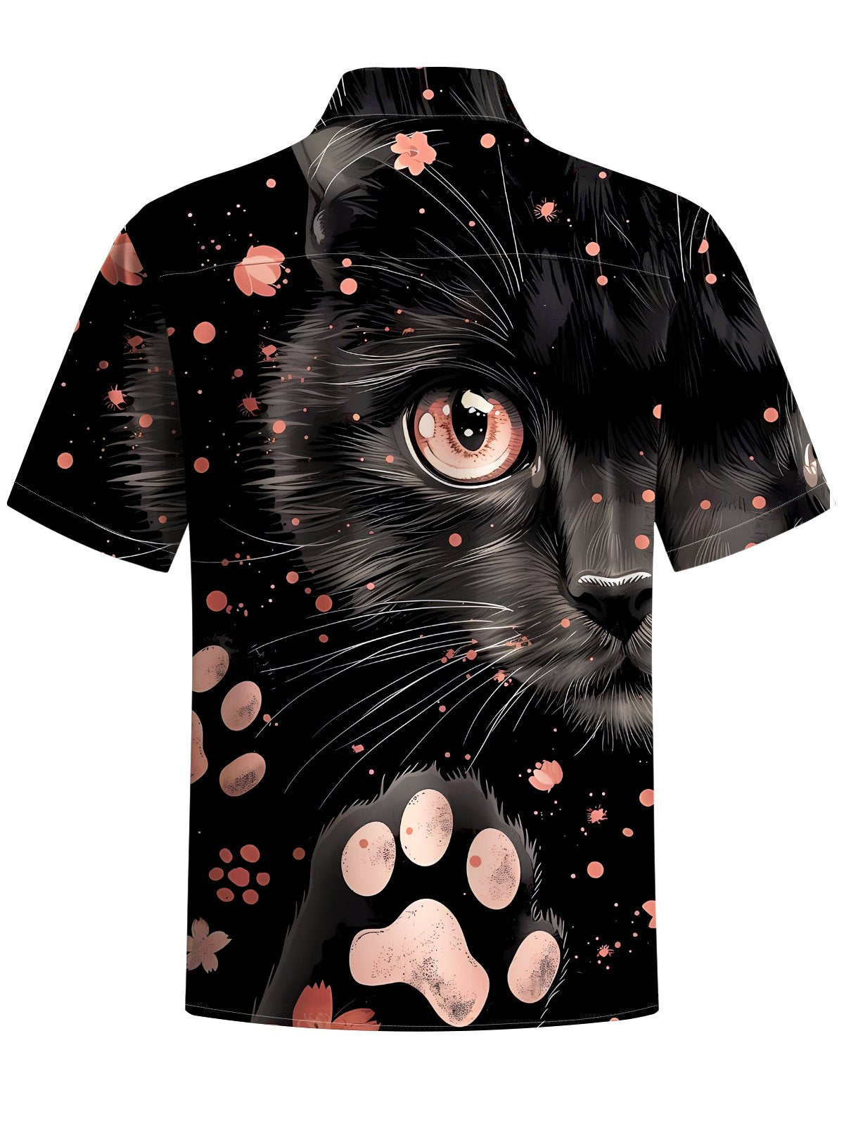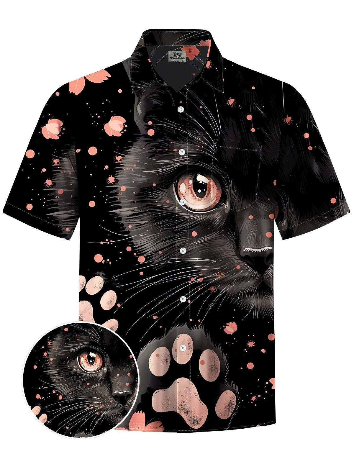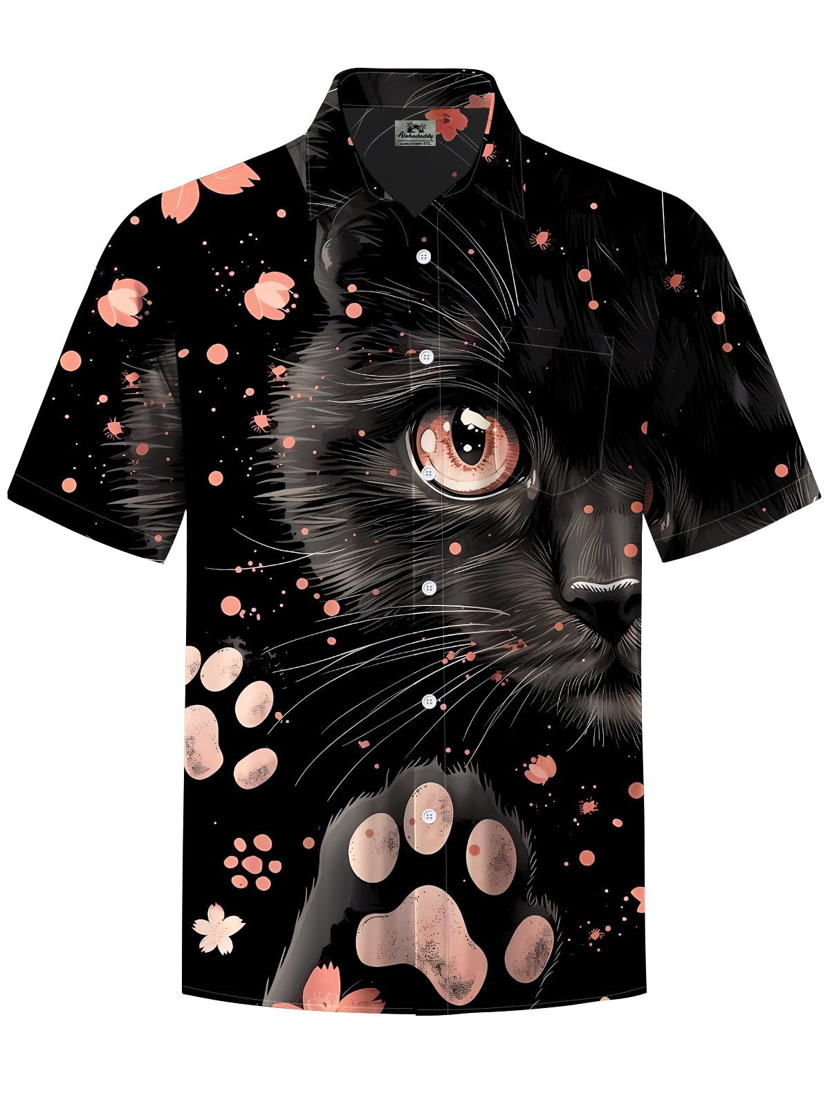 Alohadaddy® Casual Cat Print Art Chest Pocket Men's Short Sleeve Shirt Big & Tall