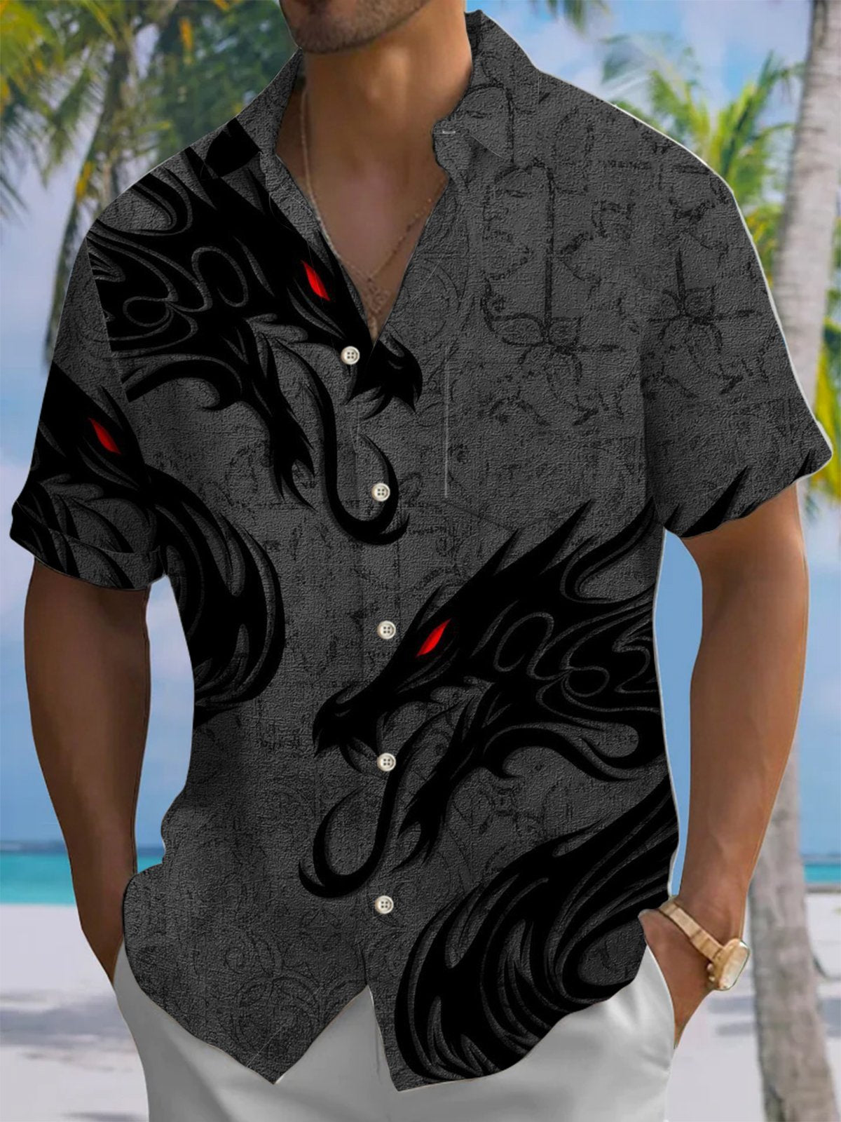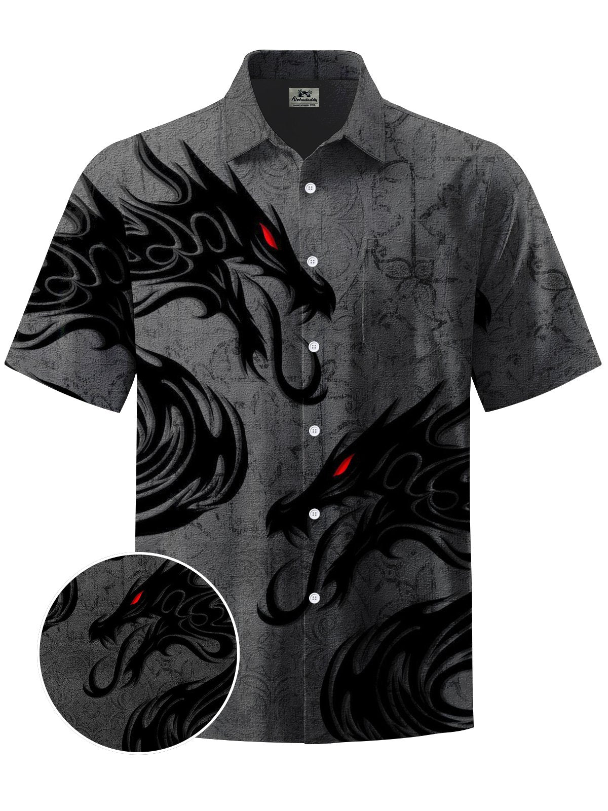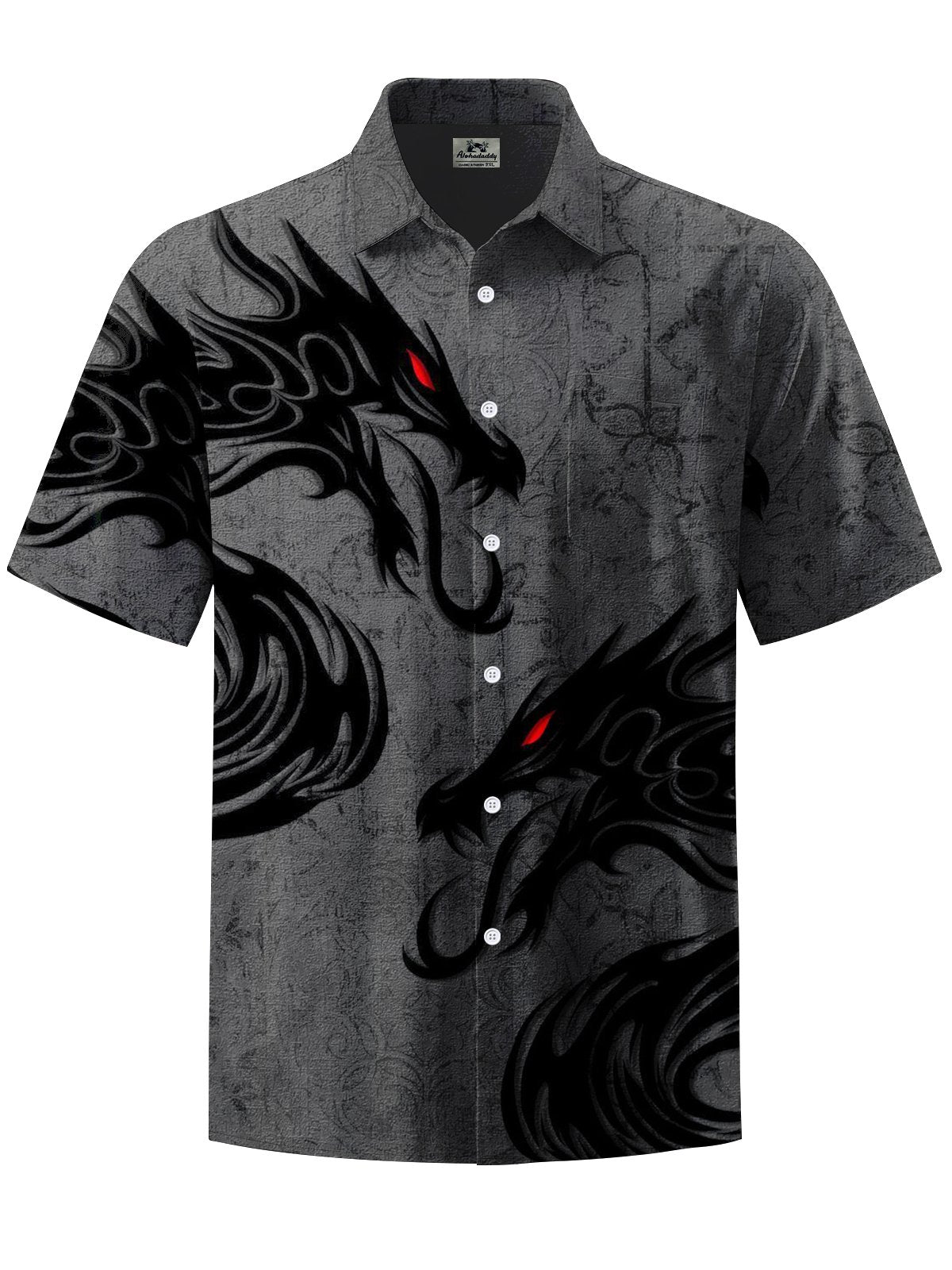 Alohadaddy® Casual Dragon Art Print Chest Pocket Men's Short Sleeve Shirt Big & Tall