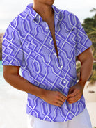 Alohadaddy® Casual Geometric Art Print Men's Short Sleeve Stretch Shirt Big & Tall