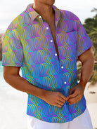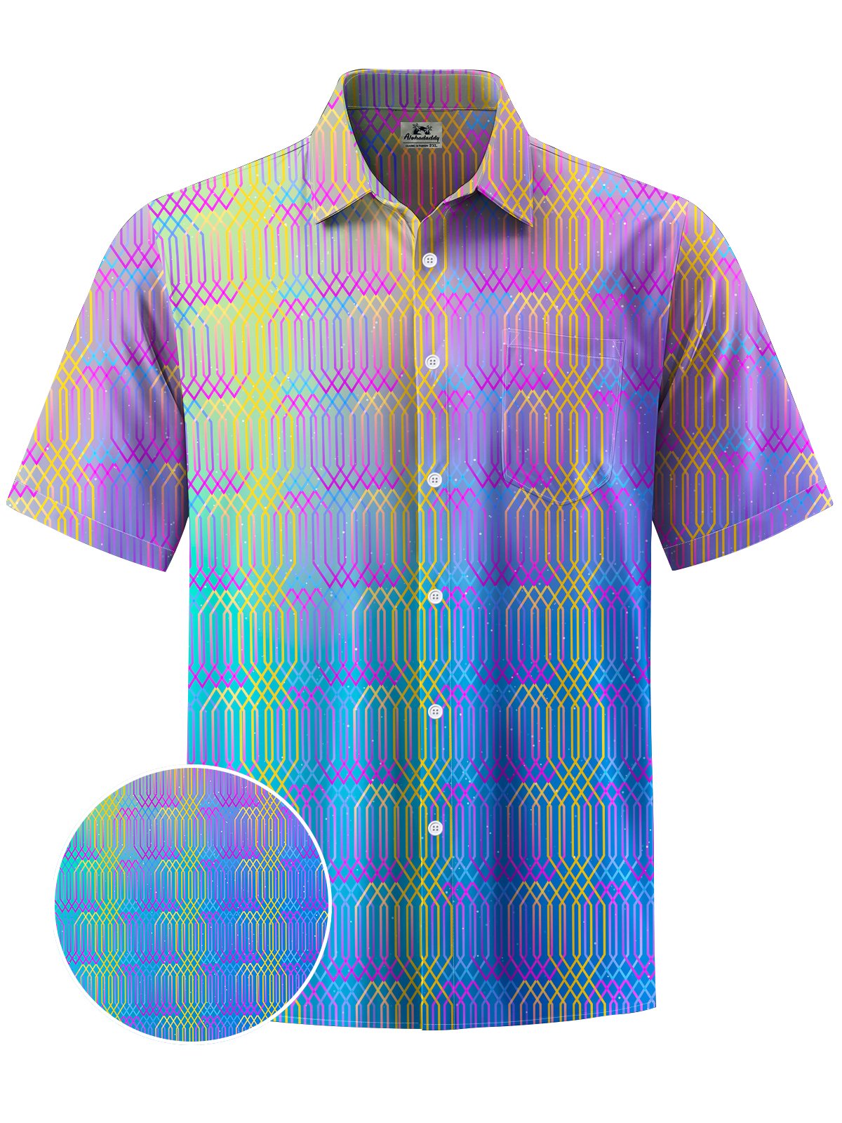 Alohadaddy® Casual Geometric Gradient Art Print Chest Pocket Mens Short Sleeve Shirt Big & Tall