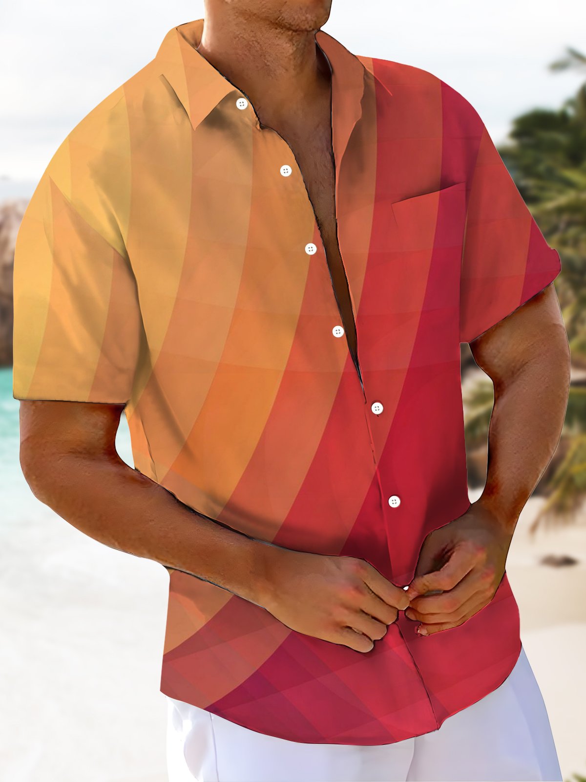 Alohadaddy® Casual Geometric Gradient Art Print Chest Pocket Mens Short Sleeve Shirt Big & Tall