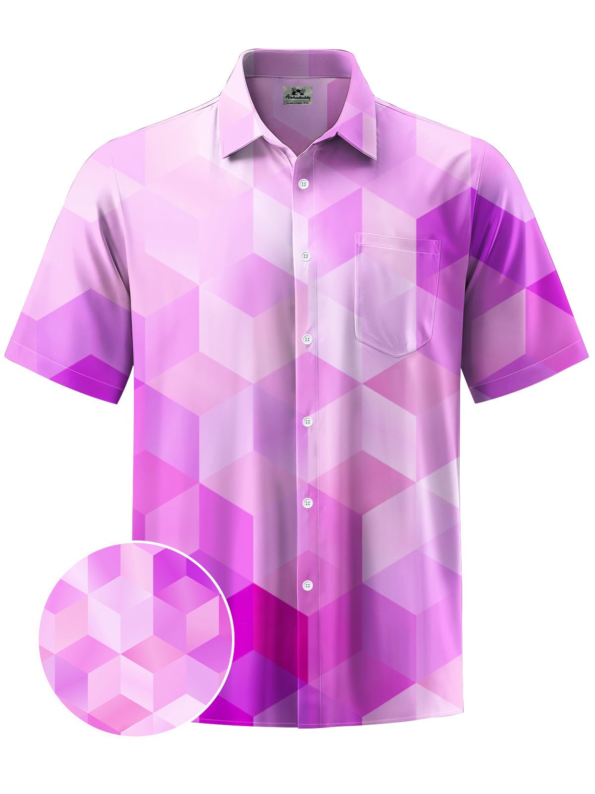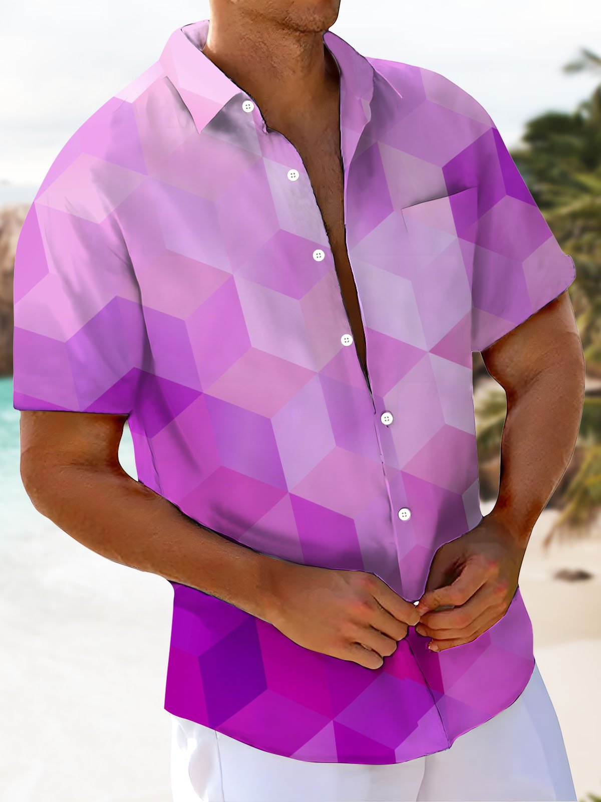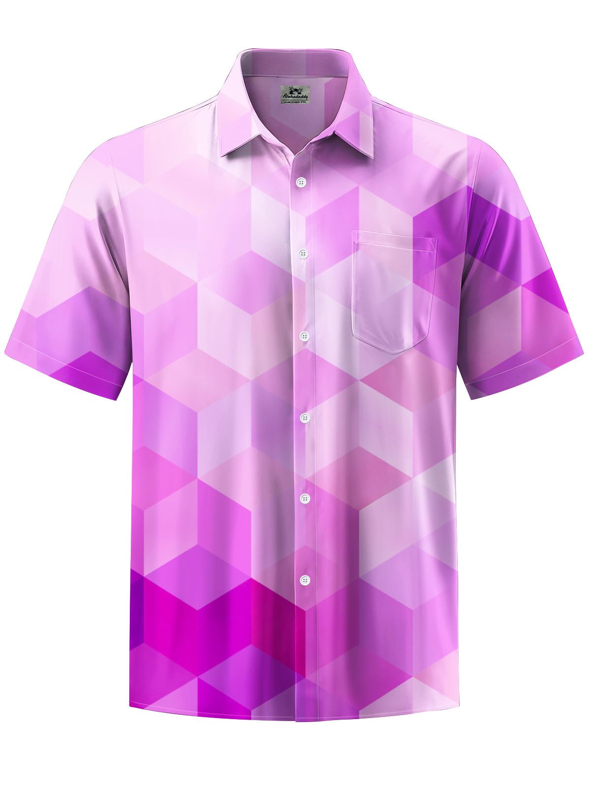 Alohadaddy® Casual Gradient Geometric Print Chest Pocket Men's Short Sleeve Shirt Big & Tall
