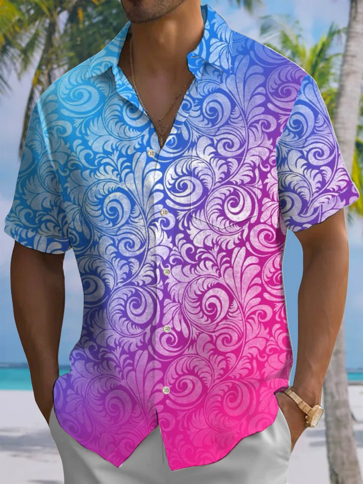 Alohadaddy® Casual Gradient Pattern Art Print Chest Pocket Men's Short Sleeve Shirt Big & Tall