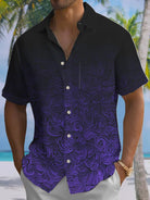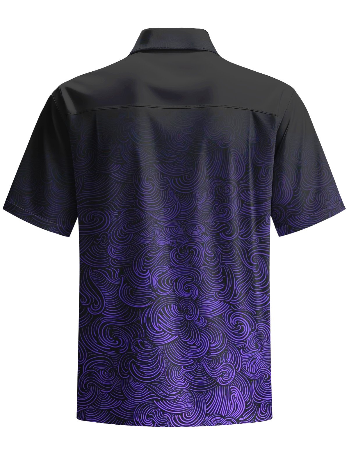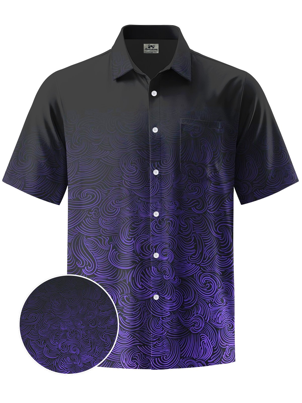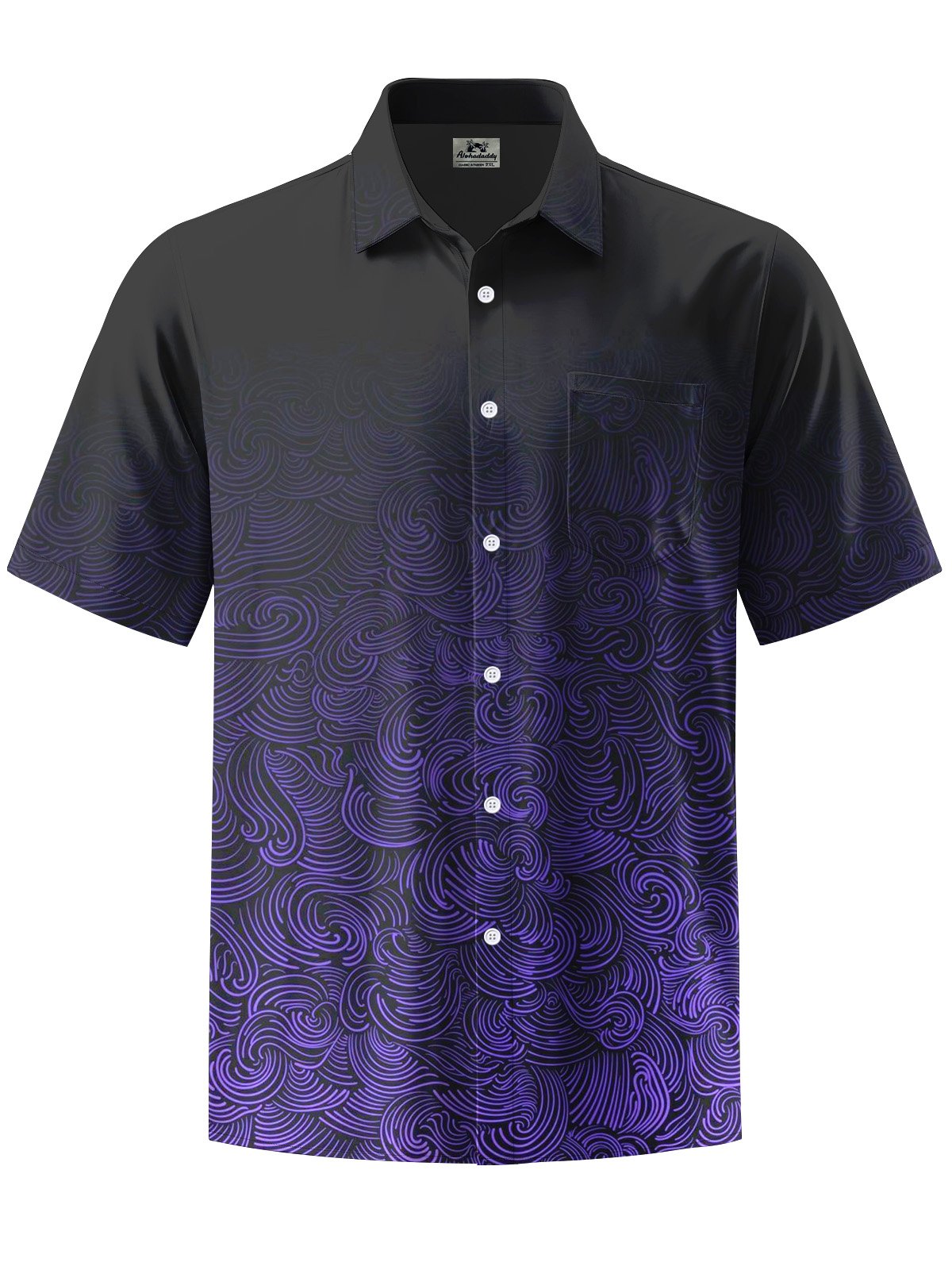 Alohadaddy® Casual Gradient Ukiyo-e Print Art Chest Pocket Men's Short Sleeve Shirt Big & Tall