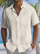 Alohadaddy® Casual Leaf Art Print Chest Pocket Stretch Men's Short Sleeve Shirt Big & Tall