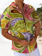 Alohadaddy® Casual Paisley Art Print Chest Pocket Men's Short Sleeve Shirt Big & Tall