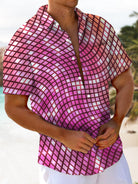 Alohadaddy® Casual Plaid Ombre Print Art Pocket Stretch Men's Short Sleeve Shirt Big & Tall